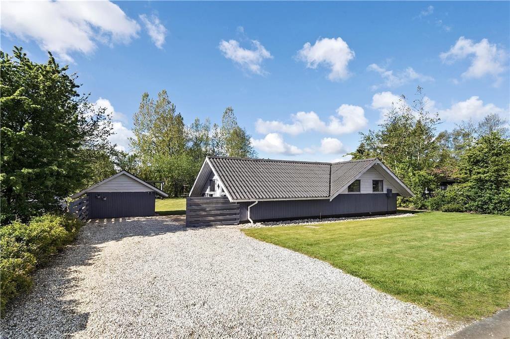 Sommerhuset ligger i fredelige og rolige omgivelser på et lukket vænge. Til fods er det nemt at bevæge sig ud på kvarterets små stier for at finde en legeplads og nyde de grønne områder – og der er ligeledes kort gåafstand til Bork Legeland, som er fyldt med sjove, børnevenlige forlystelser. Ringkøbing Fjord ligger knap en kilometer væk, så I kan også gå til stranden, når I vil kigge på surferne, der laver tricks ude på vandet. Vil I selv prøve, er der mulighed for at få undervisning og leje udstyr i Bork Havn, og I kan selvfølgelig også nøjes med at soppe og bade, hvis det er mere tillokkende. Mellem surfstranden og badestranden ligger byens hyggelige havn, hvor I kan sætte jer ved et af spisestederne, inden I begiver jer ud på flere eventyr i de naturskønne omgivelser. Under 3 km til Sperto elbil lader.