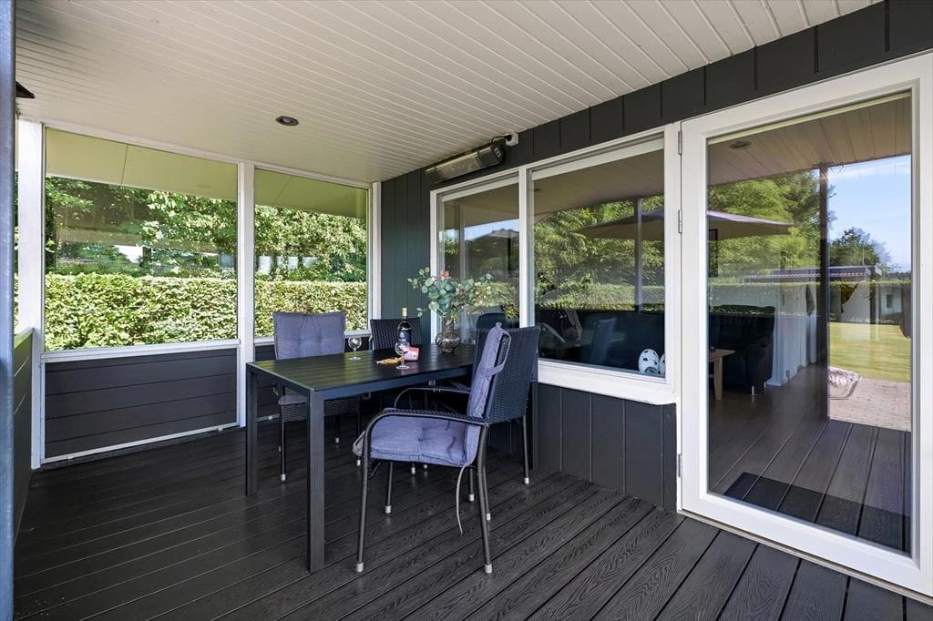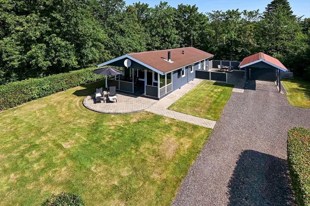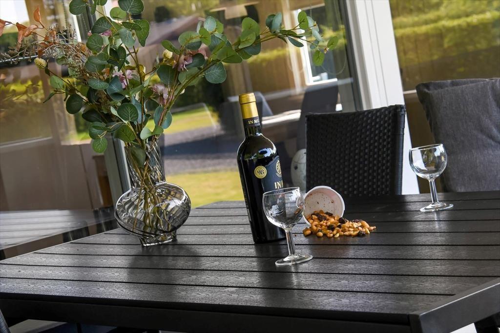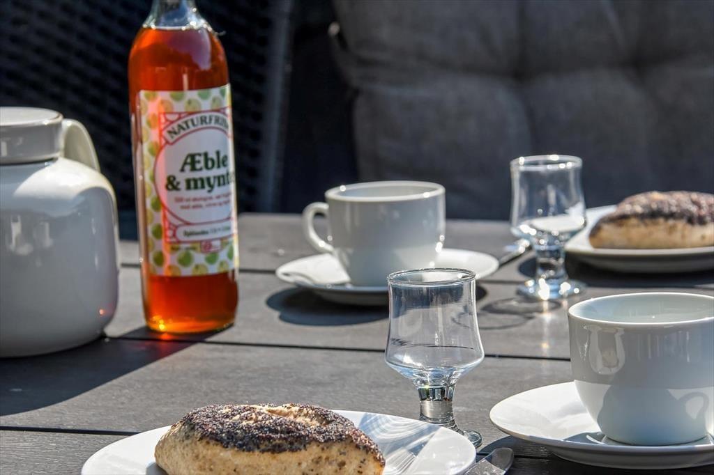 Fra stuen har I direkte adgang til en overdækket terrasse, så I kan hurtigt bære tallerkner og fyldte fade ud, når I vil servere frokosten eller aftensmaden i det fri. En del af måltidet kan endda blive tilberedt udenfor på grillen, mens resten af familien spiller havespil på græsplænen eller slænger sig i havemøblerne på det åbne terrasseareal.