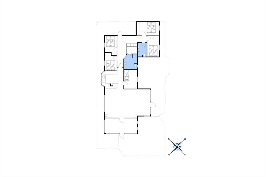 Med 174 m2 under tag får I masser af plads at brede jer på, og indretningen sætter de bedste rammer om ferieturens hyggelige samvær. Husets naturlige hjerte er det store køkken-alrum, der ligger i åben forbindelse med opholdsstuen. Her strømmer lyset ind fra flere verdenshjørner, og der er et dejligt kig til alt det grønne udenfor. I den tilstødende udestue er lysindfaldet endnu mere generøst, og her kan I nyde haven fra allernærmeste hold. Fra både stue og udestue er der direkte udgang til den store terrasse. Huset indeholder fire rummelige soveværelser, og hertil kommer to badeværelser, hvoraf det ene er udstyret med sauna. Der er brændeovn i alrummet, og som en ekstra luksus kan I se frem til gulvvarme i alle klinkegulve.