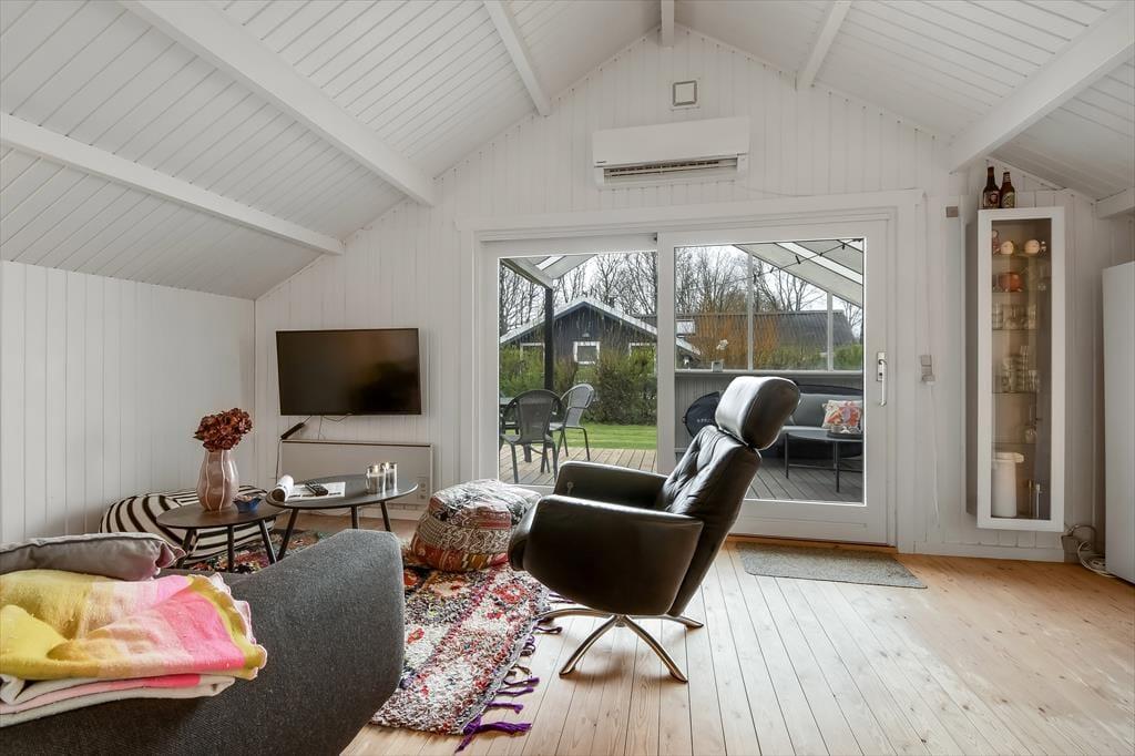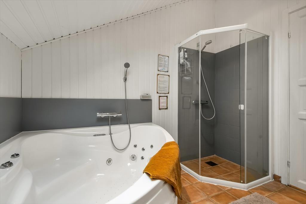 Badeværelsets spabad er kun én af detaljerne, der sørger for, at du kan sænke skuldrene og føle dig godt tilpas inden døre. Stuens sofahjørne inviterer til tilbagelænede hyggestunder med en spændende bog eller en romantisk film, og spisebordet er et dejligt samlingspunkt, uanset om det er tid til at spise, eller om I vil finde terningerne frem og gøre klar til det afgørende spil yatzy. Fra det åbne køkken kan du tage del i det sociale samvær, også selvom det er dig, der har madtjansen. Soveværelser er der tre af, og især når huset er fuldt, er det rart, at der er et gæstetoilet foruden et badeværelse i huset.
