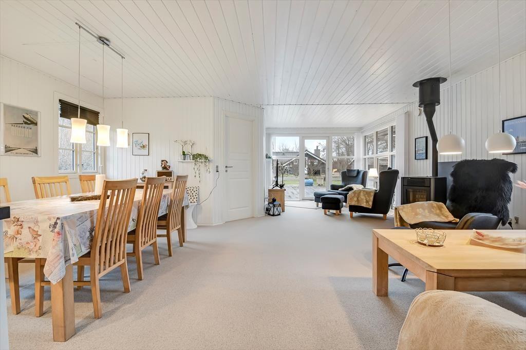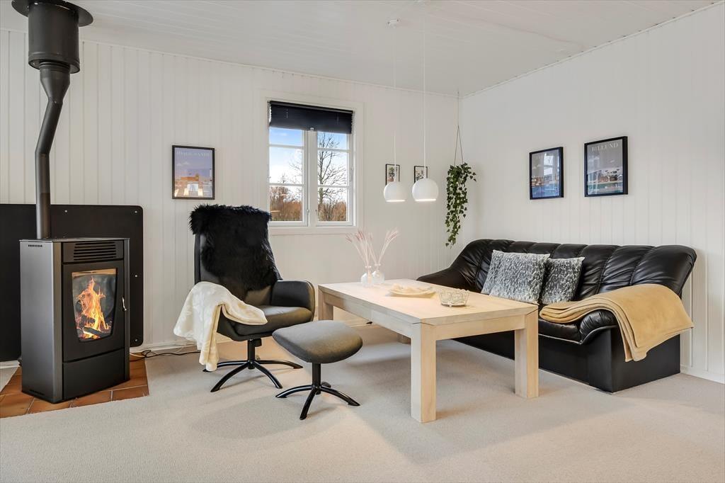 Dette feriehus, der blev renoveret i 2018, er uden tvivl et fantastisk udgangspunkt for både par eller familier, der ønsker en rolig og afslappende ferie. Huset har plads til i alt 5 gæster, der fordeler sig på de tre soveværelser med hhv. en enkeltseng og to dobbeltsenge. Alle soveværelser har et dejligt lysindfald og skabsplads. Lige indenfor finder I husets badeværelse med brus. Samlingspunktet i huset er uden tvivl det store køkken-alrum, der ender ud i en tv-afdeling. Her kan der både laves mad, spilles spil, slappes af i sofaen eller nydes en god film i de store lænestole. Husets brændeovn er med til skabe hygge og varme på de koldere dage, og fra stuen har I mulighed for at gå direkte ud på den store, flotte terrasse.