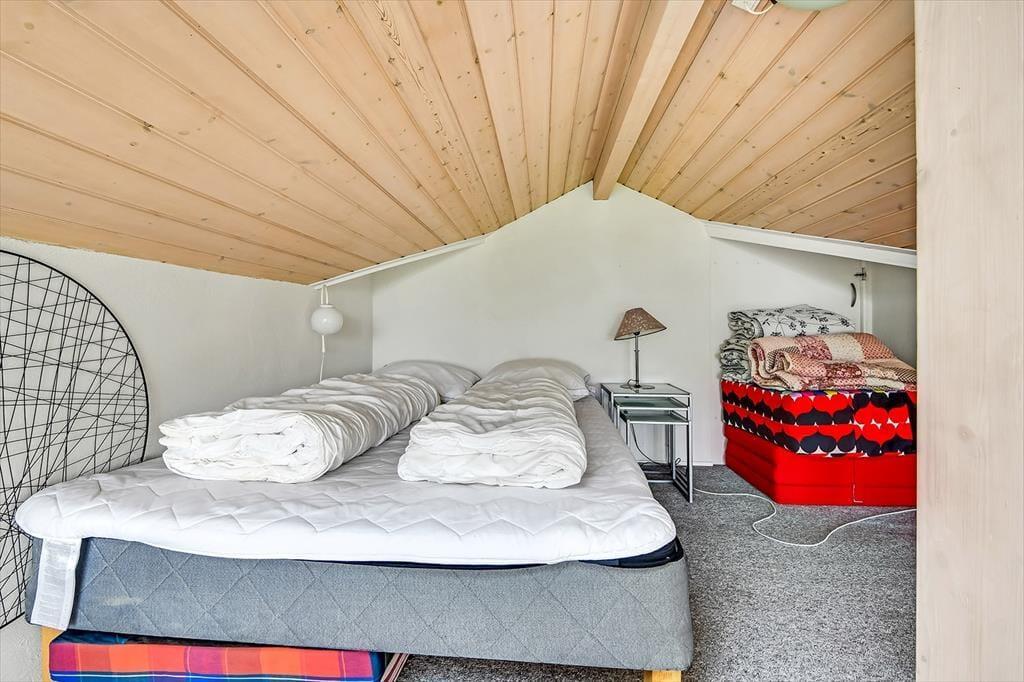 Husfold 67 i Bork Havn er den helt rette ferieadresse for dig, der drømmer om at slappe af i rolige omgivelser nær vandet. Vejen ender nemlig blindt tæt på huset, og du har kun få minutters gang til både stranden og havnemiljøet – og fra sommerhusets hyggelige hems kan du endda nyde udsigten til Ringkøbing Fjord.