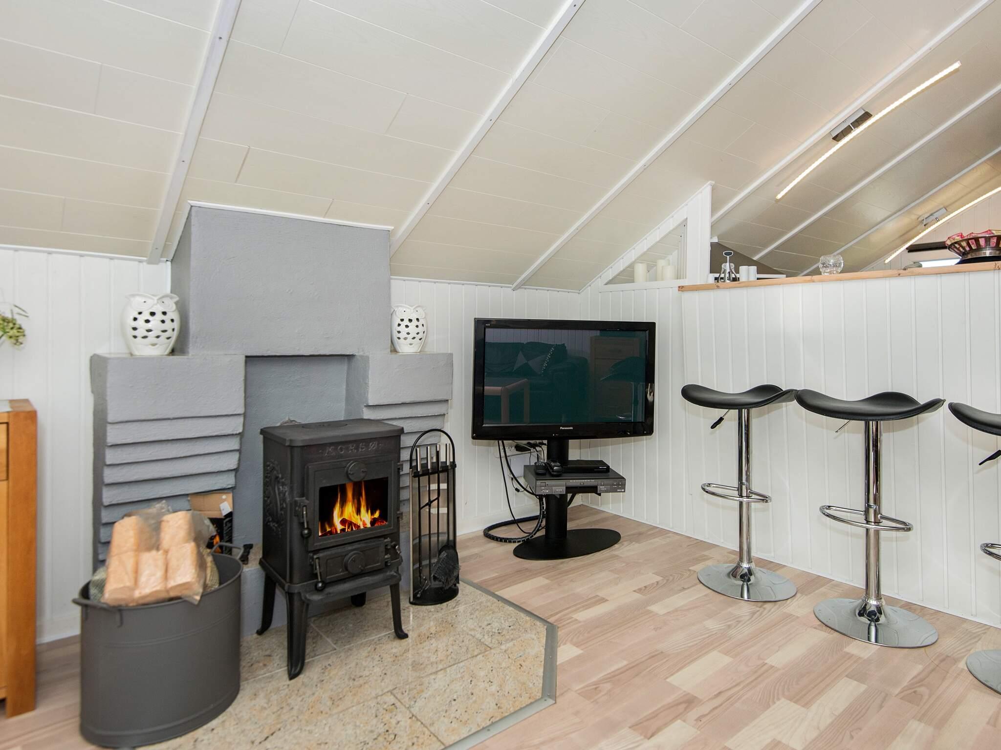 1 Opholdsstue: Brændeovn, radio, tv, tv-antenne, høj stol