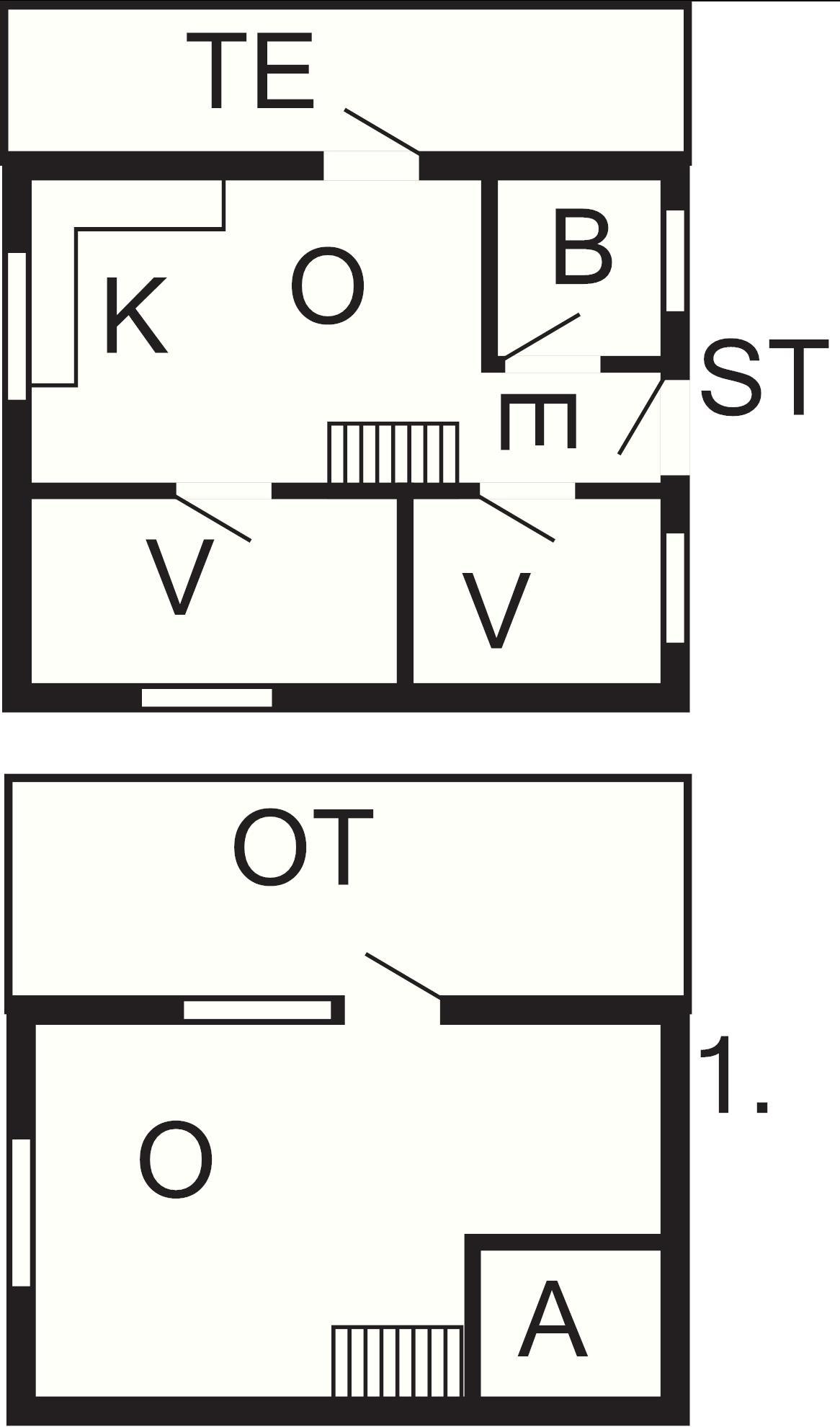 1 Opholdsstue: Brændeovn, stereoanlæg med cd, tv, parabol