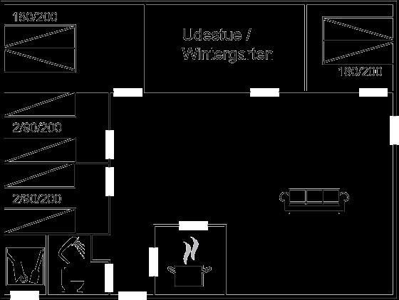 Der er i alt 4 soveværelser. Sovepladserne fordeler sig på: 4 sovepladser i dobbeltsenge. 2 sovepladser i enkeltsenge.2 sovepladser i elevationssenge.