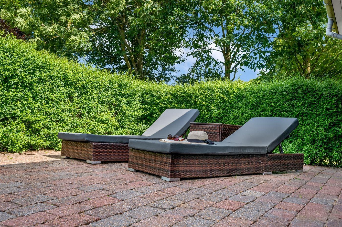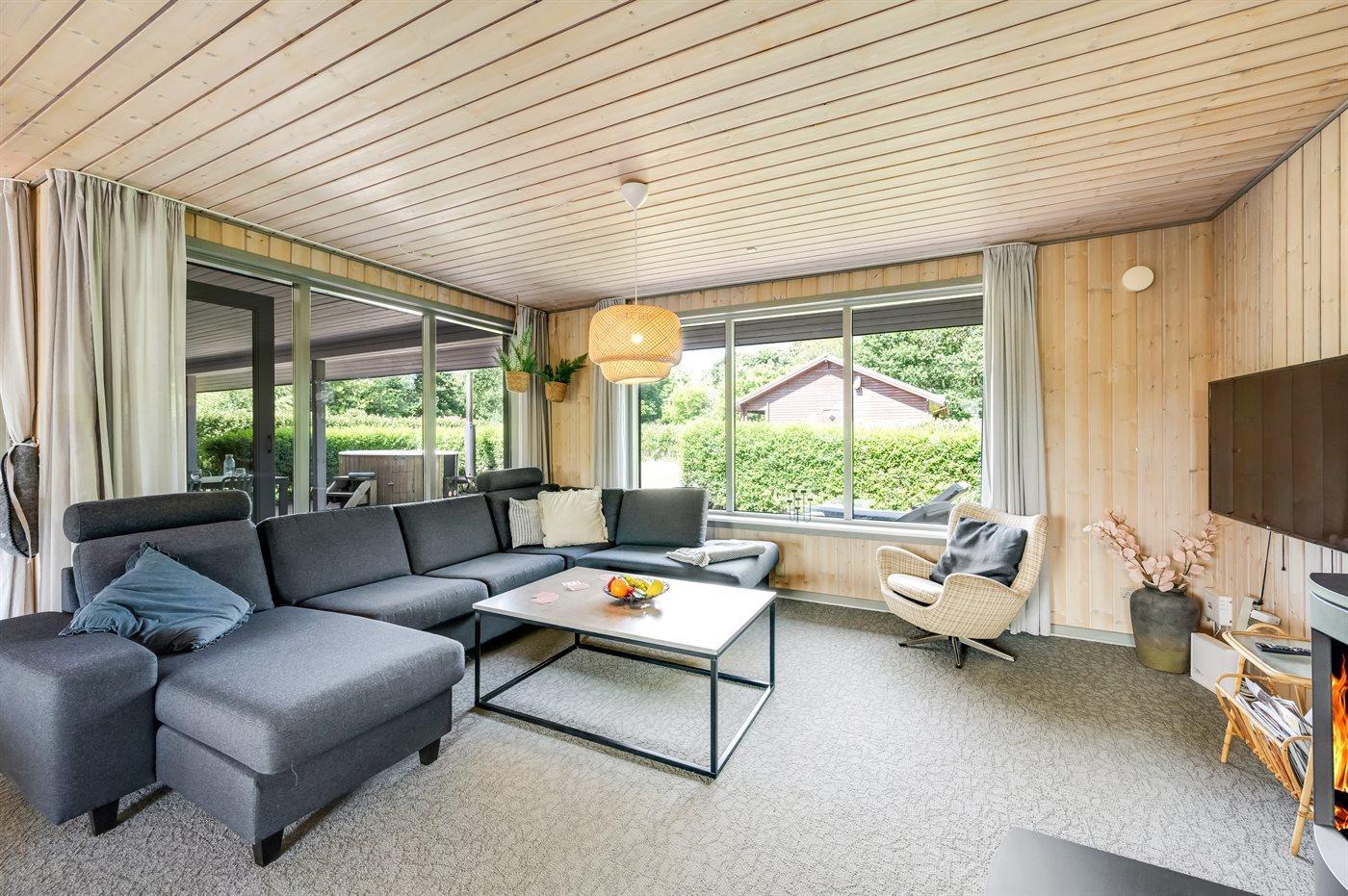På den store og delvist overdækkede terrasse kan du slappe af i de lækre loungemøbler, og vil du for alvor skrue op for luksussen, skal du tænde op i vildmarksbadet. Dækket af det varme vand kan du slappe fuldstændig af, og om aftenen er der frit udsyn til den smukke, klare stjernehimmel.