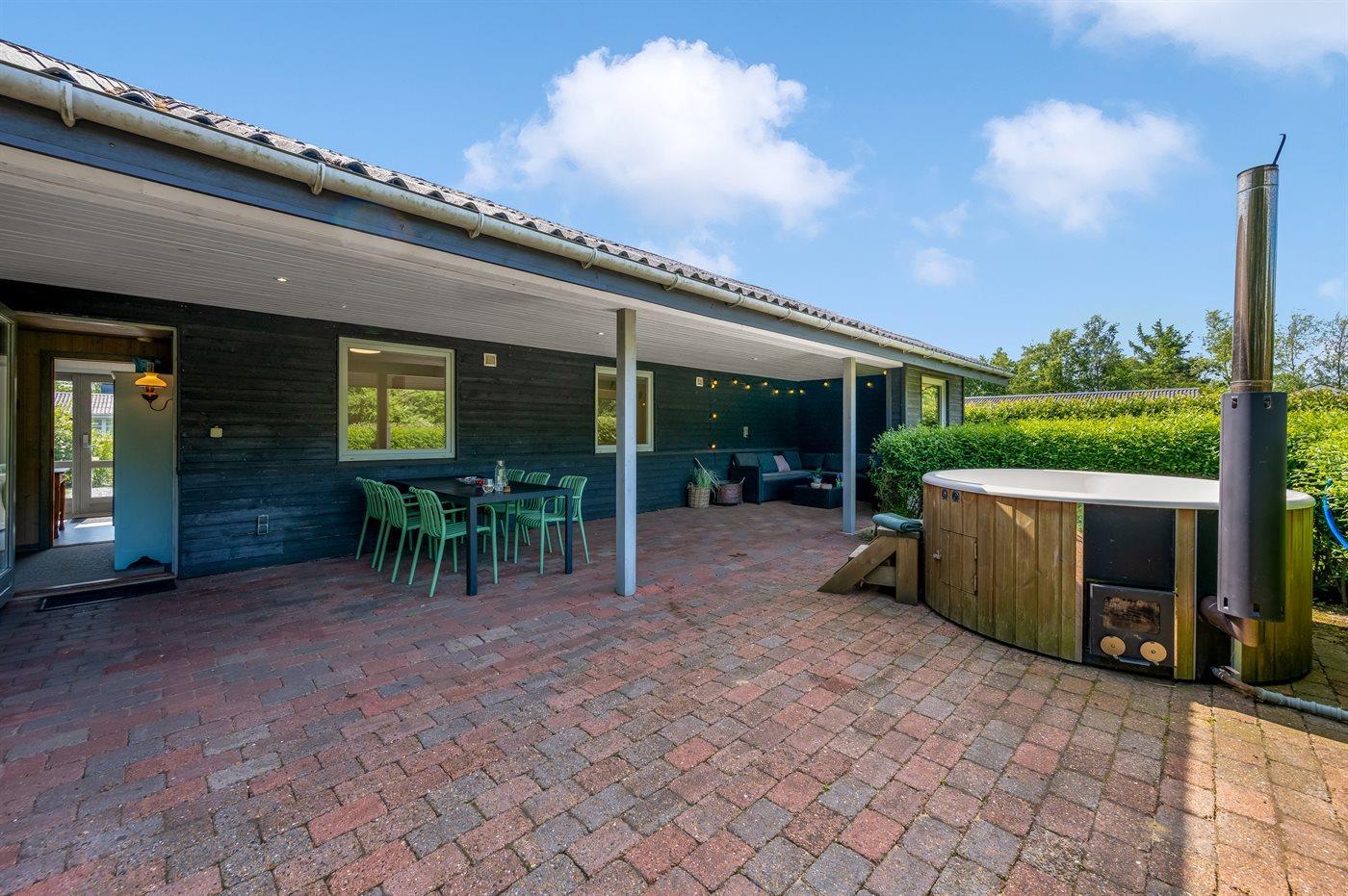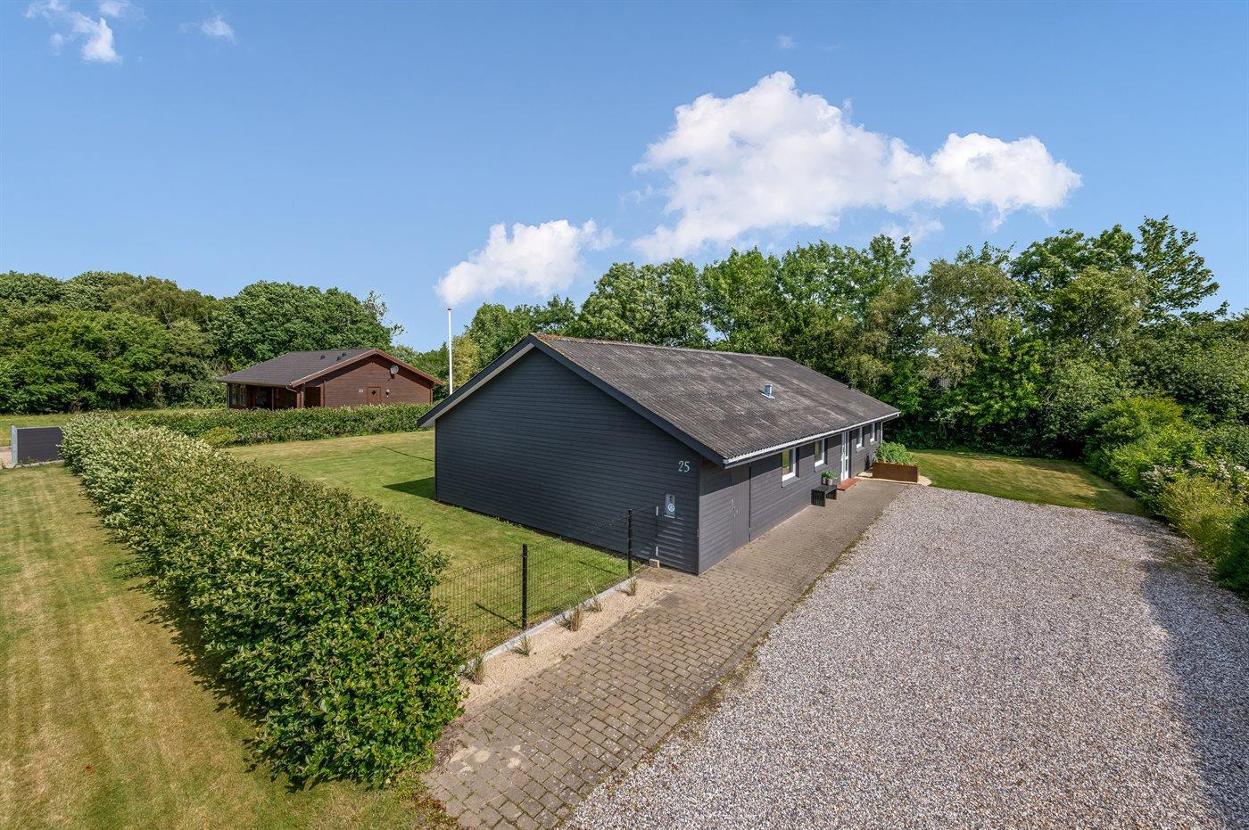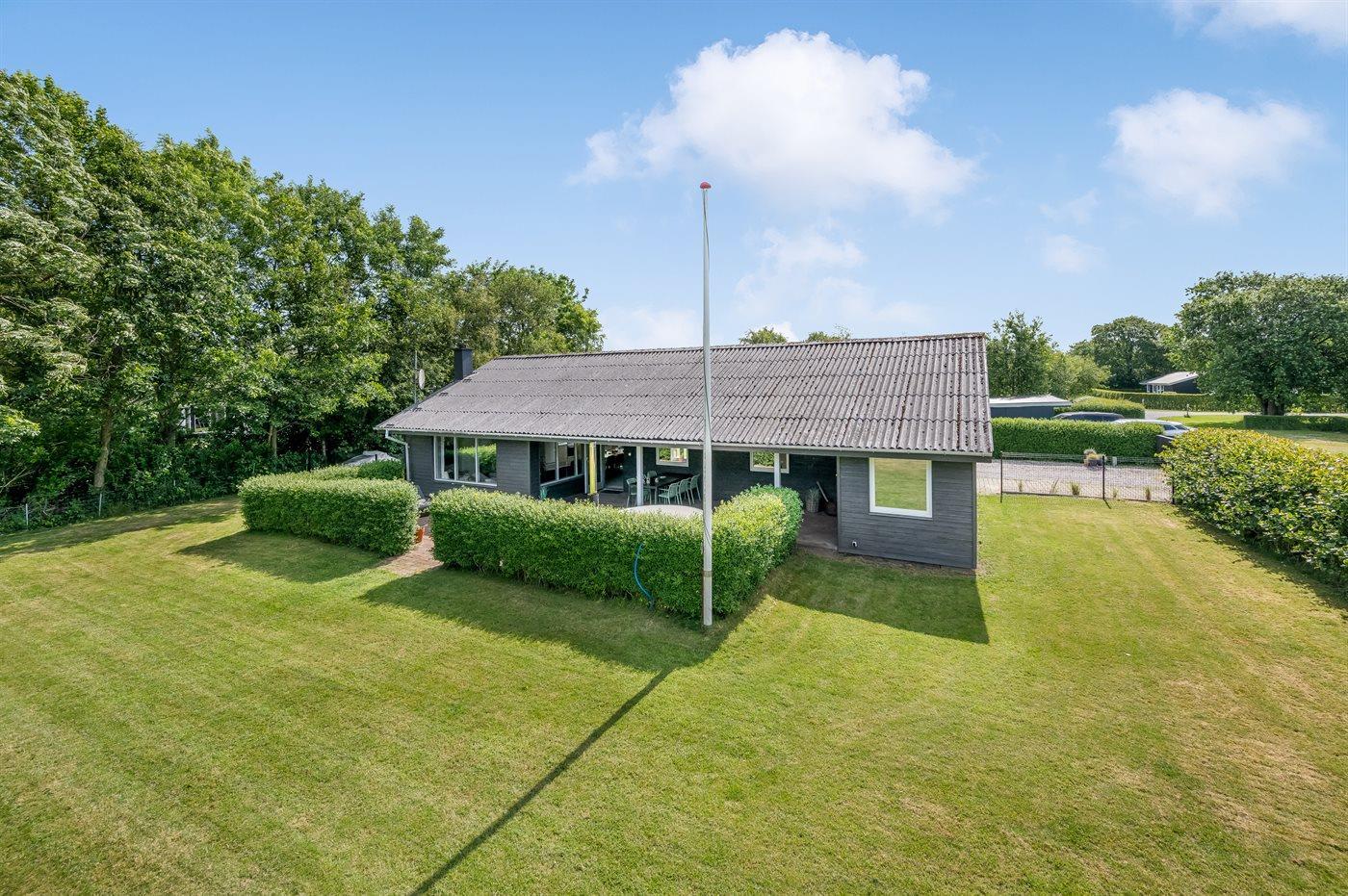 Ferieboligen er beliggende på en 944 m² stor havegrund. Grunden er indhegnet. Der er 3000 m til havet. Der er 800 m til fjorden. Nærmeste forretning er beliggende i en afstand af 1000 m. Til ferieboligen hører 25 m² terrasseareal. Desuden er der 39 m² overdækket terrasse. Grill til rådighed. Parkering ved ferieboligen.