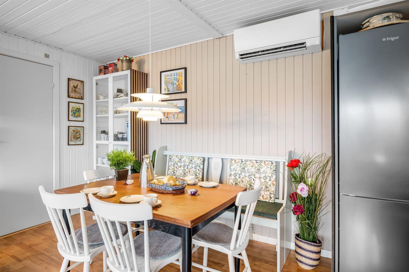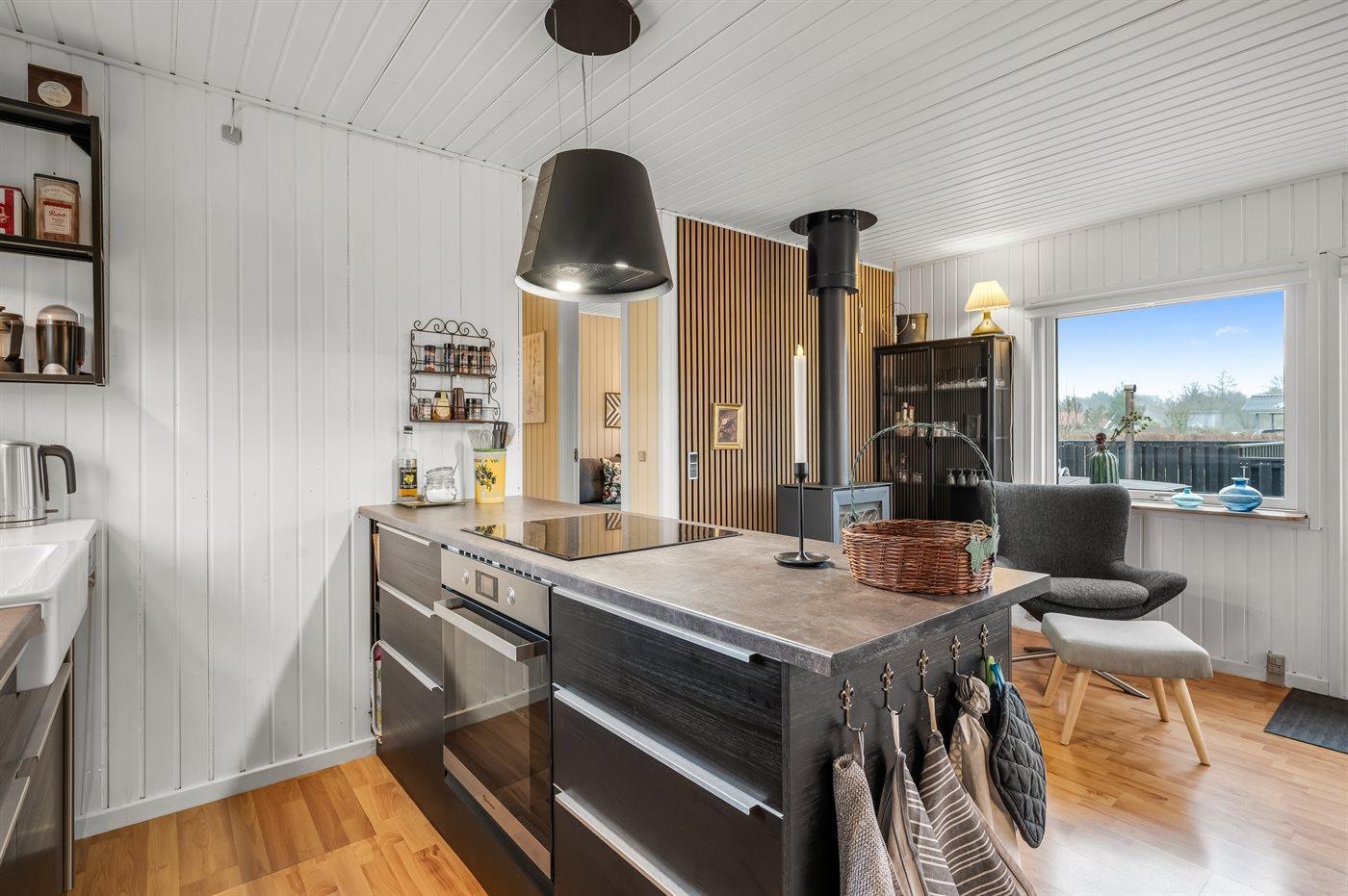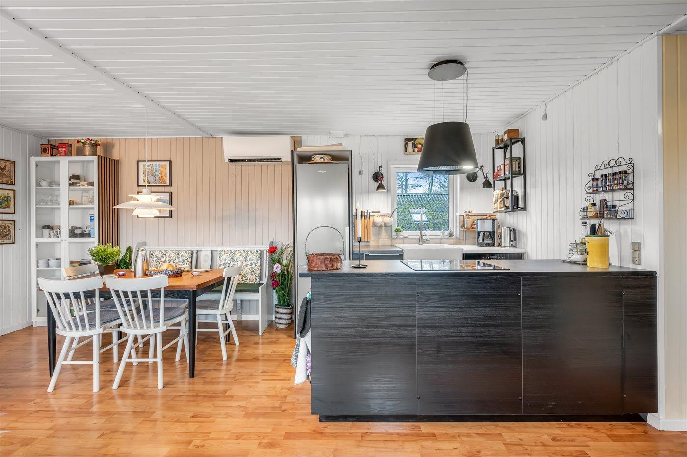 Køkkenet er udstyret med 1 køleskab. Der er 4 induktionskogeplader, varmluftovn, mikrobølgeovn samt opvaskemaskine.