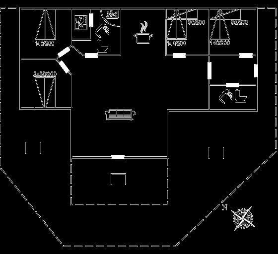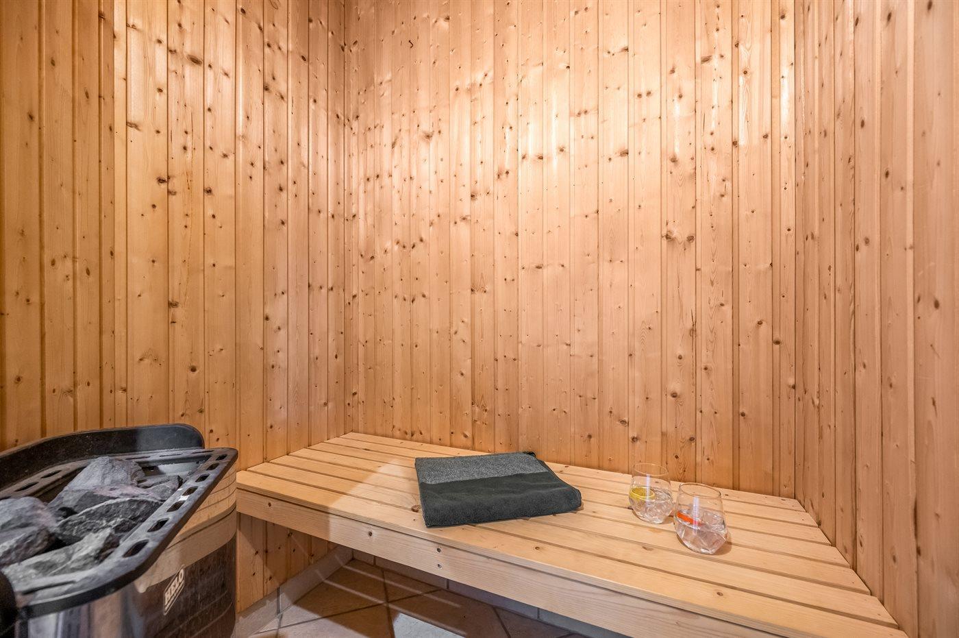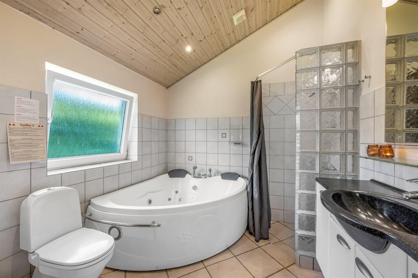 Der er 2 badeværelser med bruseniche og 2 toiletter. Der er gulvvarme på 1 badeværelse. I saunaen er der mulighed for afslapning.