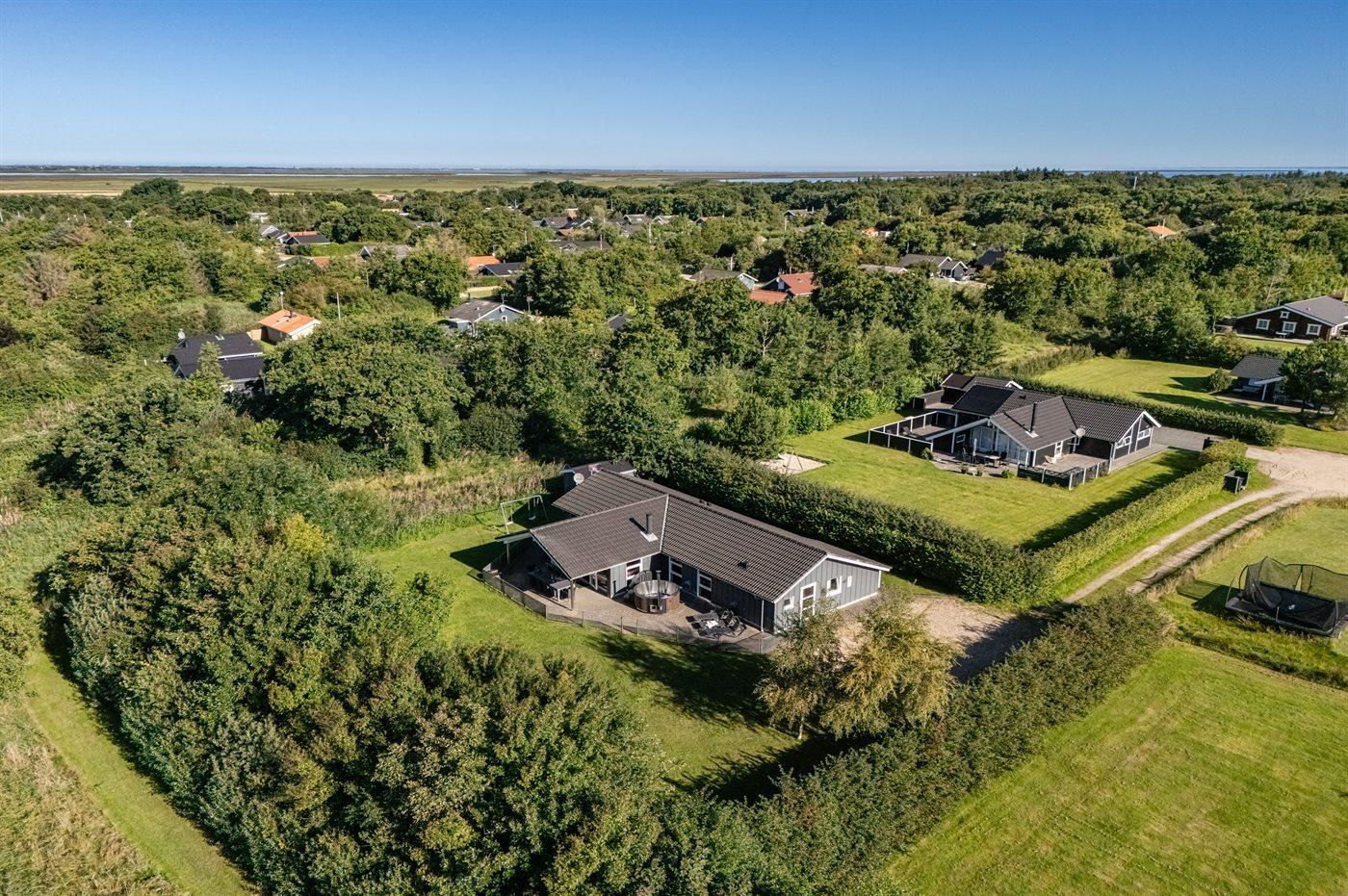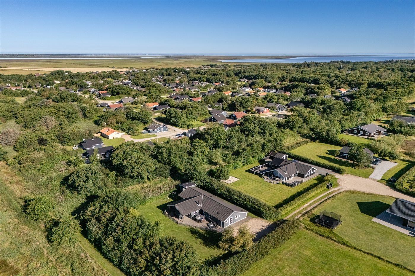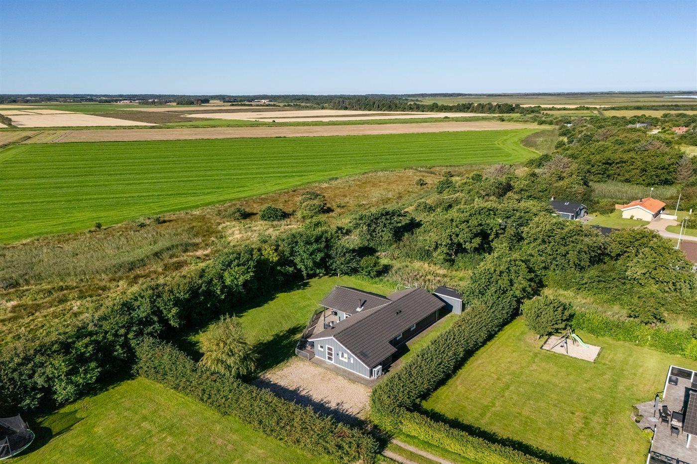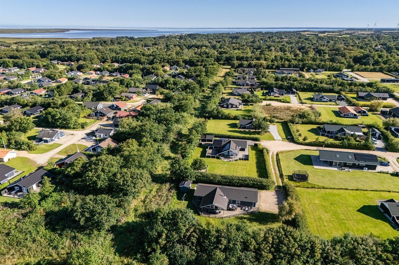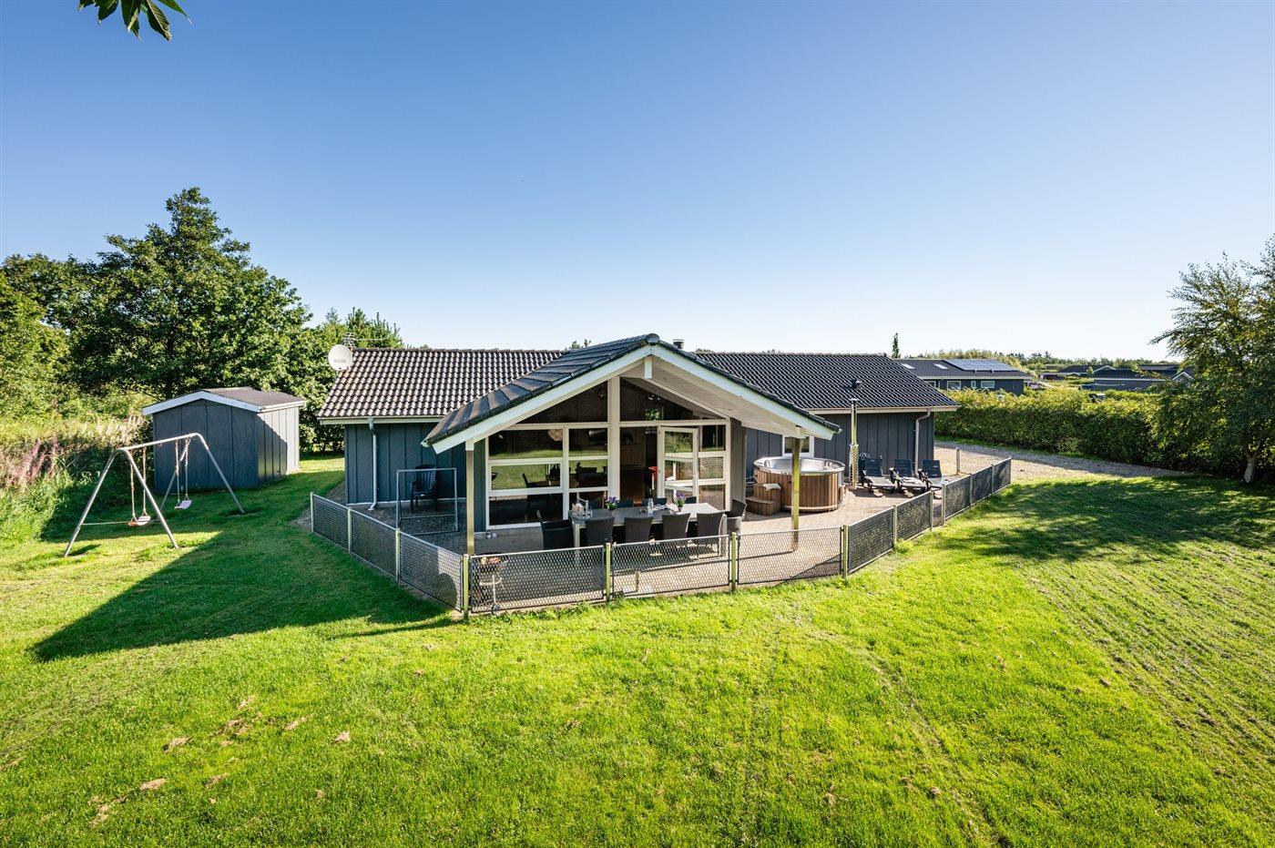 Ferieboligen er beliggende på en 1200 m² stor havegrund. Der er 7000 m til havet. Der er 1200 m til fjorden. Nærmeste forretning er beliggende i en afstand af 1500 m. Til ferieboligen hører 70 m² terrasseareal. Desuden er der 15 m² overdækket terrasse. Der er redskabsrum. Gynge. Der er installeret stik til opladning af elbil. Type 2 stik. Med 11 kW ladeeffekt. Parkering ved ferieboligen.