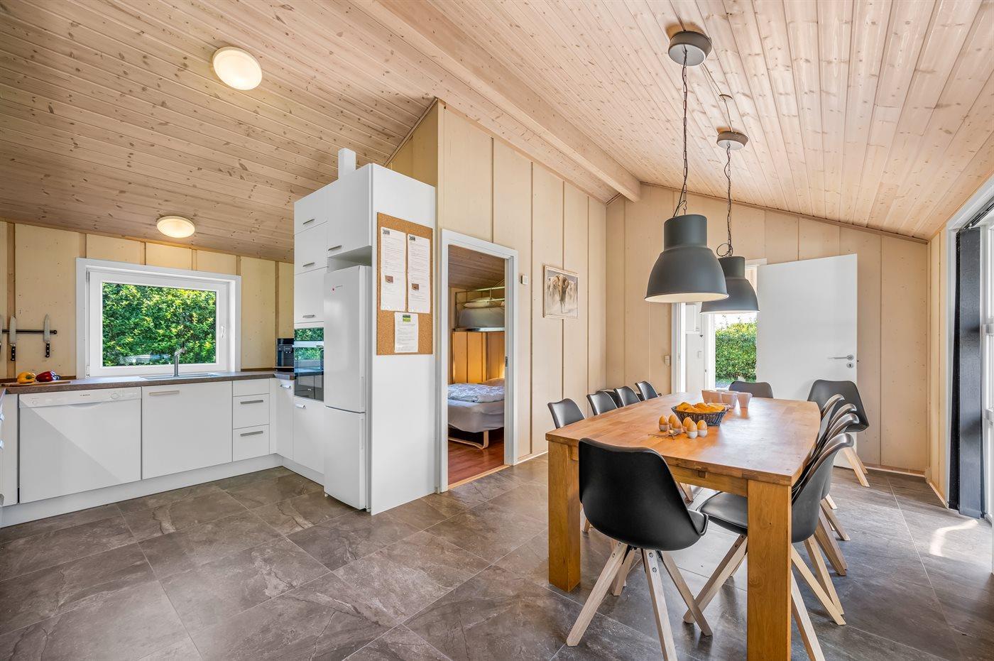 Køkkenet er udstyret med 1 køleskab. Der er 4 keramiske kogeplader, varmluftovn, mikrobølgeovn samt opvaskemaskine.