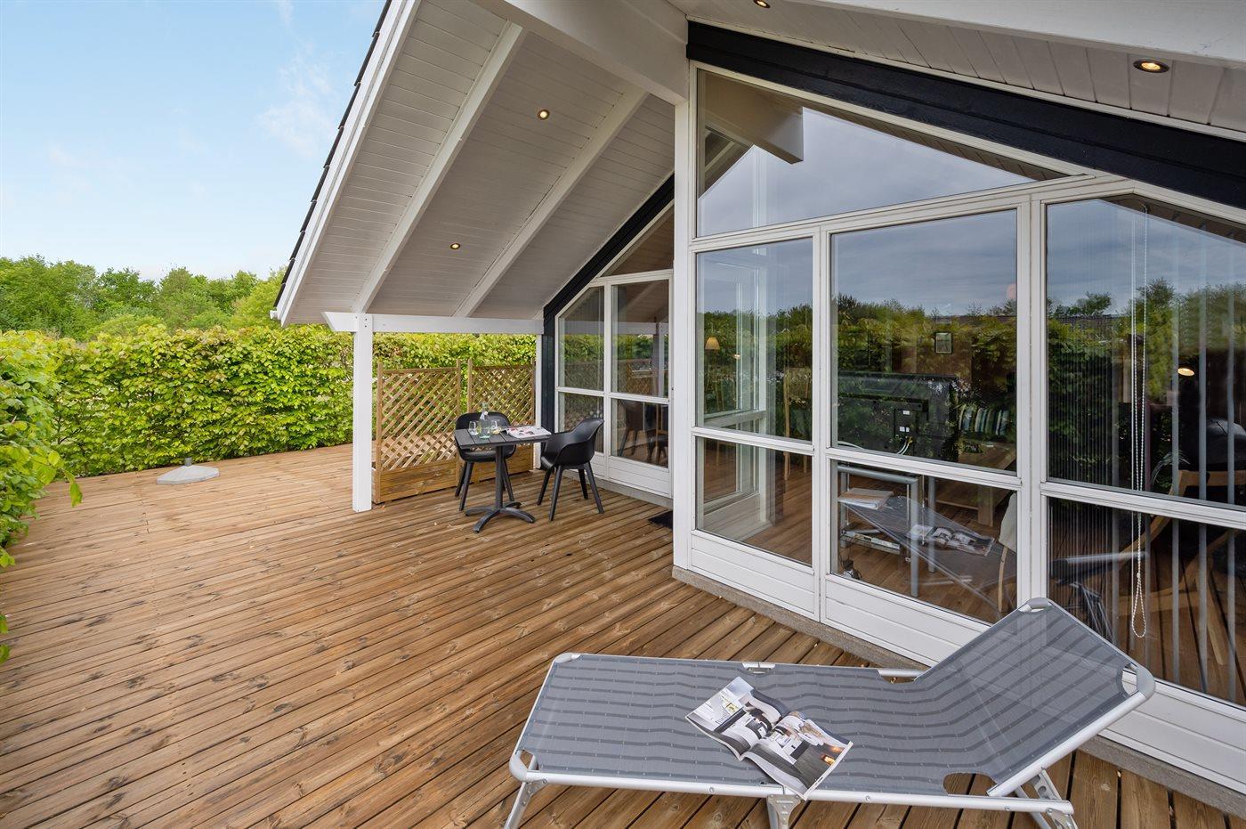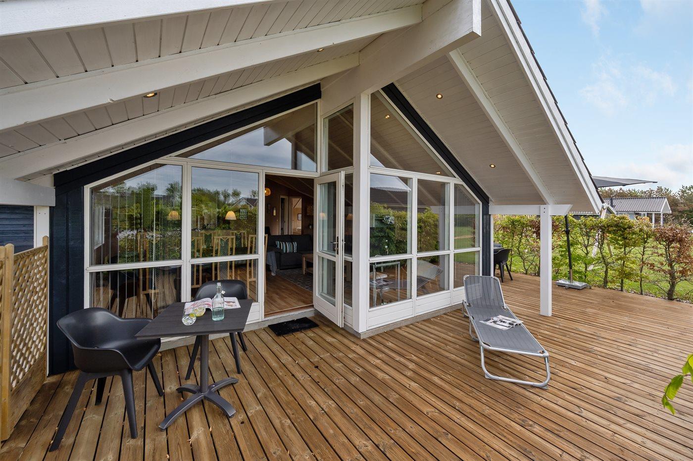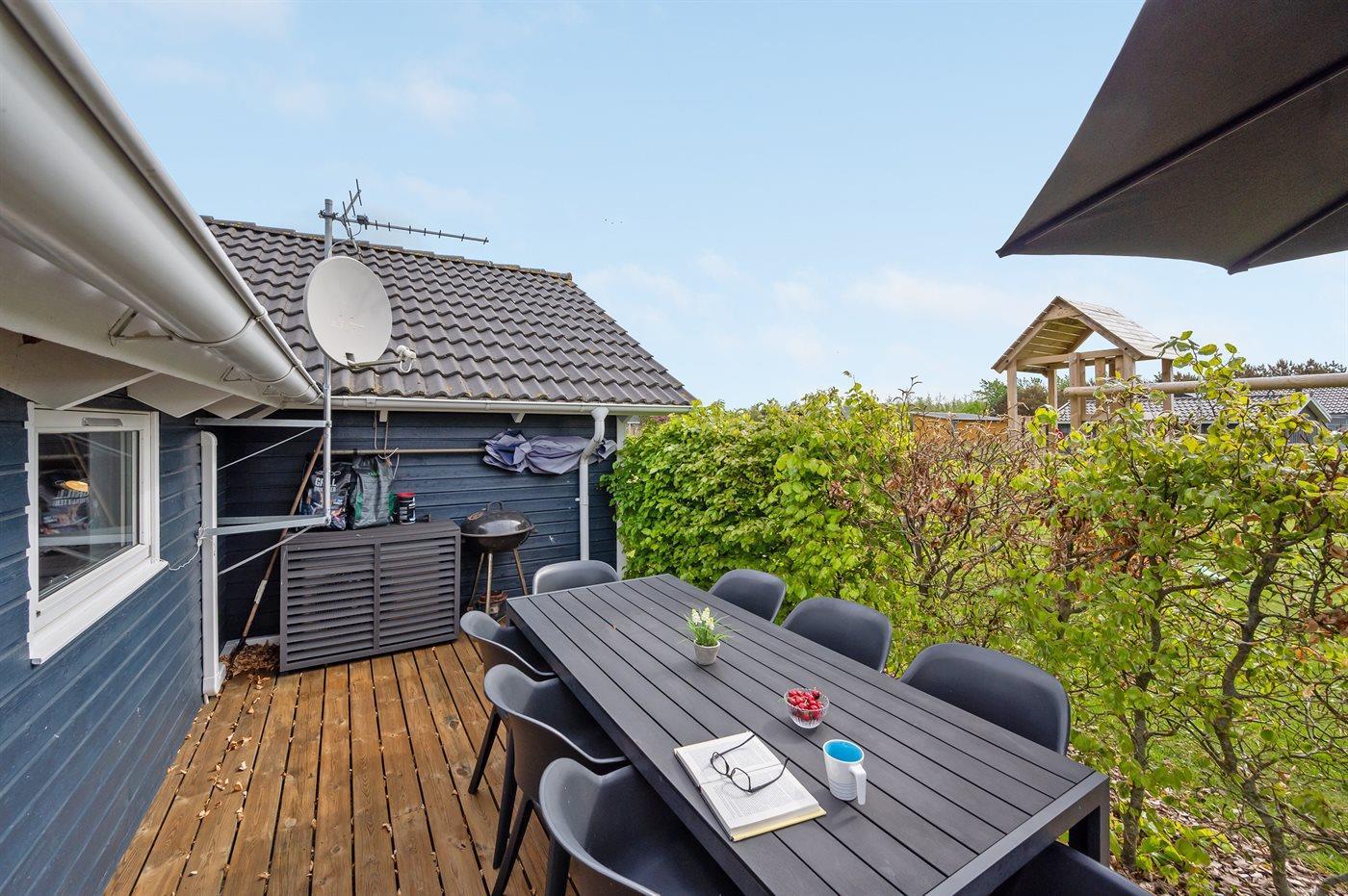 Rummeligt sommerhus med spa, sauna og stor terrasse tæt på fjord og Vesterhavet i Hemmet, Bork Havn.