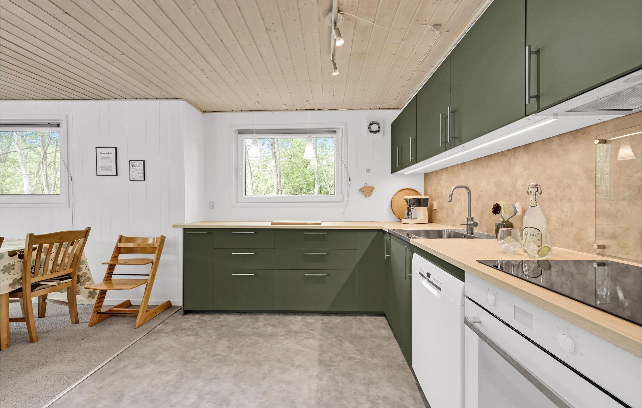 Velholdt sommerhus i Bork Havn med spabad, brændeovn og børnevenlige faciliteter på ugeneret naturgrund.