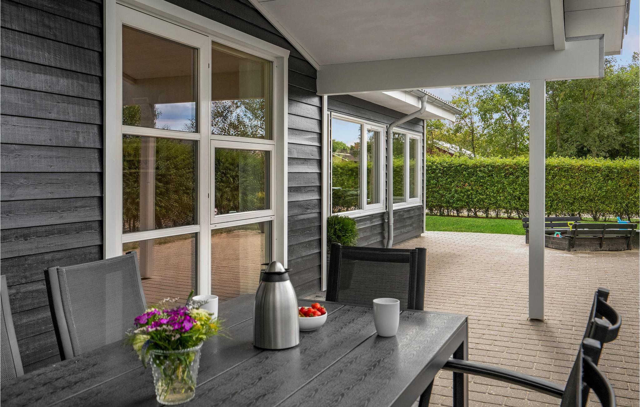 Fra huset er der udgang til både en stor delvis overdækket terrasse og en åben terrasse. Der er også spil og aktiviteter for store og små både inde og ude.