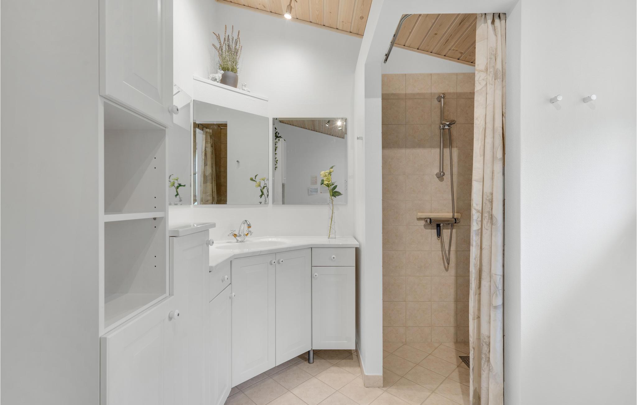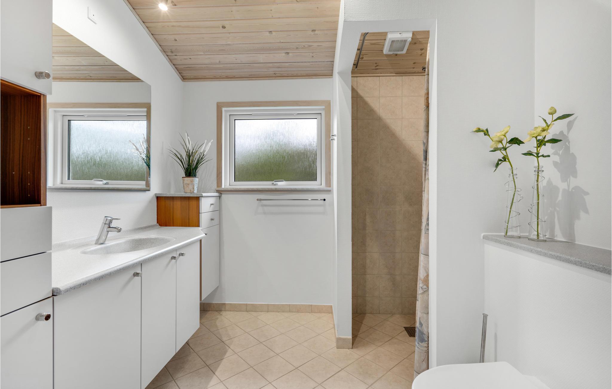 Huset er velindrettet med stort køkken/alrum samt en hyggelig, rummelig stue med et godt lysindfald, som indbyder til både samvær og afslapning. Bortset fra stuen er der gulvvarme i hele huset – og i stuen er der brændeovn og varmepumpe. Huset har fire gode værelser alle med dobbeltsenge, og to badeværelser, hvoraf det ene er med spabad.
