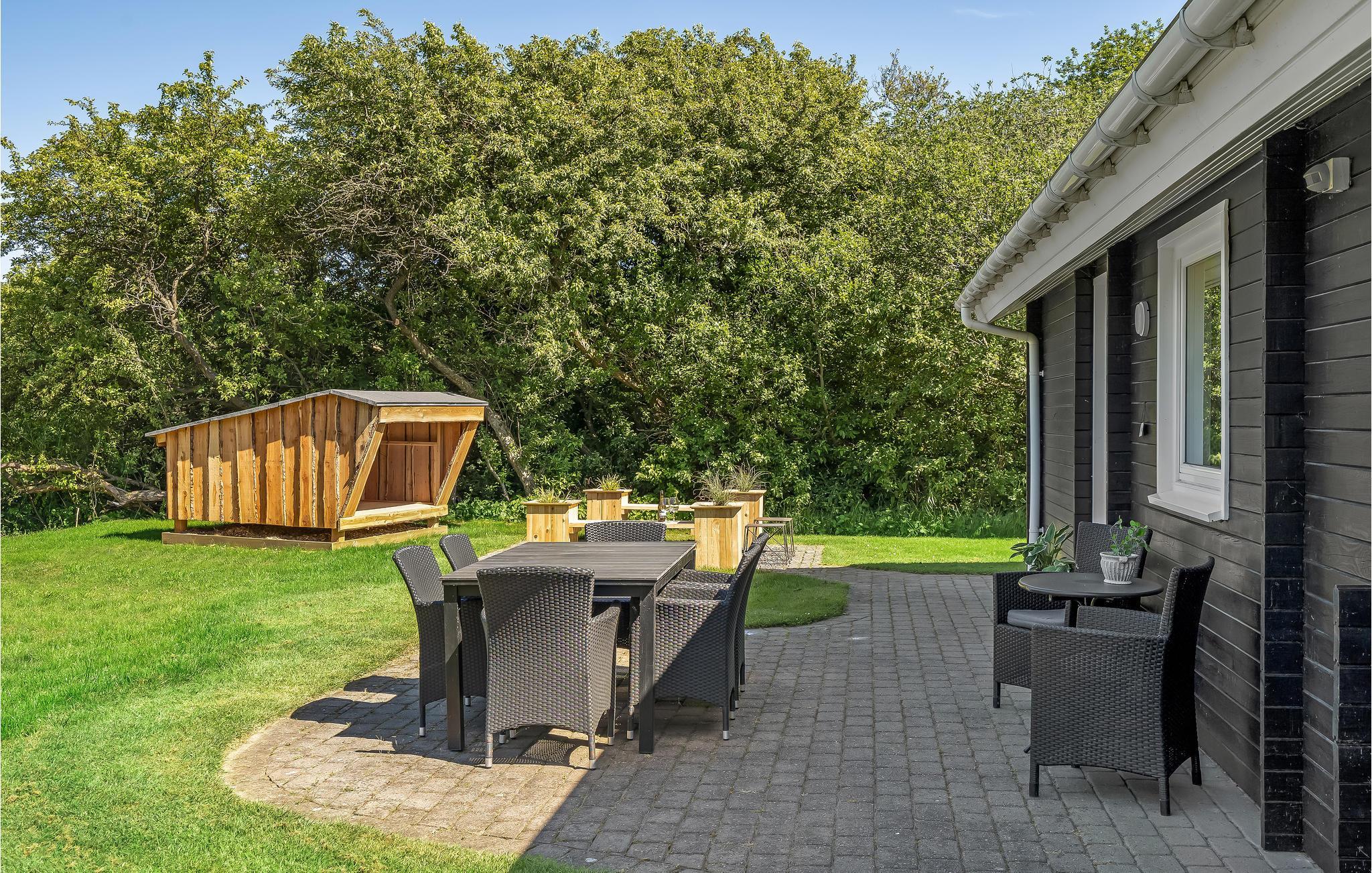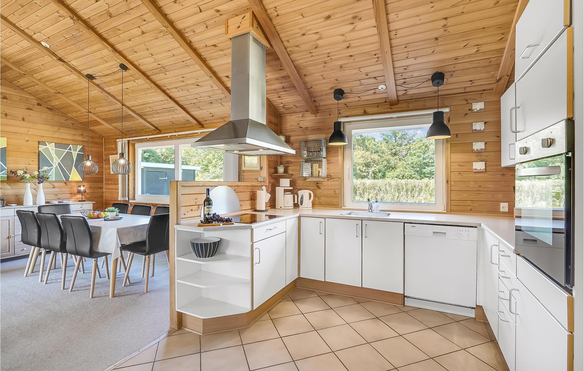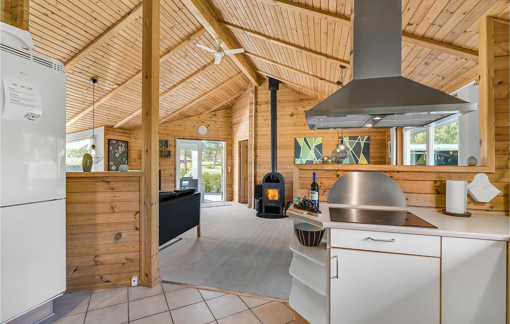 Rustikt og meget børnevenligt bjælkehus ved Bork Havn og i gåafstand af fjorden. Der er indrettet større legeplads på grunden med bl.a. legeborg, gynger, sandkasse samt bålplads. Fra det rummelige køkken/alrum med brændeovn er der direkte udgang til delvis overdækket terrasse og i husets dejlige badeværelse er der en der spabad, samt adgang til sauna. God og ugenert morgenterrasse. I området finder I også havnen, restauranter, indkøbsmuligheder og den nærliggende vikingelandsby.