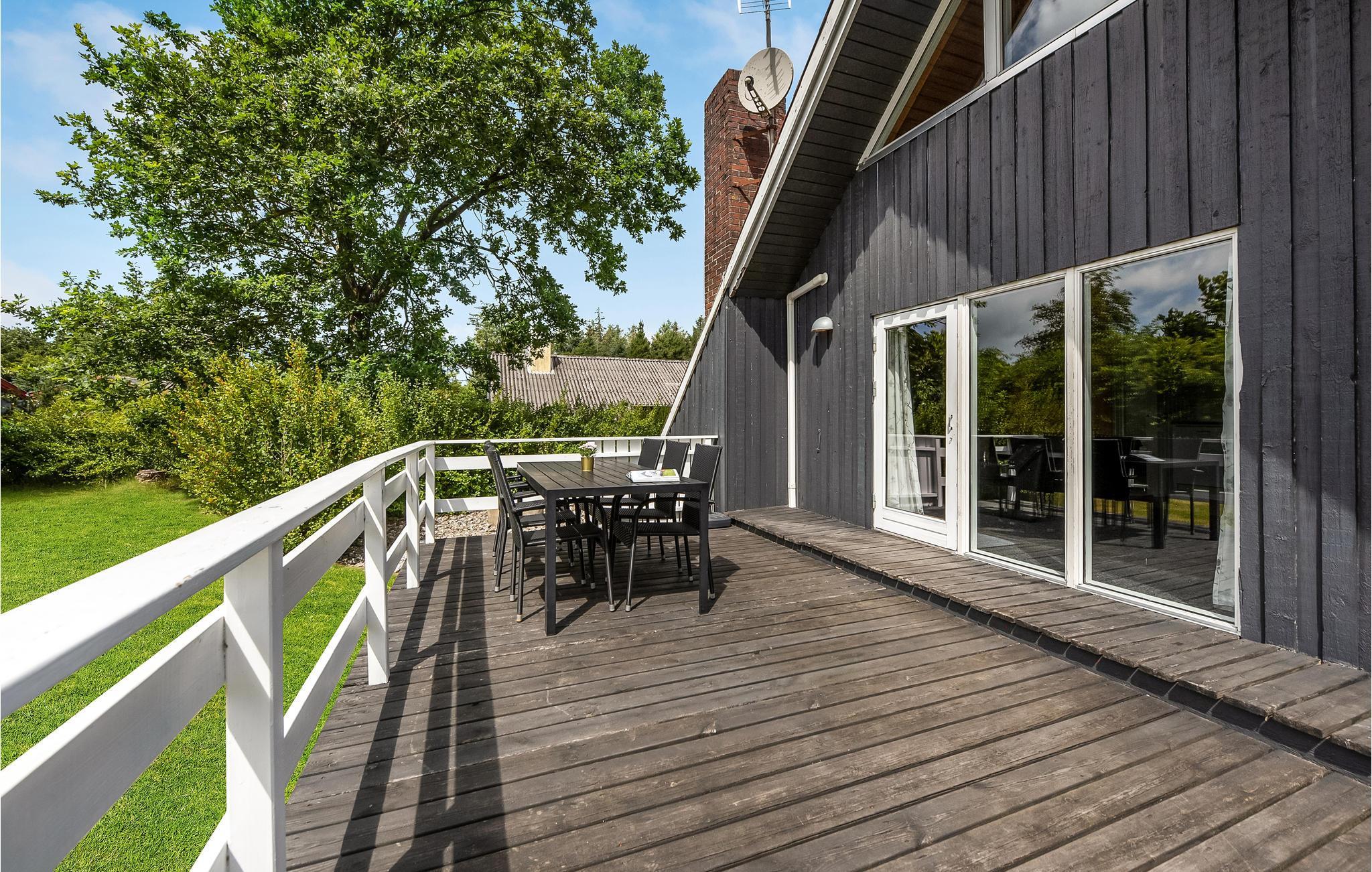 Tre soveværelser. To med dobbeltsenge og - på hemsen - to enkeltsenge. Godt udstyret køkken i åben forbindelse til stuen, hvorfra der er udgang til terrassen (med havemøbler og grill) samt naturgrunden.