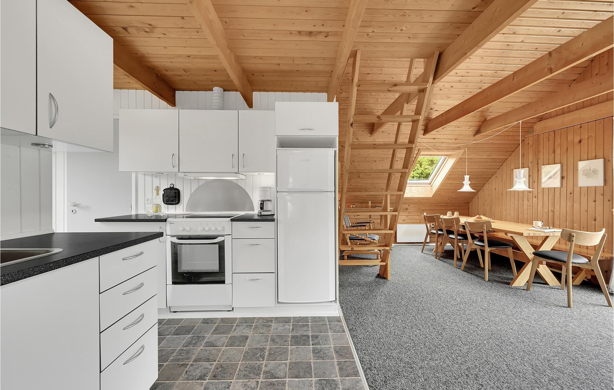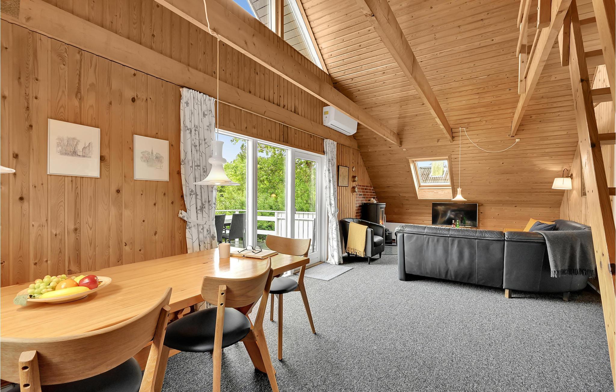I stuen er en stor sofa, hvor hele familien rigtig kan flade ud foran fladskærms-tv'et. Hvis regnen buldrer mod taget, er det hyggeligt at tænde op i brændeovnen og se flammerne slikke glasset. Stort spisebord, hvor I alle kan sidde og nyde de gode måltider eller kæmpe over et brætspil.