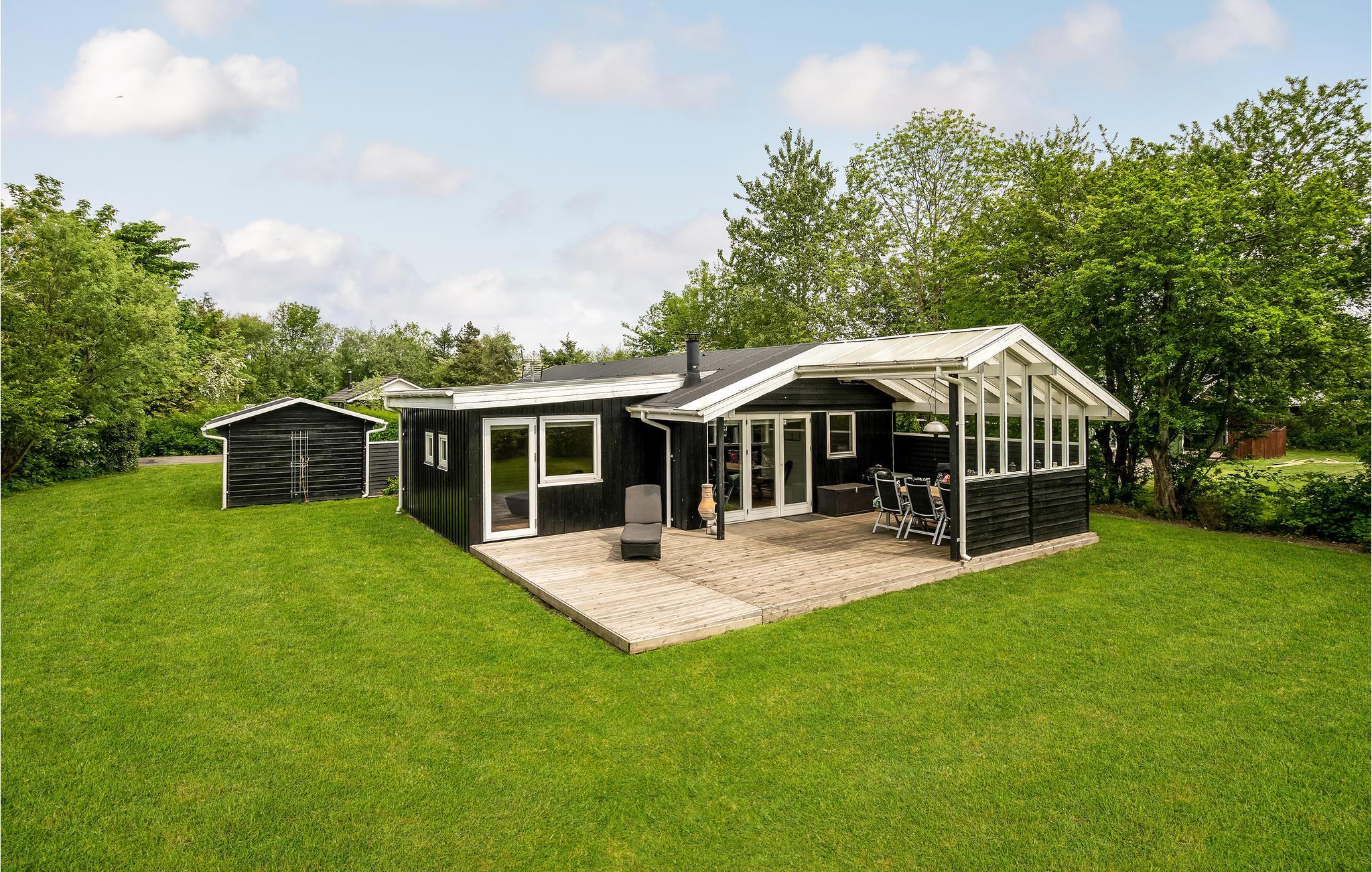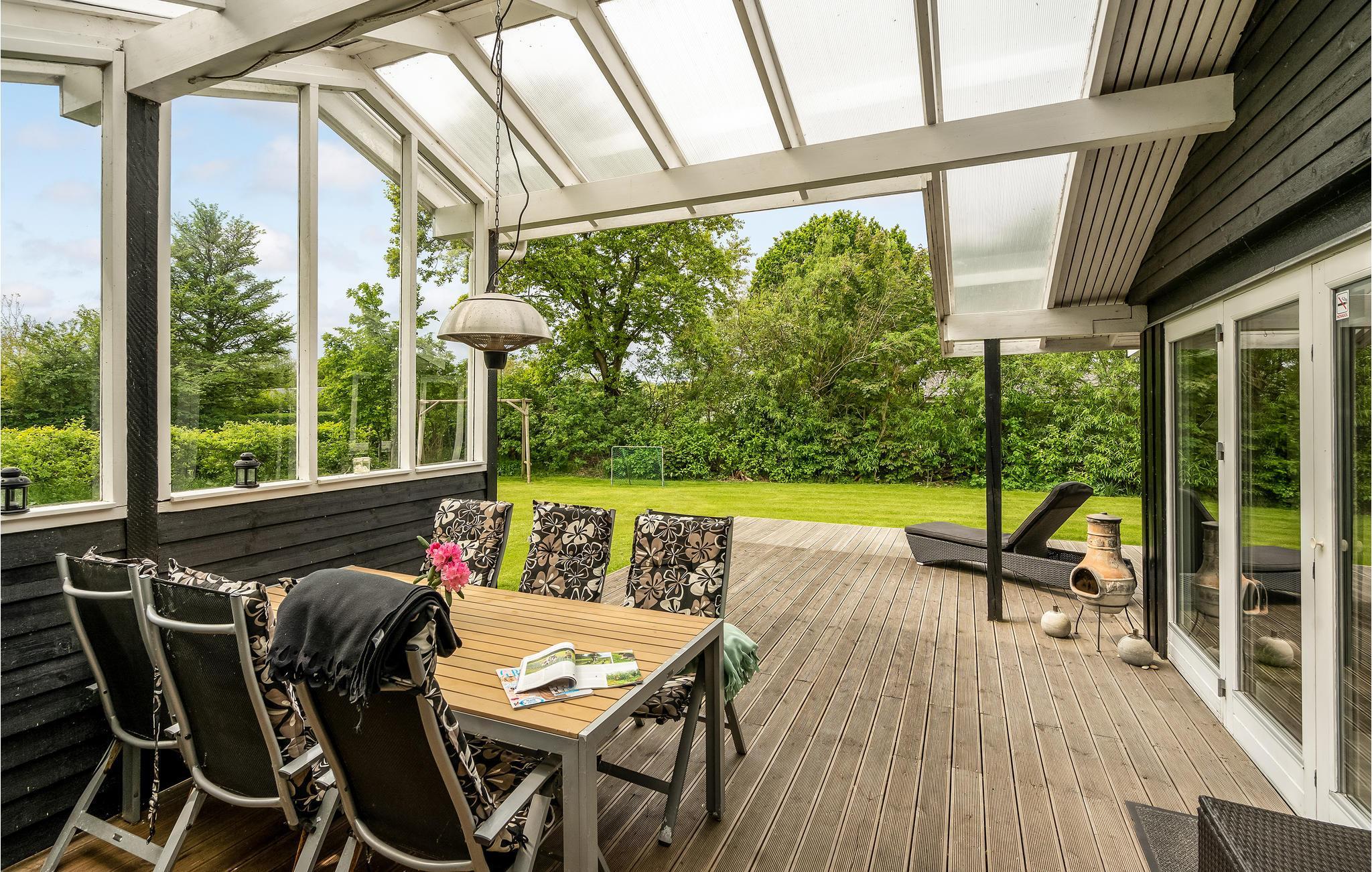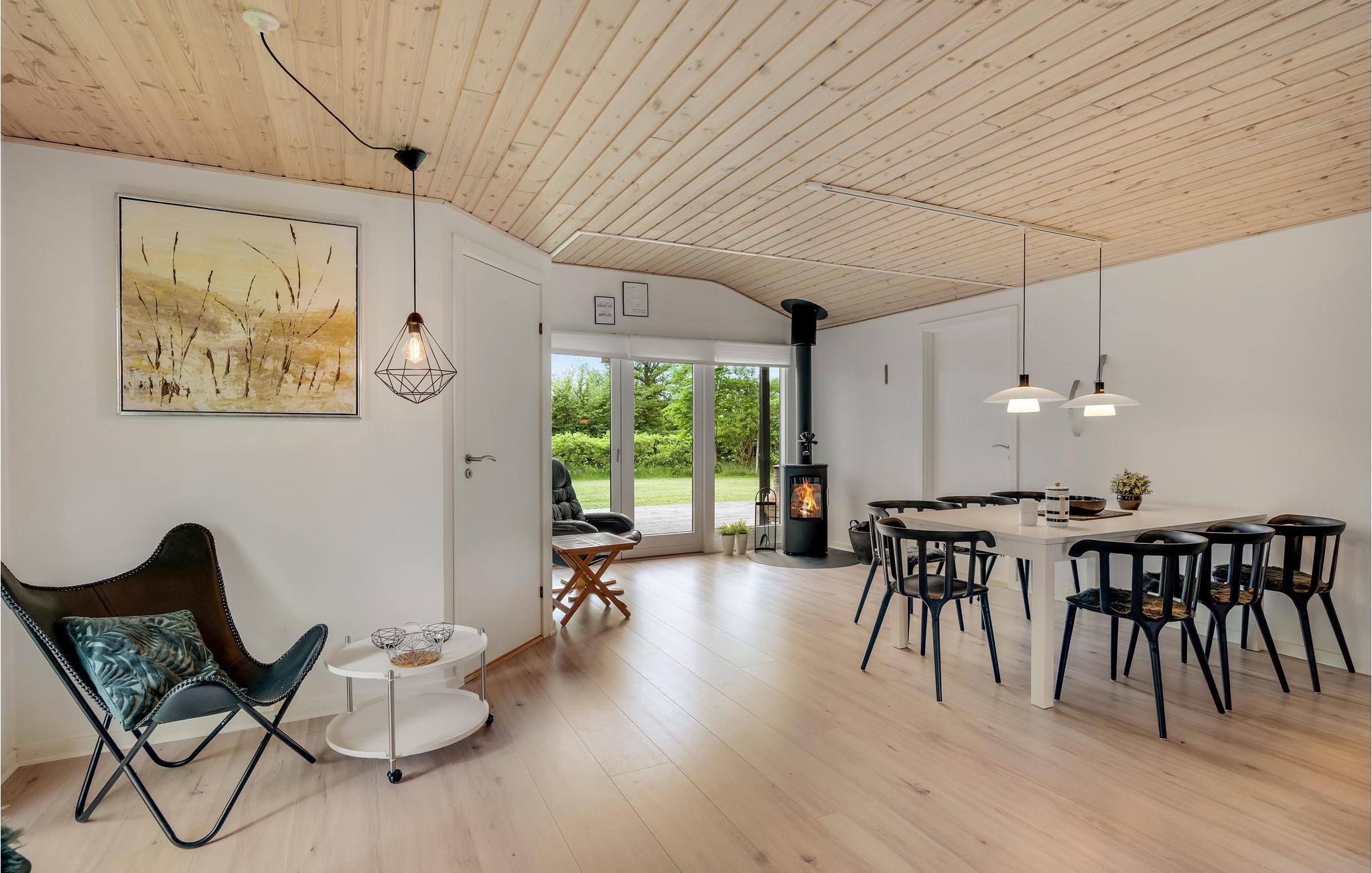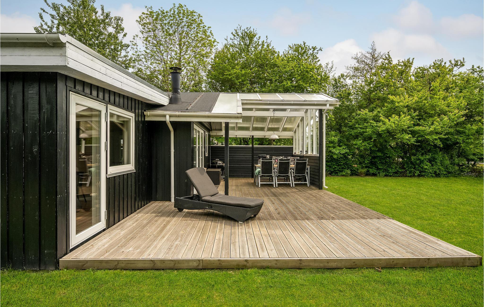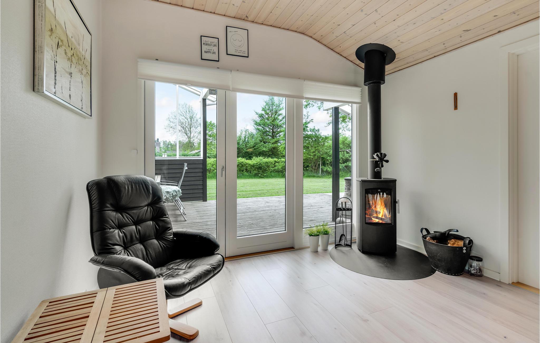 Lyst og veludstyret fritidshus nær Bork Havns strand og surfmuligheder med store terrasser og hyggelig brændeovn.