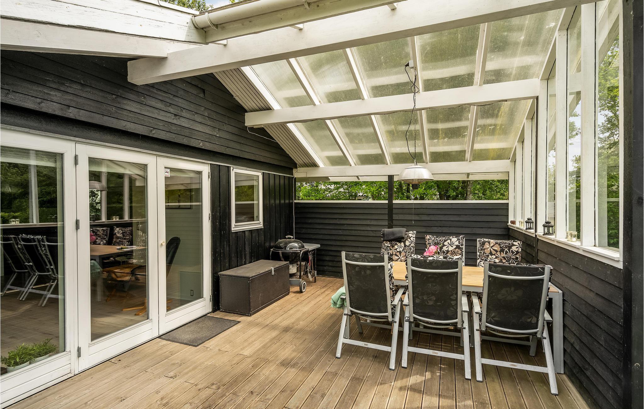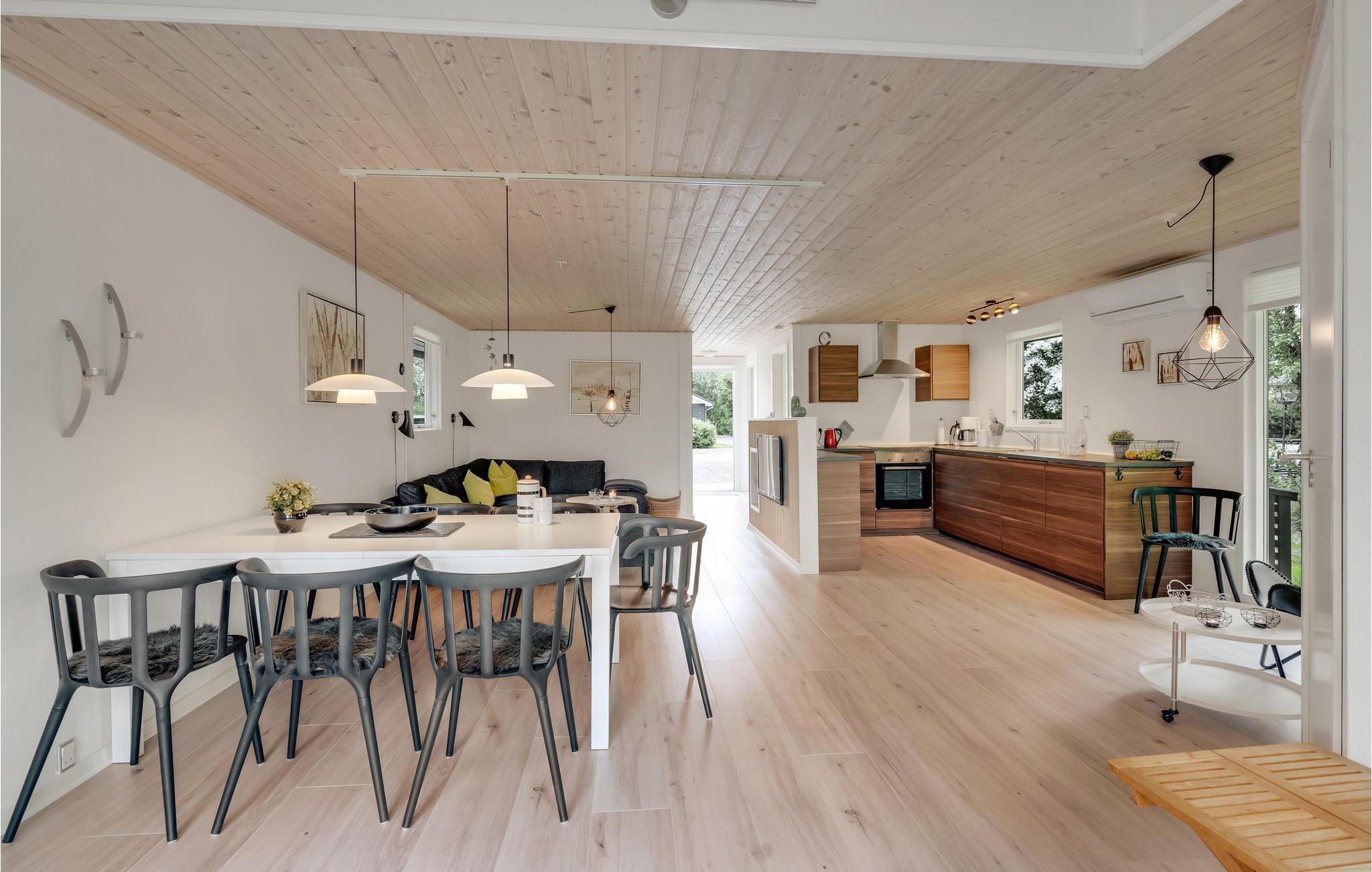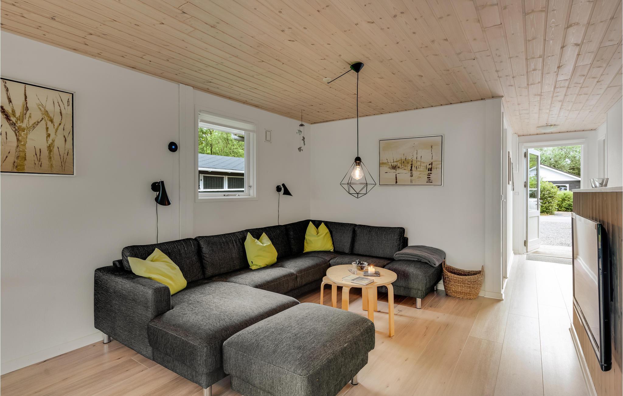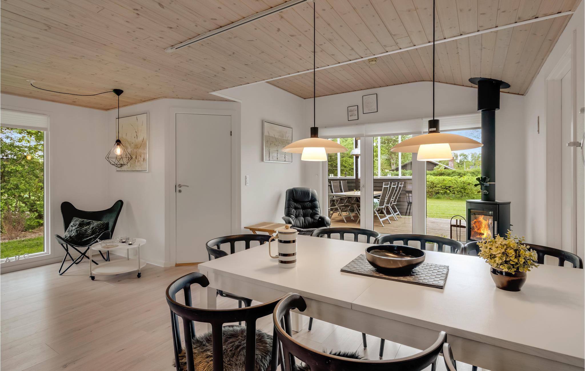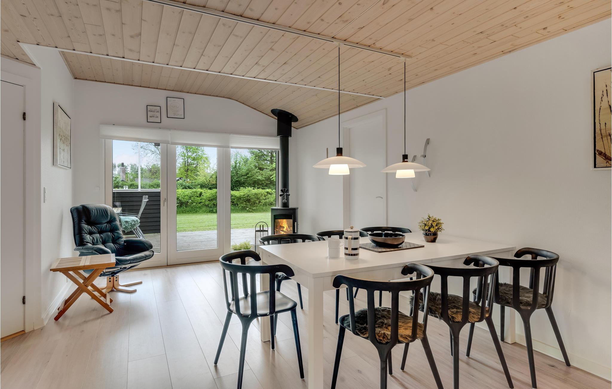 Lyst og veludstyret fritidshus nær Bork Havns strand og surfmuligheder med store terrasser og hyggelig brændeovn.