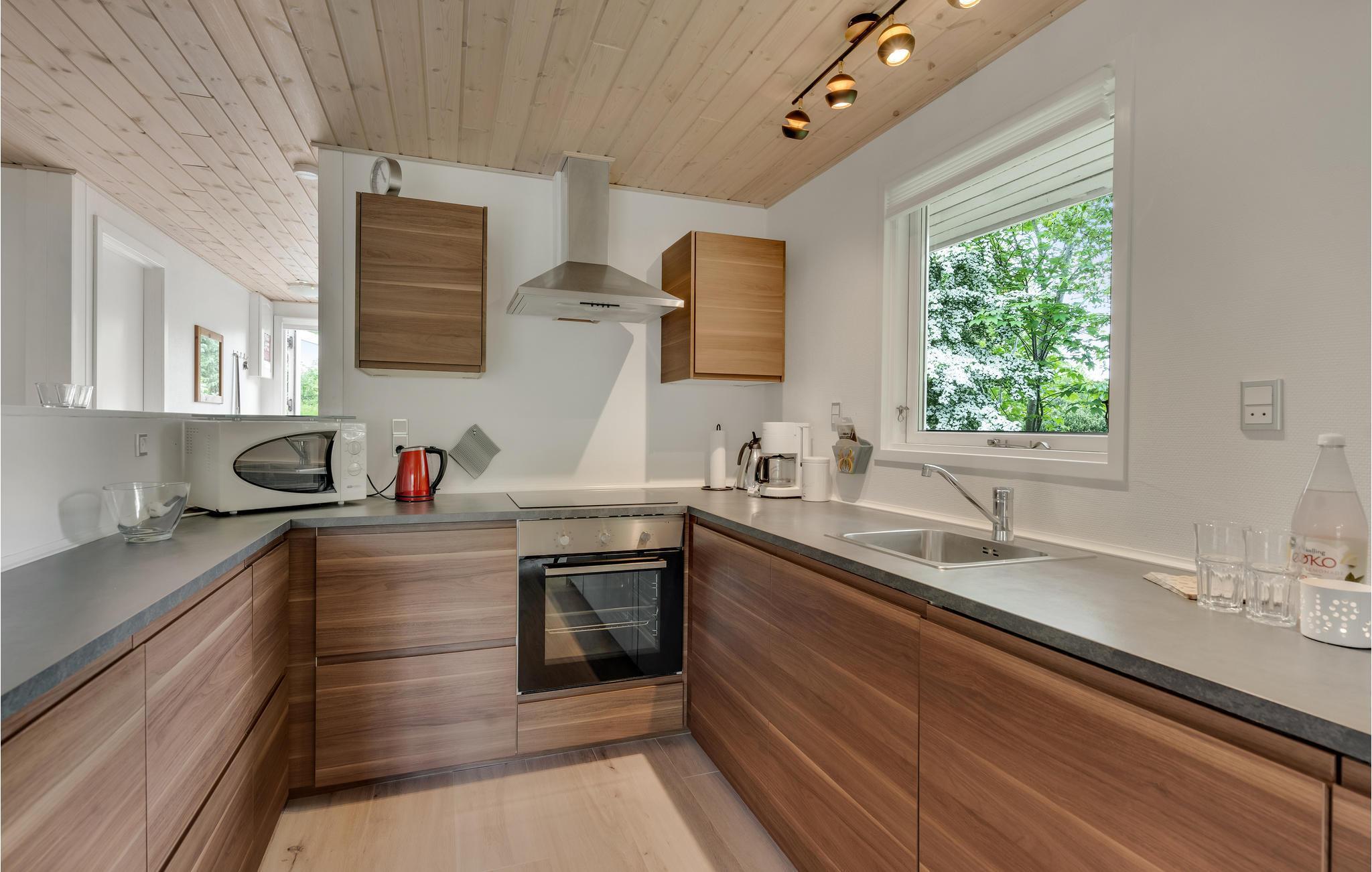 Siger man Bork Havn, kommer ordene surfing, strand, vikingetema og børnevenligt helt naturligt i samme sætning. Huset her ligger nemlig i bunden af Ringkøbing Fjord ved Bork Havn. Huset fremstår lyst og flot, og I kan se, at der kræset om detaljerne. I hjertet af huset ligger det store køkken/alrum med en flot køkkenafdeling, tv-stue med fladskærm og brændeovn der kan lave hyggestemning hen på de sene aftentimer. I den ene ende af huset ligger der to soveværelser, hvoraf det ene har egen udgang til en stort sydvendt træterrasse med et dejligt lukket, overdækket areal. Netop på denne terrasse vil mange timer kunne nydes med solbadning, frokost med grilning eller leg i haven. I modsatte ende af huset ligger det flotte lyse badeværelse med brus, yderligere et soveværelse og et lille vaskerum med vaskemaskine og tørretumbler. På nordsiden er der mellem huset og et lille skur, yderligere en fin træterrasse. Har I selv medbragt cykler, er der mulighed for at kunne stille dem i et aflåst skur. Få minutters gåtur fra huset ligger en legeplads, og købmand, restaurant samt havnen kan også nås på kort tid. Gå en tur langs havnen mens I nyder en is, eller I tag evt. en familiedyst i minigolf. Bork Legeland ligger blot 1,5 km fra huset. Legoland og Givskud Zoo kan nås i bil indenfor en time.