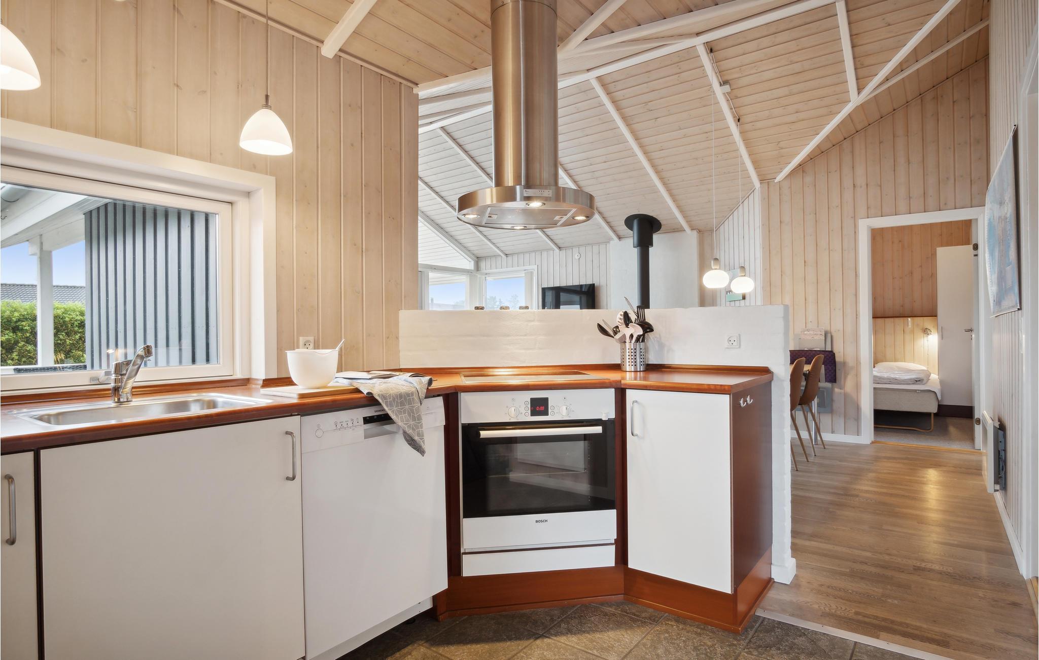 I et godt beliggende feriehusområde ved Bork Havn finder I dette flotte kvalitetshus. Det er indrettet med blandt andet tre gode soverum, et badeværelse med spabad og sauna samt et stort og hyggeligt køkken/alrum med brændeovn og udgang til den sydvestvendte træterrasse. Huset ligger for enden af en grusvej med meget lidt trafik. Bork Havn er kendt for den hyggelige atmosfære omkring havneområdet og de gode forhold for surfere. Der er desuden mange gode cykel- og vandrestier i området.