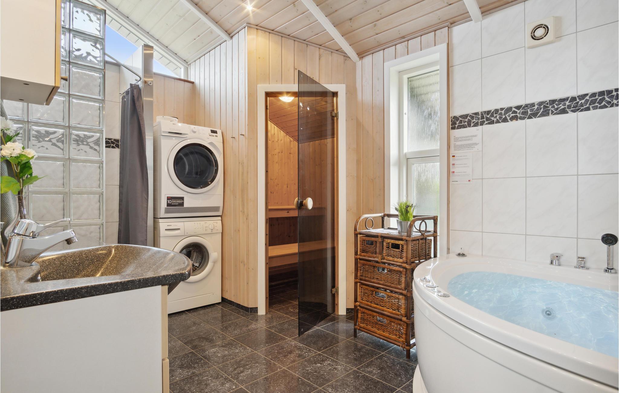 Flot feriehus i Bork Havn med sauna, spabad og brændeovn på stor terrasse.