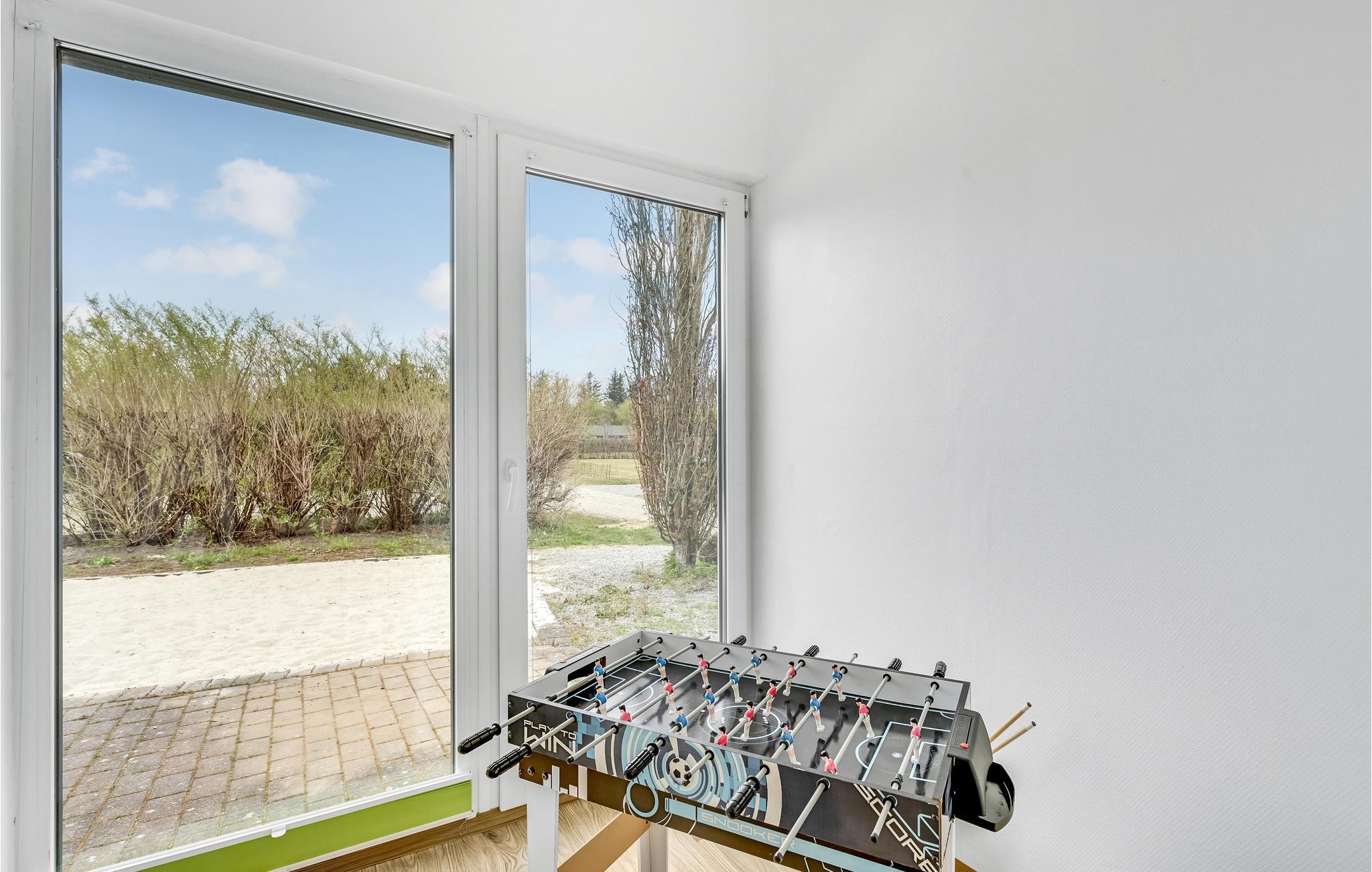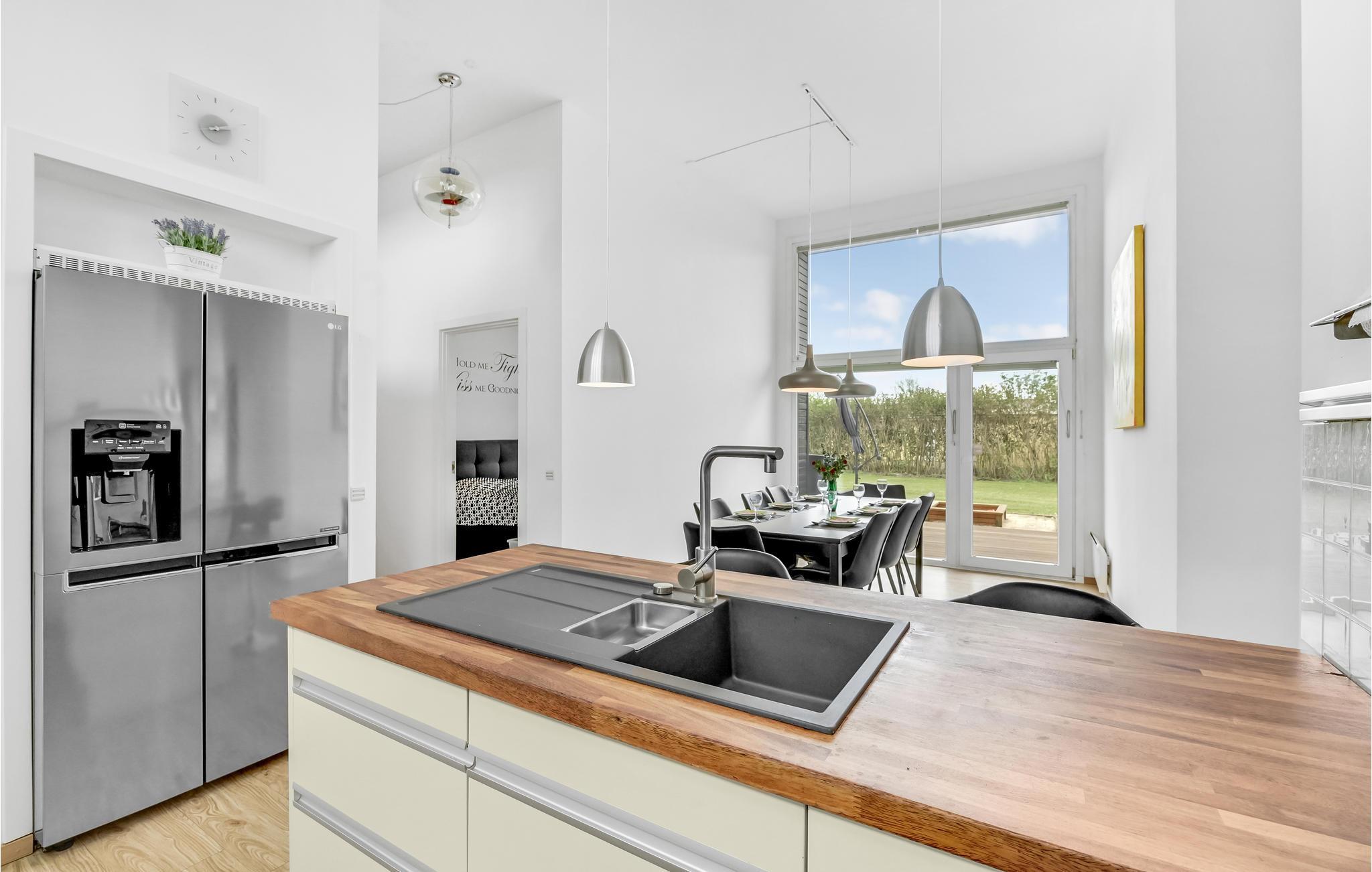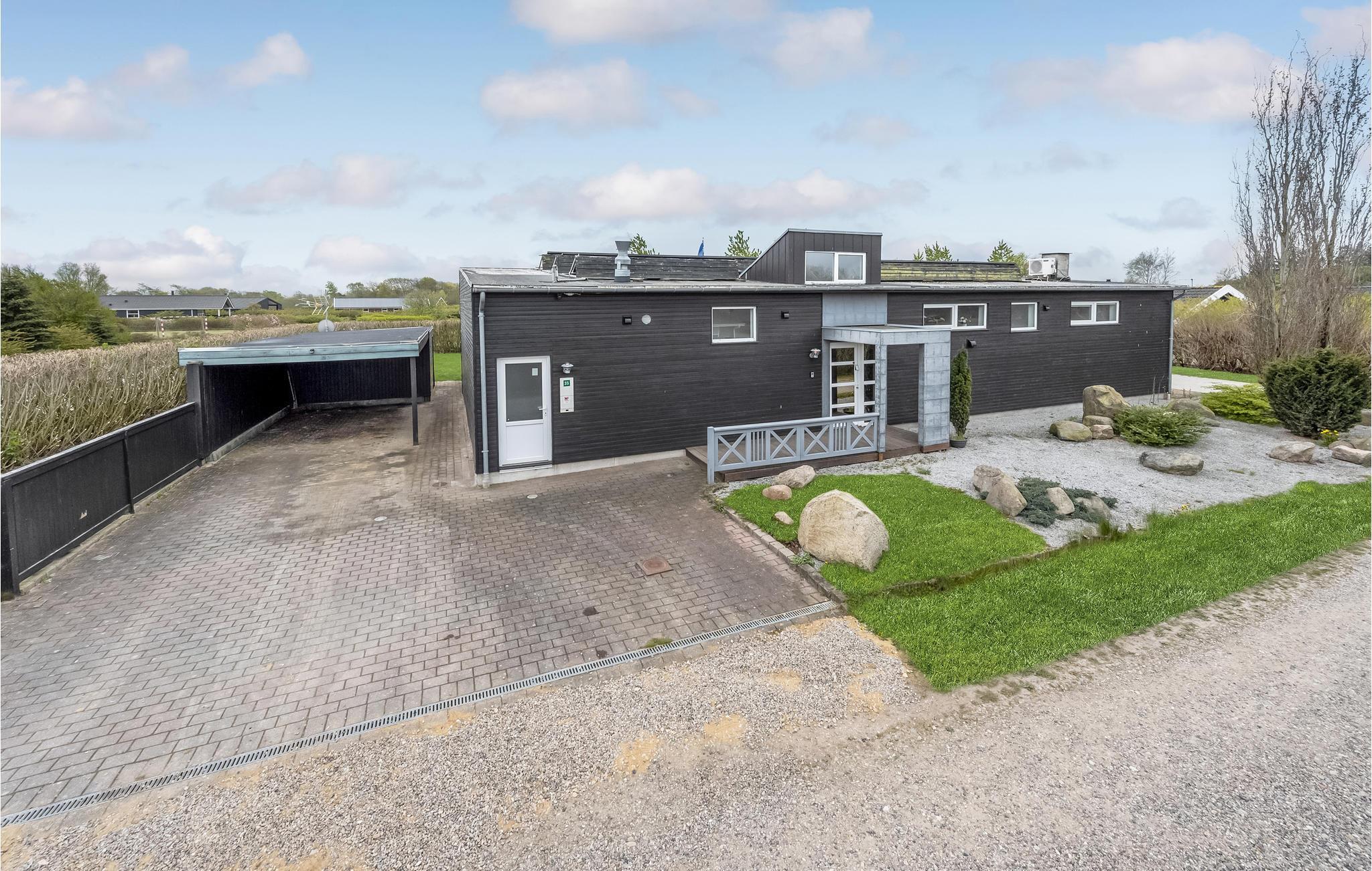 Unikt hus med pool bygget i en flot, arkitektonisk stil og indeholdende alt hvad I skal bruge på ferien. Poolen har svømmetræner og fra poolrummet er der udgang til den store udendørs 6 pers. standvandsspa. Den moderne byggestil gør, at alle værelser er meget rummelige og har højt til loftet. Begge badeværelser er gennemrenoverede. Det velindrettede køkken/alrum med brændeovn indeholder alt i hårde hvidevarer. Fra alle soveværelser samt stuen er der udgang til husets terrasser og på grunden er der petanquebane mm. I huset er der installeret flere varmepumper til billig opvarmning af pool, spa og badevand. Området er kendt for de gode surfmuligheder i Ringkøbing Fjord, den hyggelige og stemningsfyldte lystbådehavn samt den meget børnevenlige badestrand. Kort afstand til en put and take-sø.