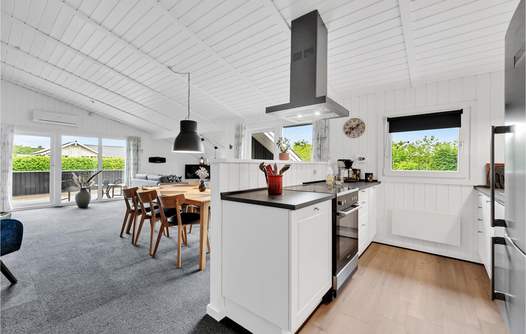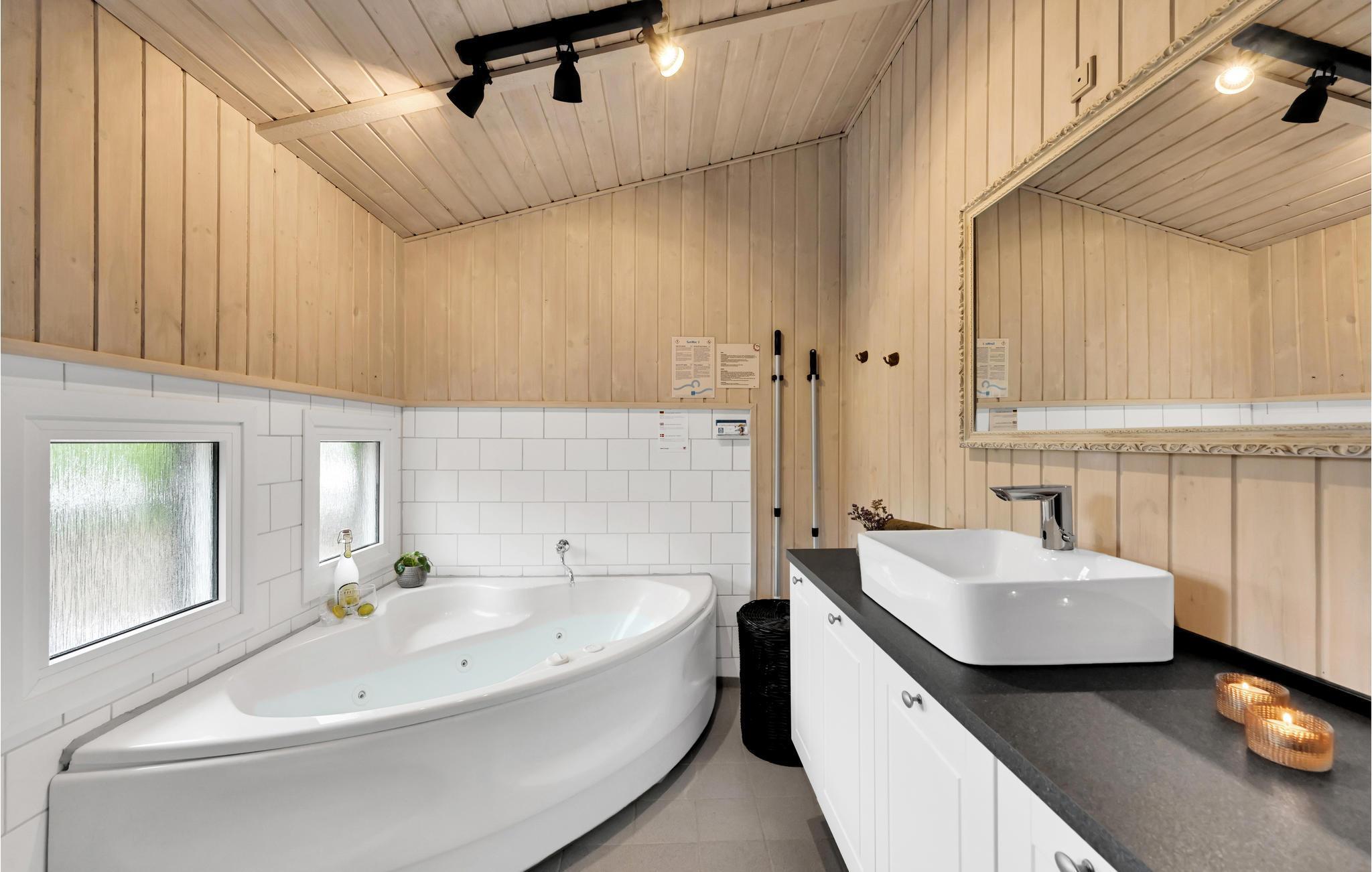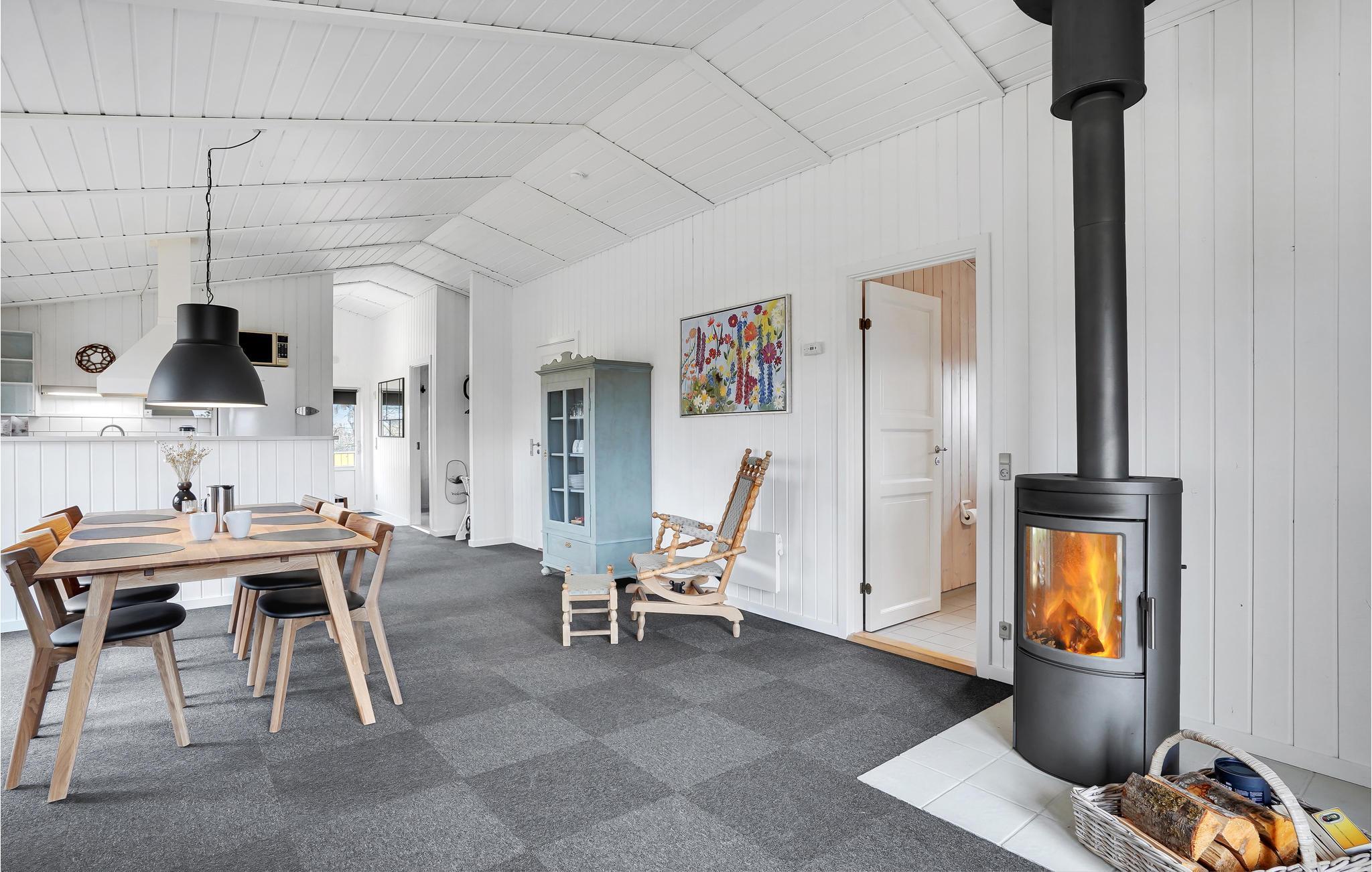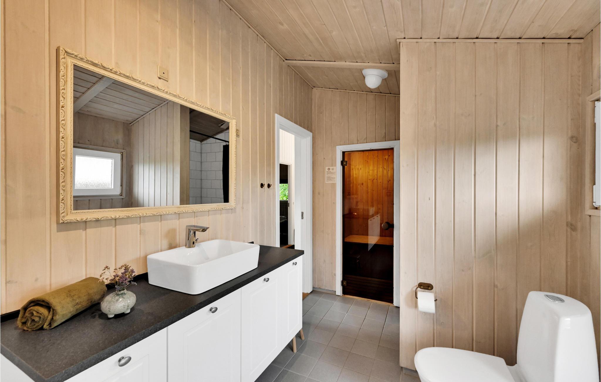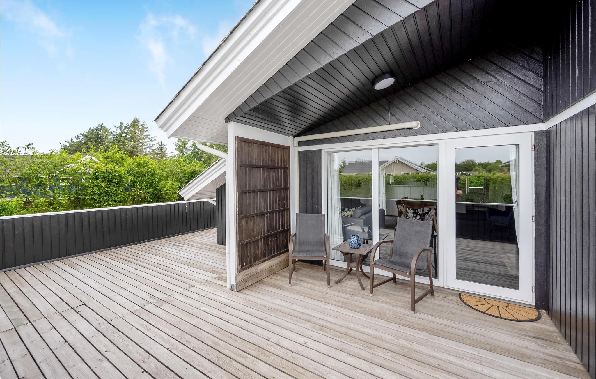 Huset råder over en god terrasse, der går hele vejen rundt om huset, samt en dejlig have med plads til at børnene kan boltre sig. Husets køkken ligger i direkte åben forbindelse med stuen, så der er god mulighed for at kokken i køkkenet kan følge med i samtalerne i stuen mens der laves mad. Huset har tre gode soveværelser samt et stort badeværelse med spabad og sauna, hertil kommer et gæstetoilet. Efter en lang tur ved fjorden eller Vesterhavet, er det skønt at blive varmet godt igennem i saunaen efterfulgt af en god kop kaffe i stuen. Ringkøbing Fjord er yderst velegnet til windsurfing og al anden slags vandsport. I området finder I også lysstøberi, Bork legeland og Bork Vikingehavn.