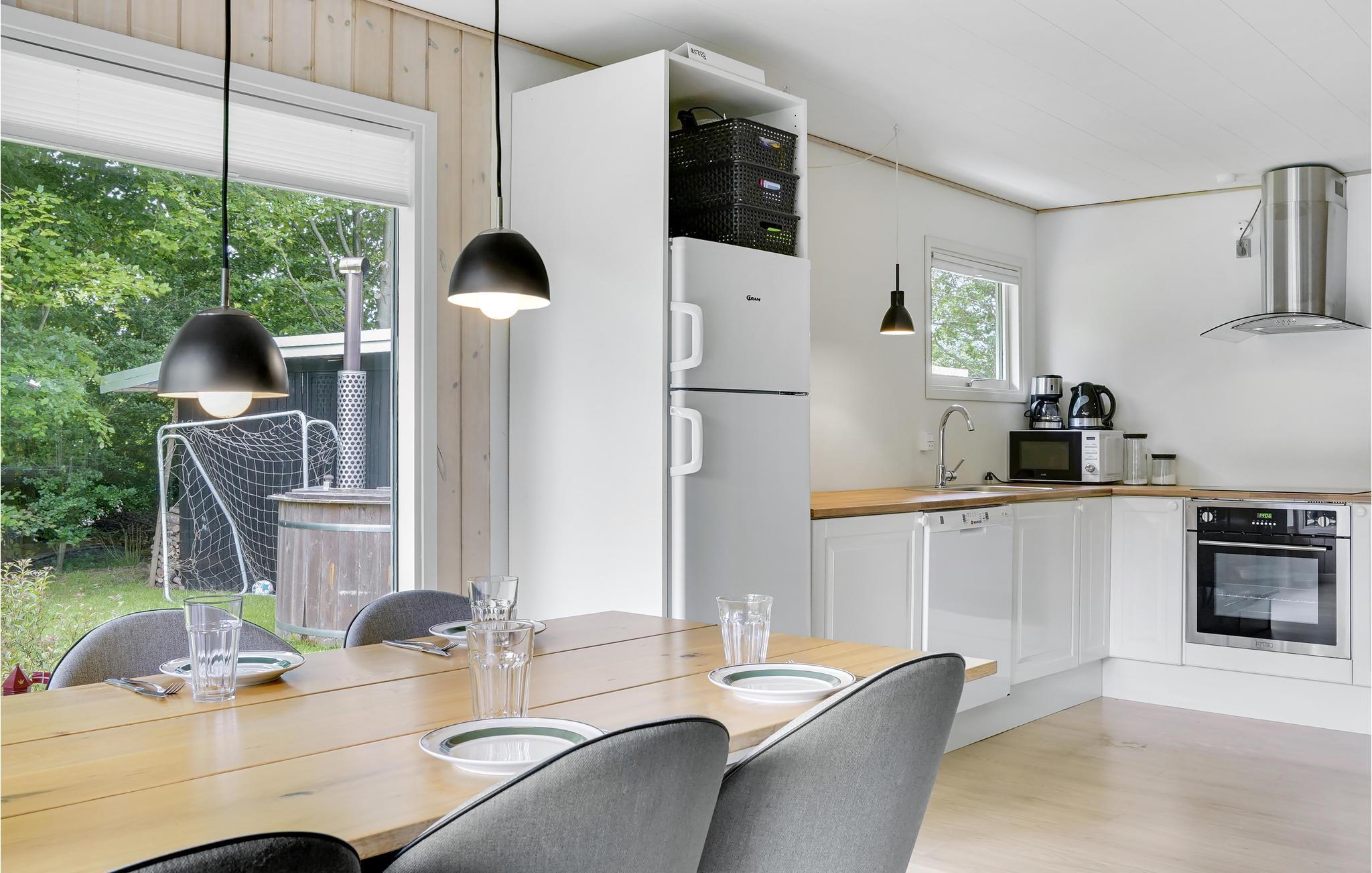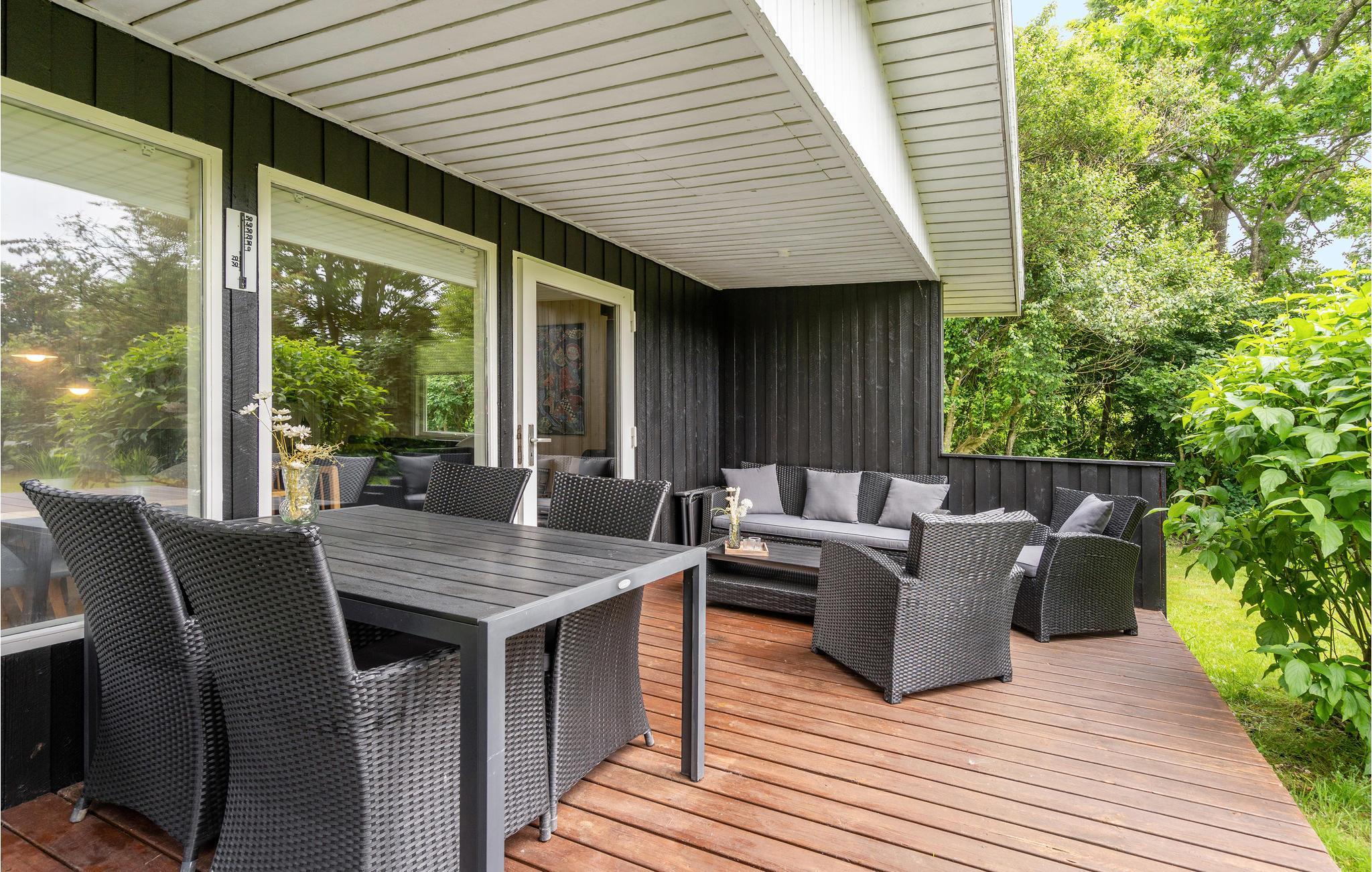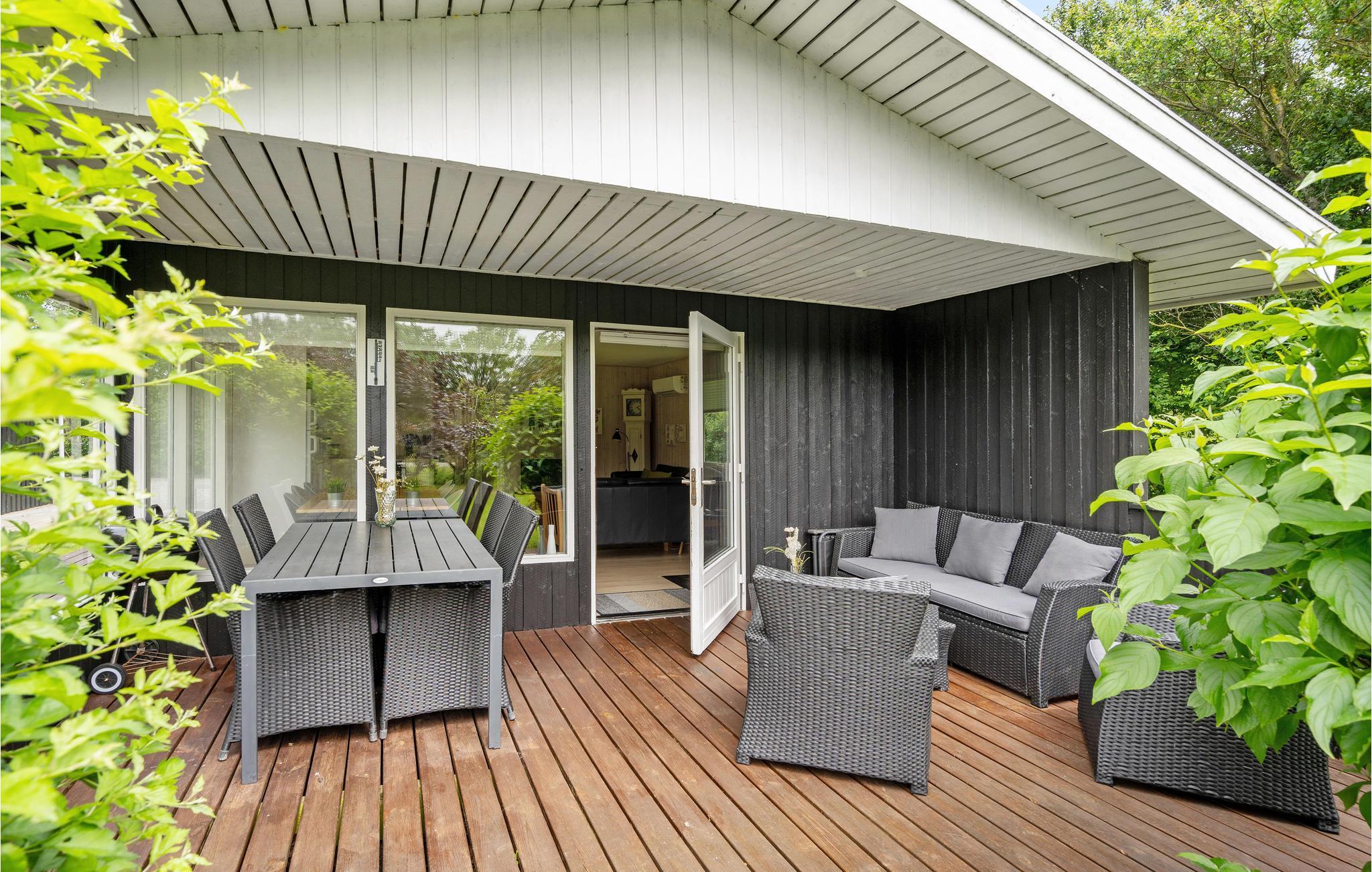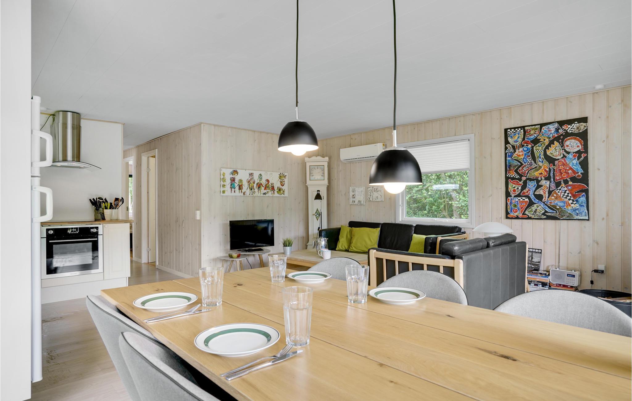 Huset har stue og køkken ud i et med brændeovn, 3 værelser (det ene med dobbeltseng og de andre 2 med enkeltseng) samt badeværelse med brus og vaskemaskine. Udenfor findes en god overdækket terrasse med havemøbler og grill. Bork Havn er et hyggeligt område. Her er lidt for enhver smag - blandt andet Bork Vikingehavn og Bork legeland, som begge er et besøg værd. Her er også den rigtige havn i Bork med små fiskebåde og mange sejlbåde. På havnen kan man af og til købe en friskfanget fisk. Skal man ud og motionere, så starter hjertestien lige før havnen, og fortsætter op langs Ringkøbing Fjord.