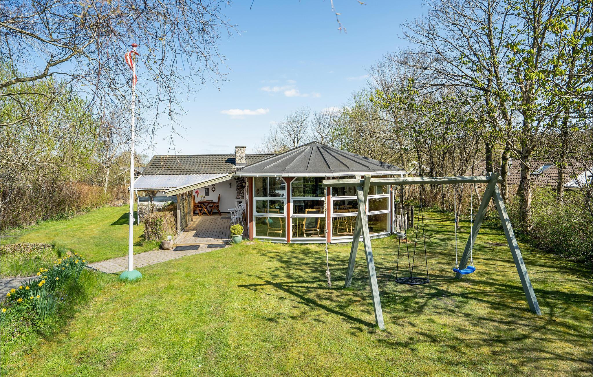 Udenfor kan I nyde solen og feriens måltider på terrassen med både åbne og overdækkede arealer. Jeres børn vil elske gyngerne i den private have, og jeres hund kan boltre sig på græsset.
