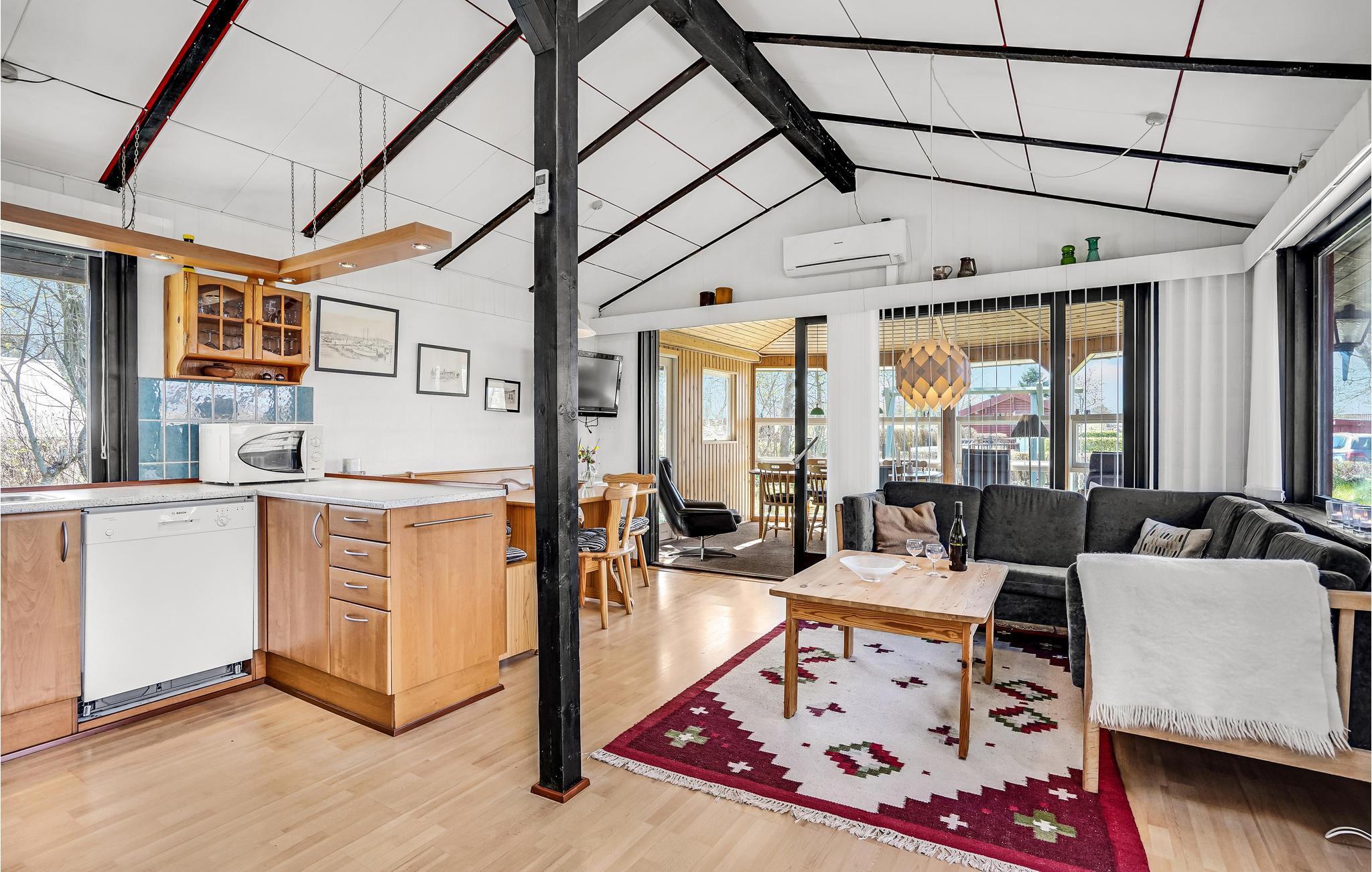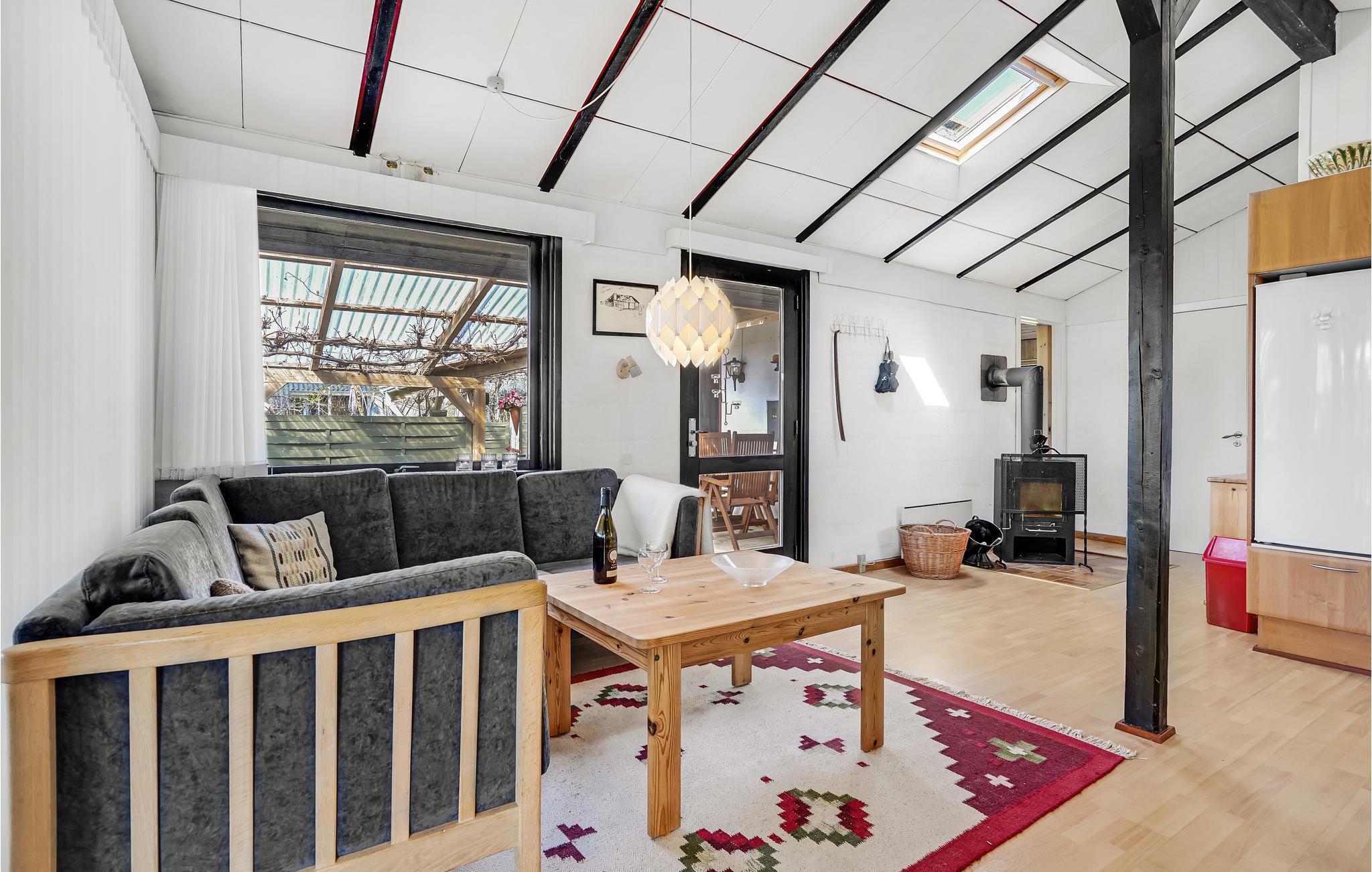 Velkommen til dette rummelige, lyse og smagfuldt indrettede feriehus, som har plads til hele familien og en hund. Huset har en helt speciel - og meget hyggelig - atmosfære takket være fritlagte træbjælker i stuen og charmerende trævægge- og lofter i de andre rum, der skaber en næsten hytteagtig stemning. I kan restituere i saunaen efter en aktiv feriedag.