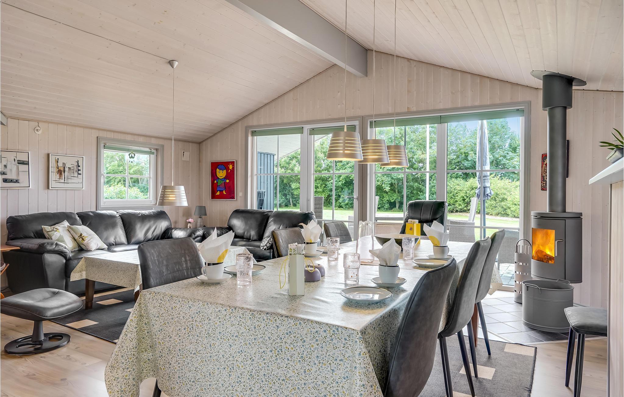 Dette hus er meget lyst og rummeligt. Her finder I dejligt badeværelse med karbad og bidet samt et ekstra toilet. Der er også et rummeligt bryggers med håndvask og bordplade. I stuen spreder brændeovnen dejlig varme og skaber en hyggelig stemning.