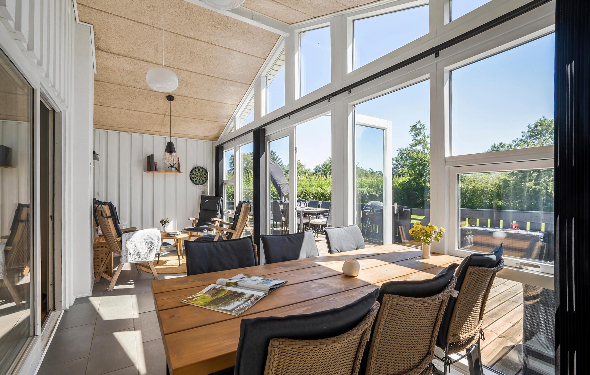 Huset er virkelig flot indrettet med gode faciliteter til et ophold for både unge og ældre. Der er et hyggeligt aktivitetsrum til børnene med mini-poolbord, minibordtennis og et lille legekøkken, mens der for de lidt ældre er mulighed for at nyde lidt lækker wellness i saunaen og spabadet. Køkkenet er veludstyret, så lad endelig familiens kokke kræse om livretterne, inden der dækkes op ved spisebordet til en hyggelig aftensmad. Senere kan I hive brætspillene frem og måske trække ud i udestuen med et godt glas vin og nyde udsigten til haven.