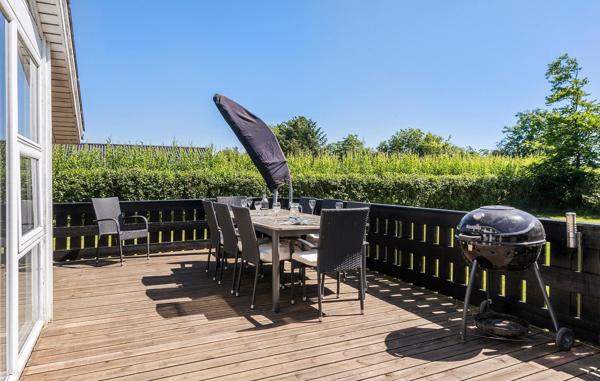 På de varme dage kan I trække udenfor og nyde det gode vejr på den dejlige grund. Børnene får deres private legeplads i haven med sandkasse, gynger og legehus, de kan brænde energi af med. Alt imens kan de voksne nyde solen på den store terrasse lige fra morgenstunden, og måske I skal købe lidt lækkert med hjem til en dejlig aftensmad fra grillen?