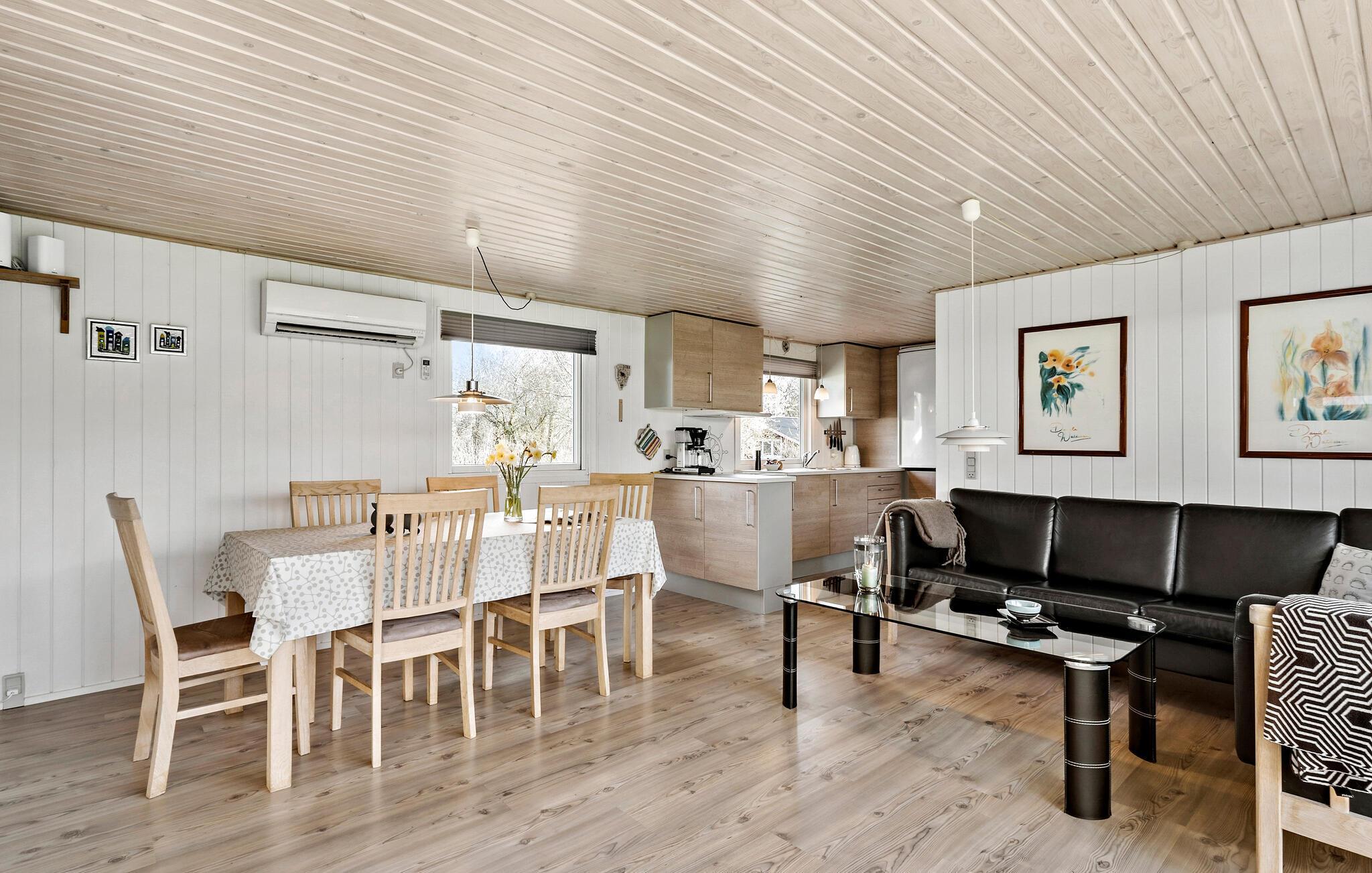 Lige i bunden af Ringkøbing Fjord finder I dette indbydende træhus, der danner rammen om en fantastisk familieferie i det vestjyske. Huset er pænt og hyggeligt indrettet med masser af træ, et åbent boligkoncept og et lækkert lysindfald, der skaber en rar atmosfære at slappe af i med god mad eller en bog i sofaen. Efter aftensmaden kan I trække ind i aktivitetsrummet og udfordre hinanden til et slag dart eller bordfodbold, inden I sætter en god fim på tv'et i stuen.