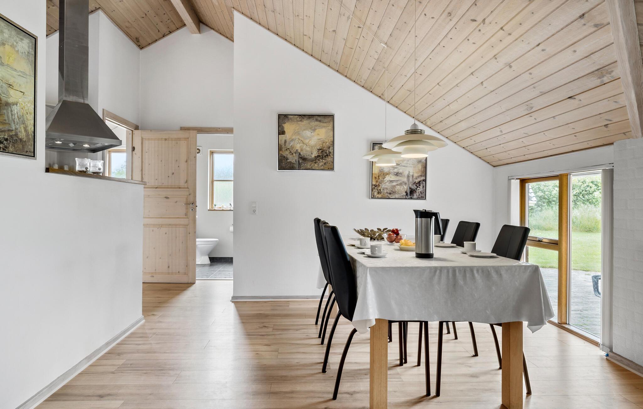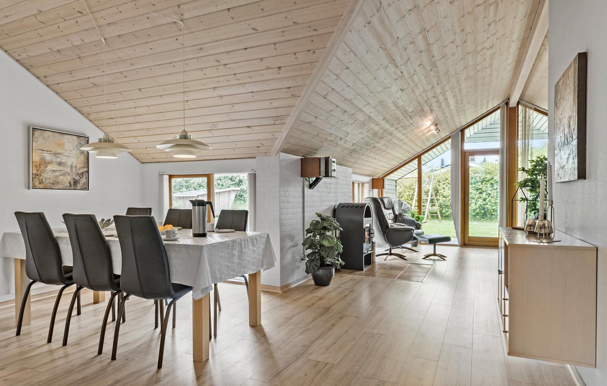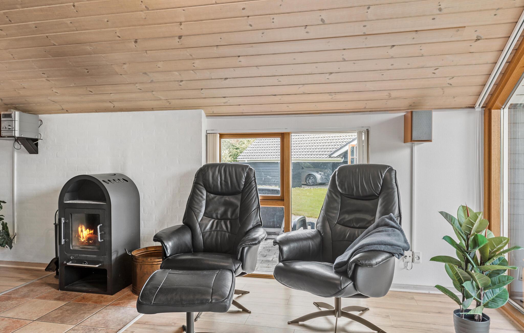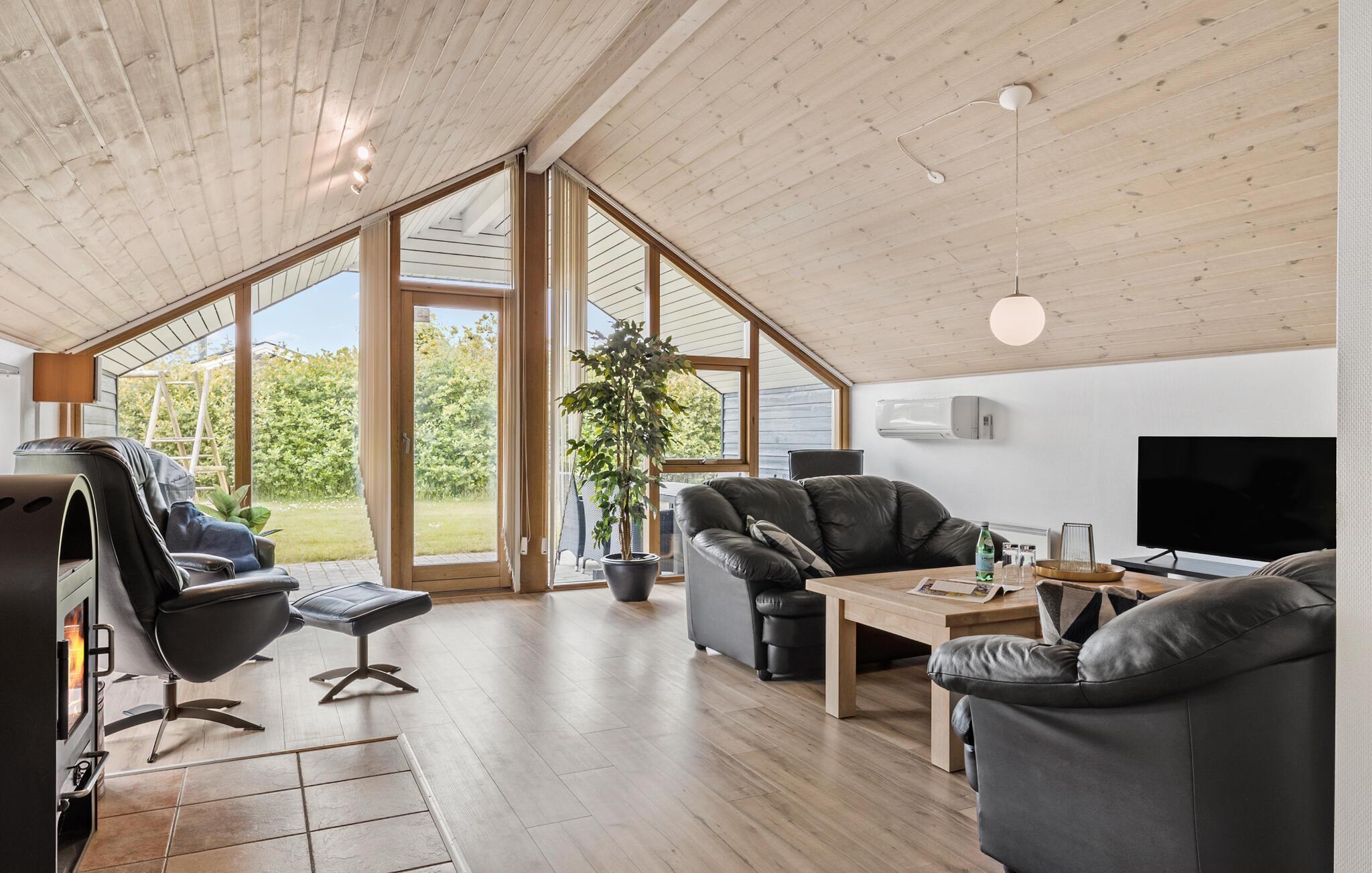 Velkommen til dette indbydende hus, som byder på nogle smukke omgivelser, hvor I kan hygge jer efter alle kunstens regler. Slap af i saunaen efter en strandtur, og nyd den smukke udsigt gennem de store vinduespartier under de fælles måltider, eller når I spiller sjove familiespil sammen. Bålet i brændeovnen skaber en ekstra hyggelig atmosfære, når det bliver lidt køligere udenfor.