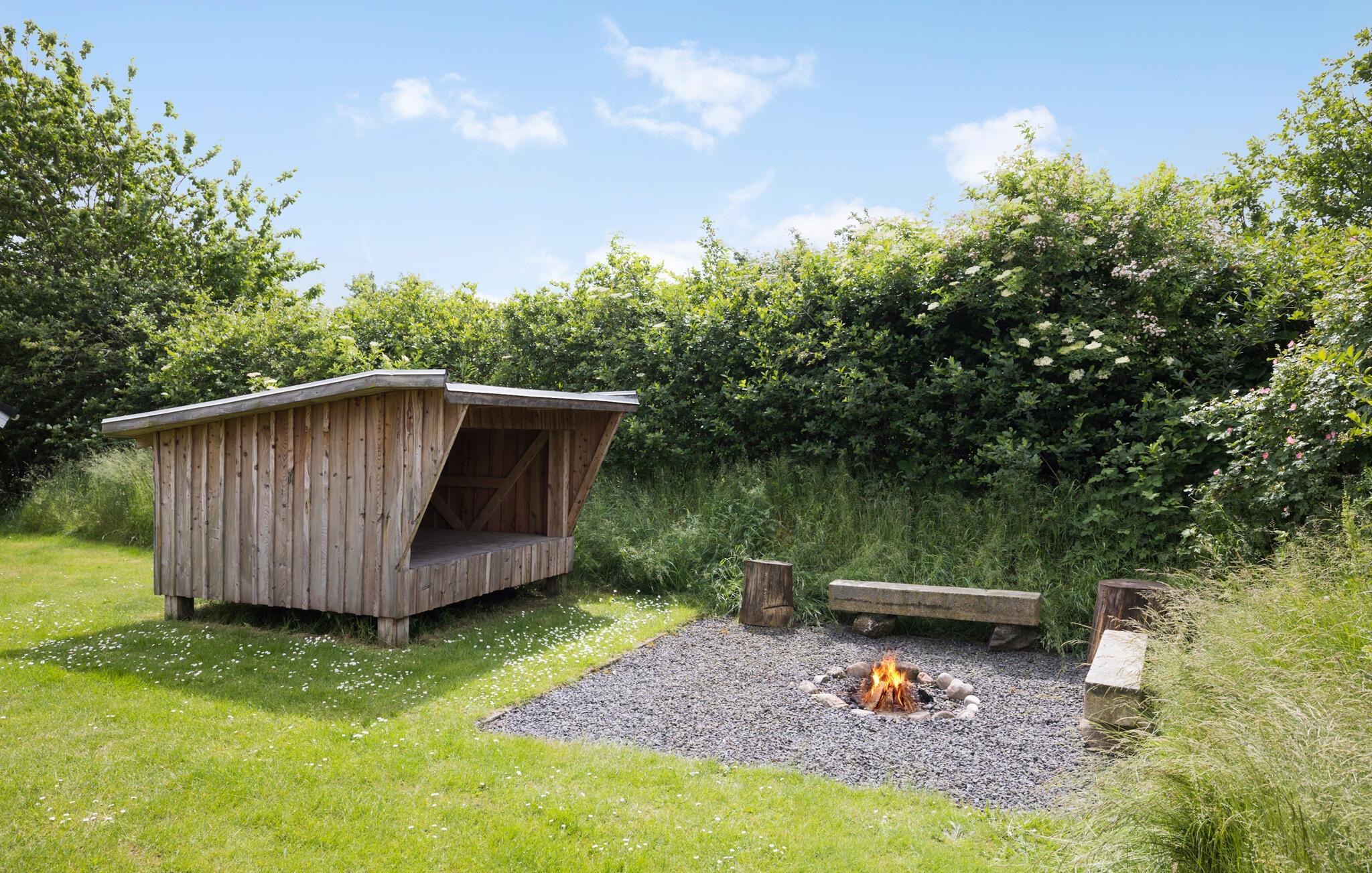Flyt måltiderne udenfor, når vejret er godt, og nyd solen på terrassen, mens børnene leger og gynger. Om aftenen kan I samle hele familien til et hyggeligt lejrbål ved shelteren.