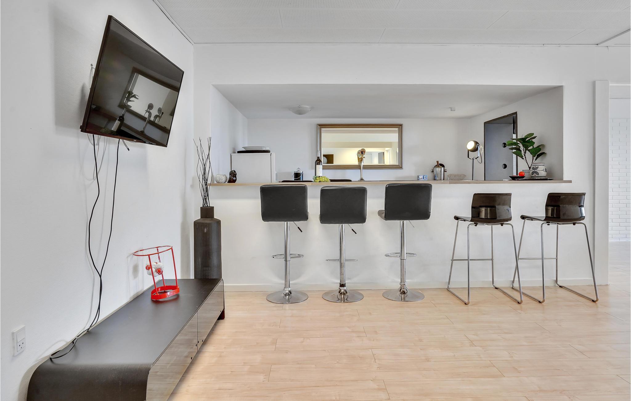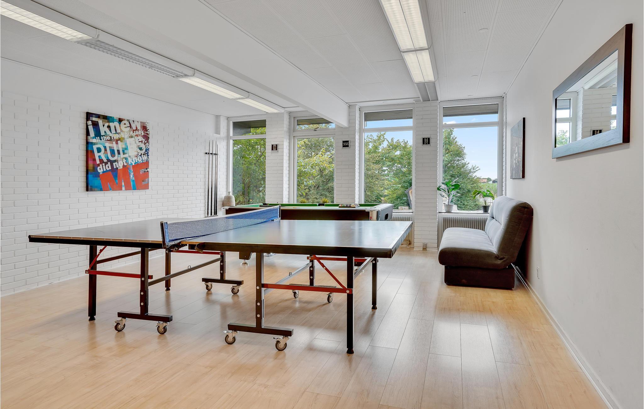 Slå jer ned i det hyggelige sofahjørne med en god film og tag hul på en skøn ferie. Brug det åbne køkken med moderne apparater til at lave mad sammen og nyde måltider ved det lange spisebord. Lige ved siden af ??ligger bardisken med høje barstole, der er perfekt til hyggelige aftener. Snup et spil billard, bordtennis eller bordfodbold i det tilstødende aktivitetsrum, når I vender hjem fra dagens udflugter.