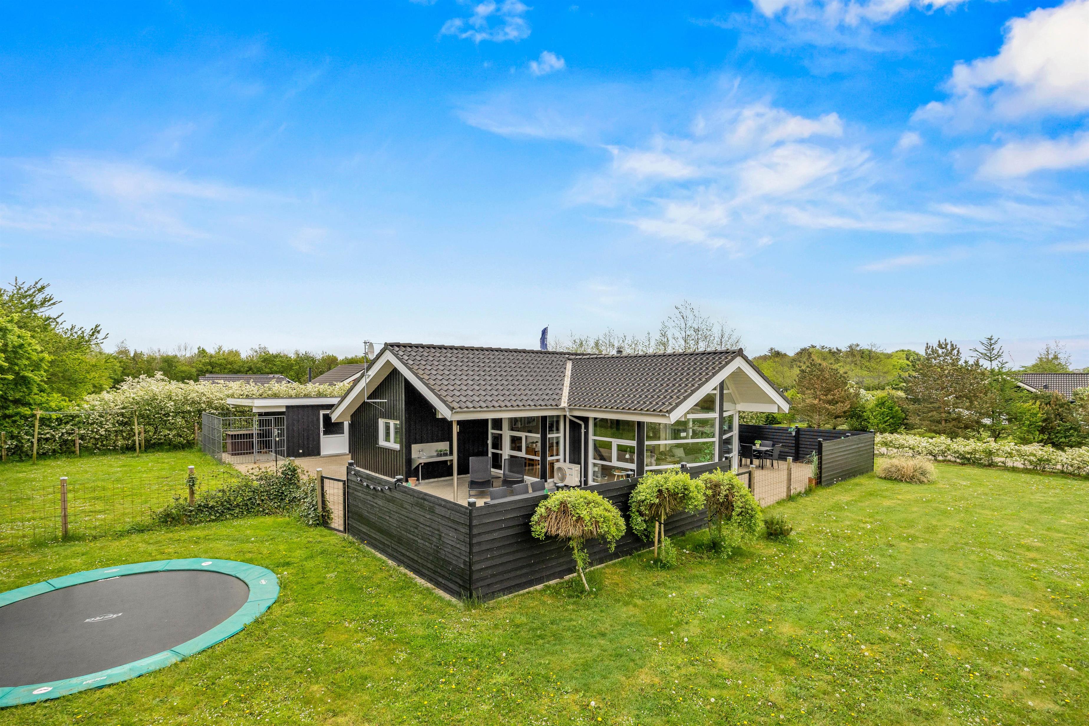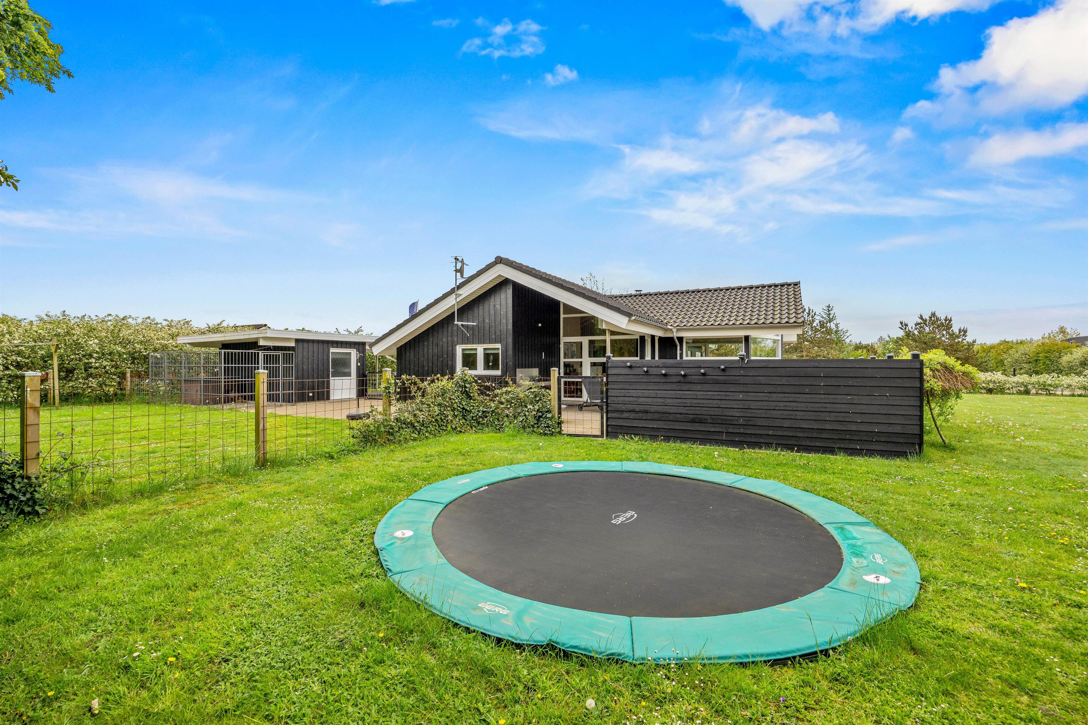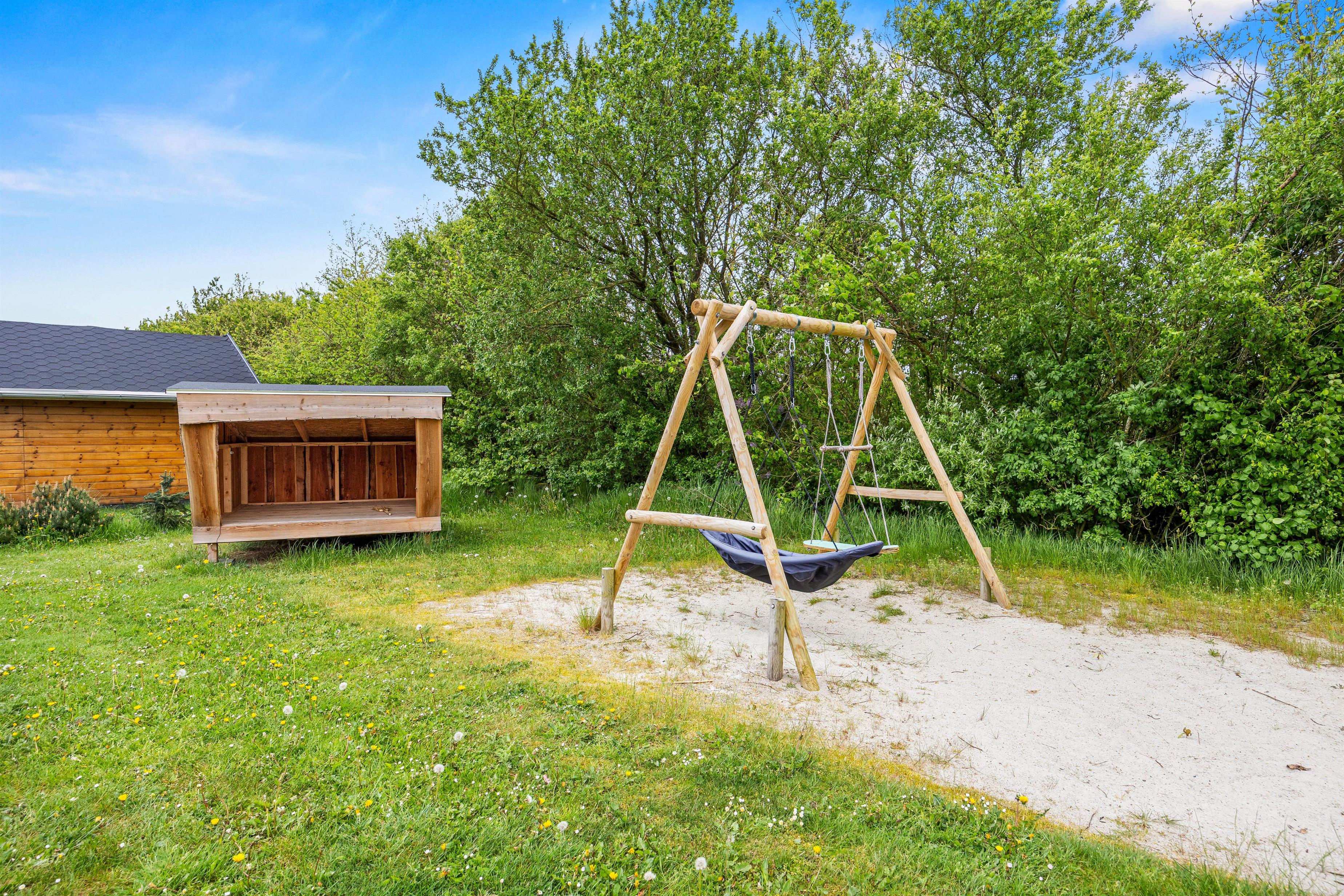 Huset ligger på en rummelig plænegrund på 1200 kvadratmeter, der giver masser af plads til leg og boldspil, både for jer og jeres firbenede venner. Der er også masser af sjove aktiviteter for børnene, herunder en trampolin, sandkasse og gynge. Begge terrasser og en del af haven er indhegnet, så I kan føle jer ekstra trygge. På de varme sommernætter kan I overnatte i shelteren.