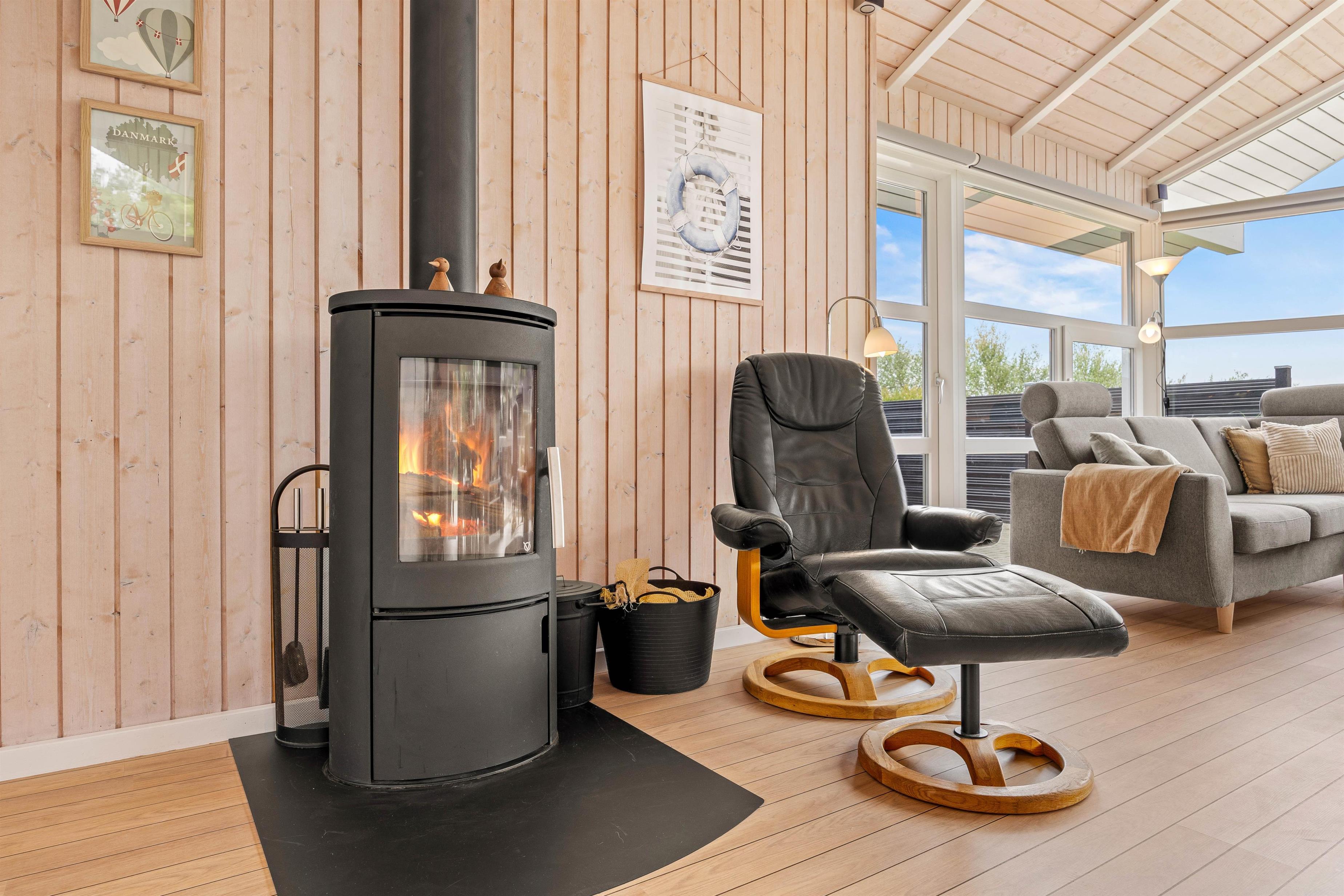 I stuen kan I slappe af og hygge jer med jeres foretrukne serier og film takket være Chromecast. Og når vejret er køligt, kan I samles omkring den varme brændeovn, der skaber en dejlig atmosfære og varmer jer på kolde morgener og aftenstunder. Hvis I trænger til lidt ekstra ro, er der også en hyggelig hems, hvor I kan trække jer tilbage og slappe af, eller hvor børnene kan hygge sig.