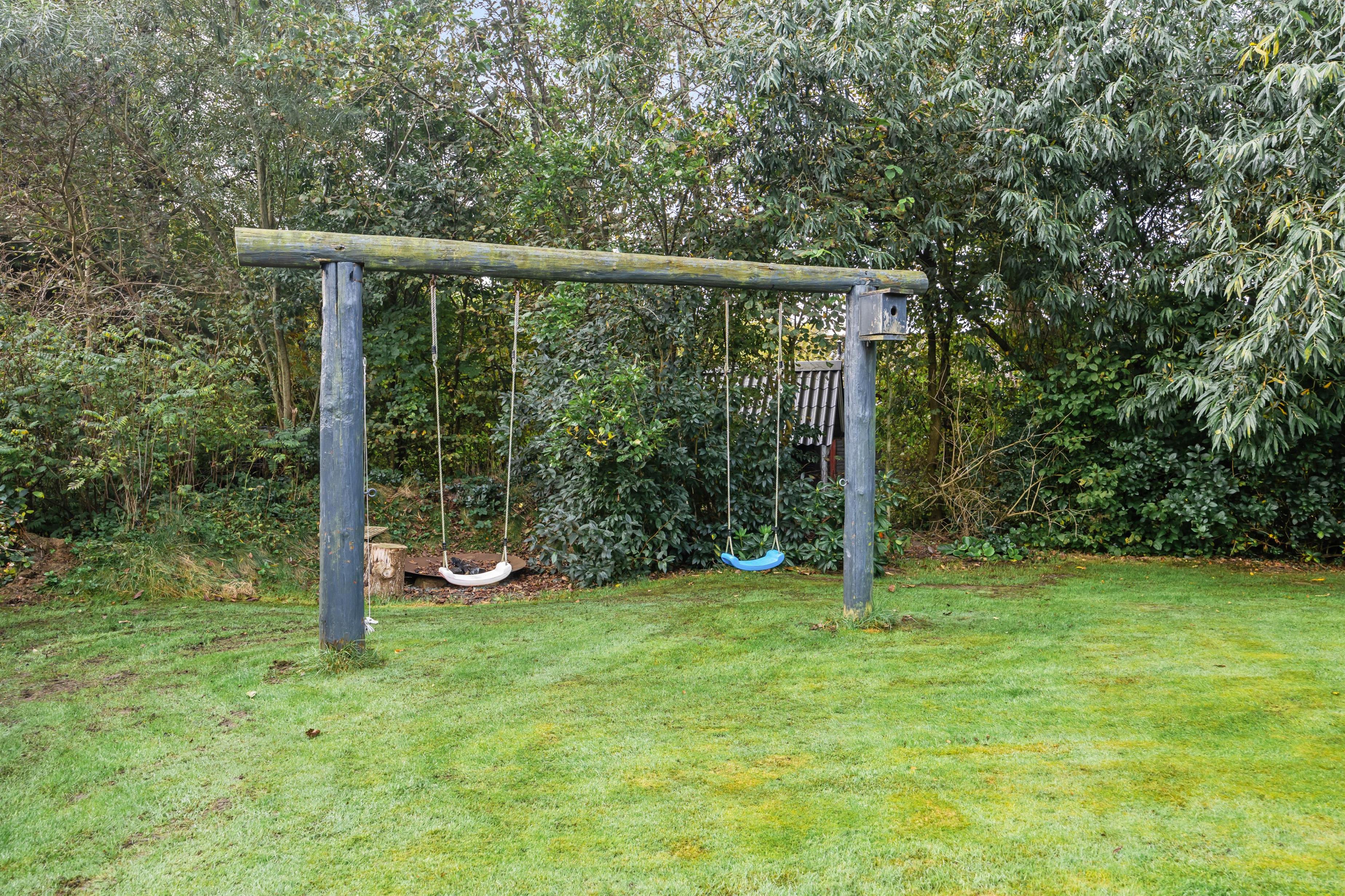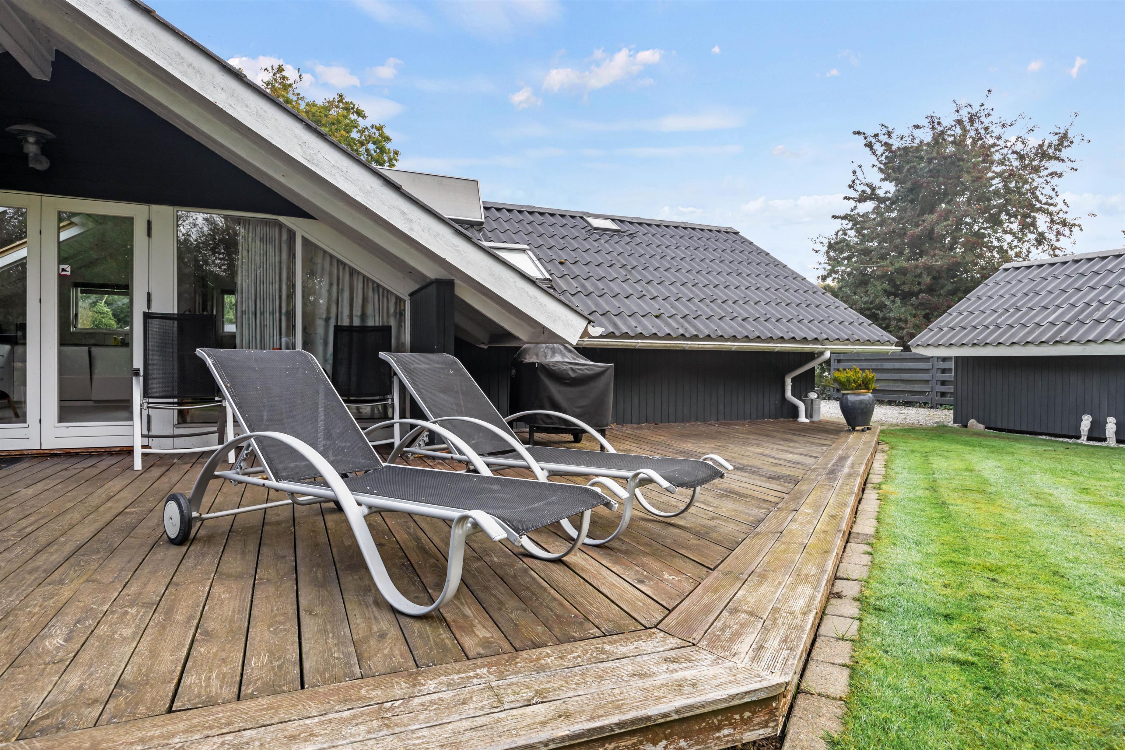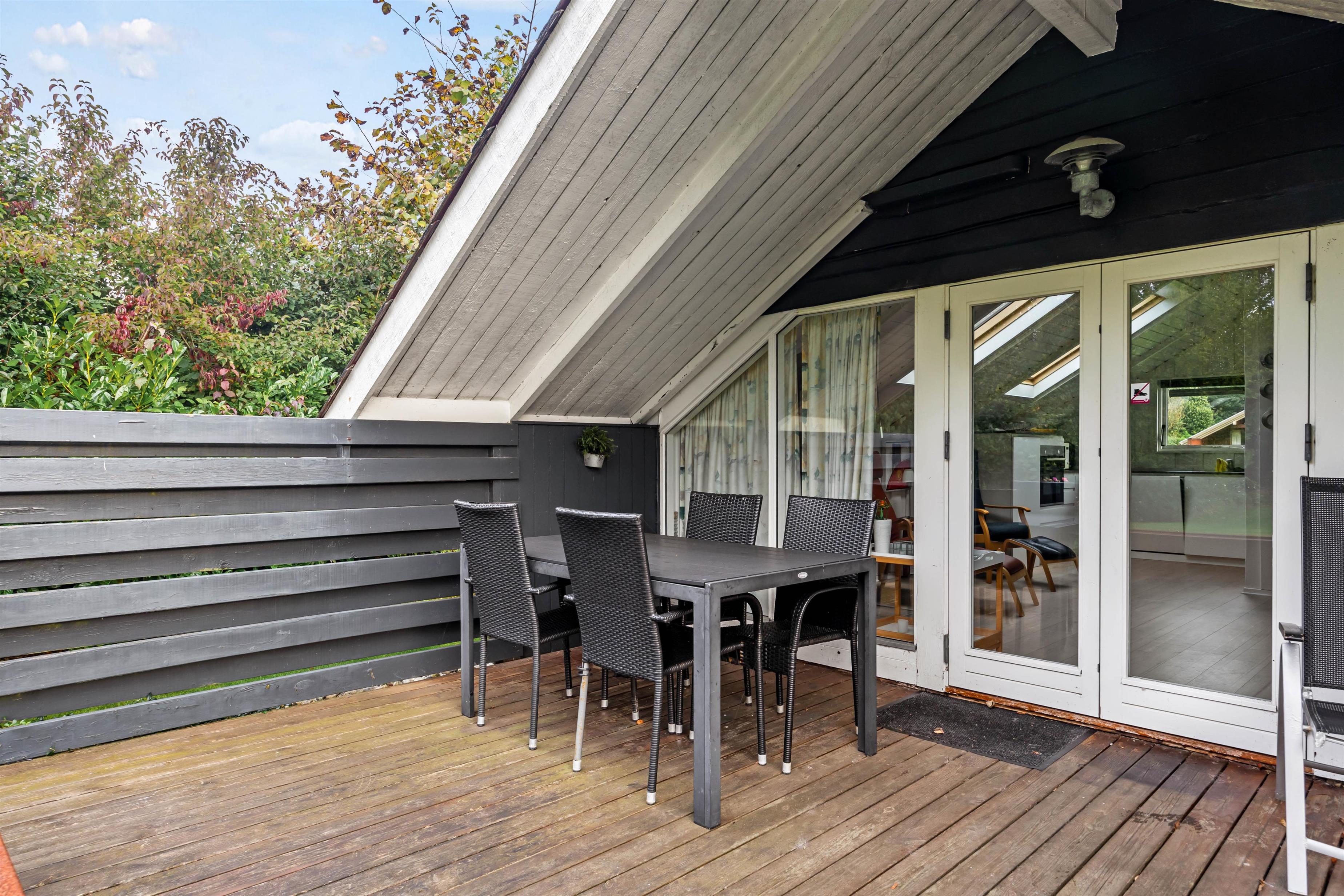 Den 1000 m² store plænegrund er et af højdepunkterne her, ligesom den delvist overdækkede terrasse med havemøbler og liggestole, hvor I kan nyde solrige dage eller slappe af i skyggen, når solen står højest på himlen. Haven giver også rig mulighed for leg og aktiviteter for børnene, som kan løbe rundt, gynge eller spille bold. Om aftenen kan I samle familien omkring grillen og lækre måltider, mens I nyder roen sammen.