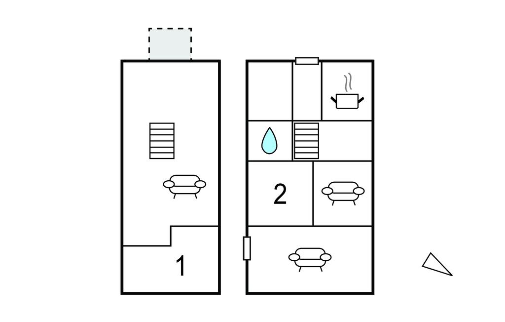 Opholdsstue - 1 Soveplads. (Sofa, madras eller lignende).