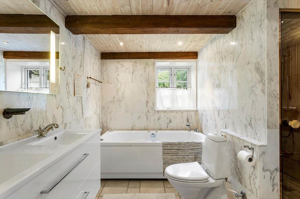 Når du træder indenfor i dette bindingsværkshus, bliver du straks mødt af en atmosfære, der emmer af hygge og historie. De fritlagte bjælker og det smukke plankegulv vidner om husets gamle sjæl, mens de bevarede originale elementer skaber en autentisk og hjemlig stemning. Huset er rummeligt og har plads til 10 personer, hvilket gør det ideelt for større familier eller grupper af venner, der ønsker at tilbringe ferien sammen. Her er der rig mulighed for hyggelige aftener med brætspil, film eller bare rolig læsning foran den knitrende brændeovn. Husets køkken ligger i åben forbindelse med spiseområdet, hvor måltider kan nydes med udsigt til den grønne have. Derudover byder huset på to badeværelser, hvoraf det ene er udstyret med spabad og sauna – det perfekte sted at forkæle sig selv efter en dag med udendørs aktiviteter.