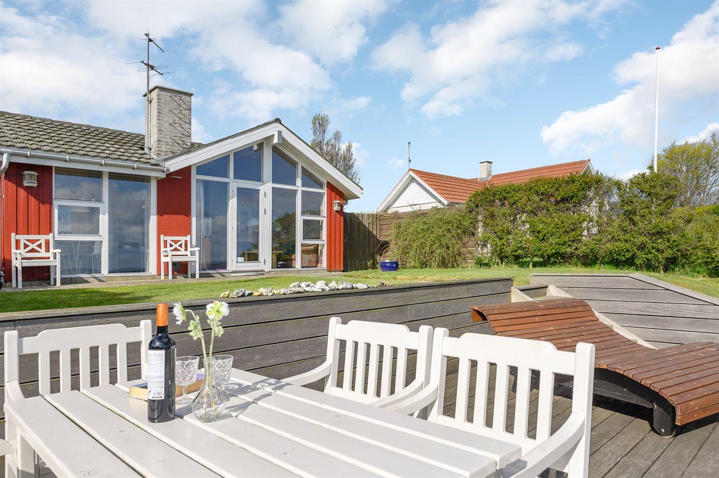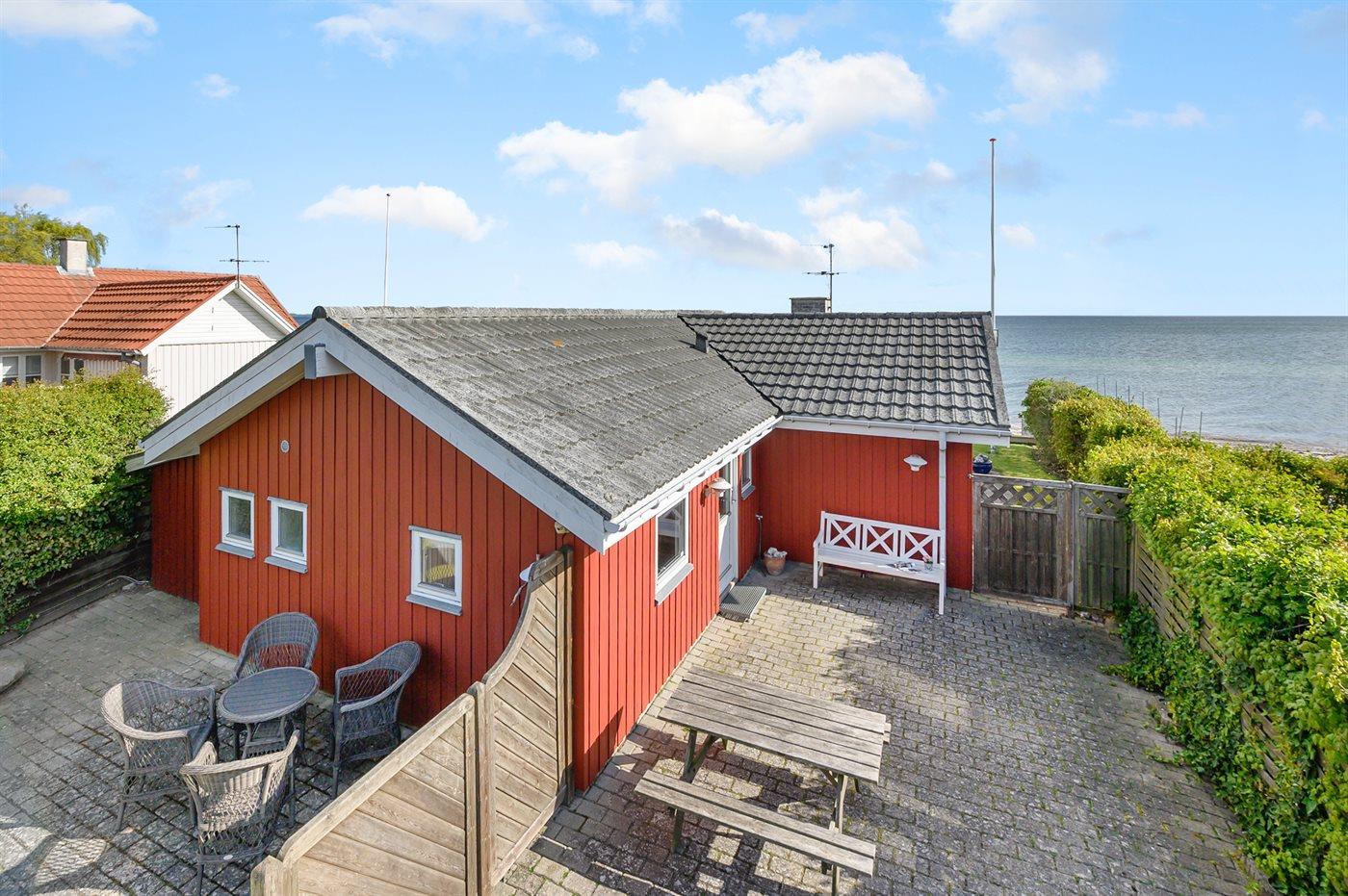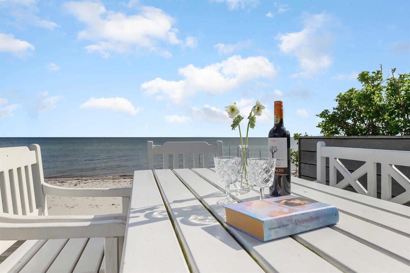 Dette dejlige sommerhus ligger kun 5 m fra vandkanten med en vidunderlig panoramaudsigt over havet. Til huset hører bl.a. en stor og lækker træterrasse, som går helt ned til stranden. Desuden tilhørende anneks, hvor 3 af sovepladserne befinder sig.