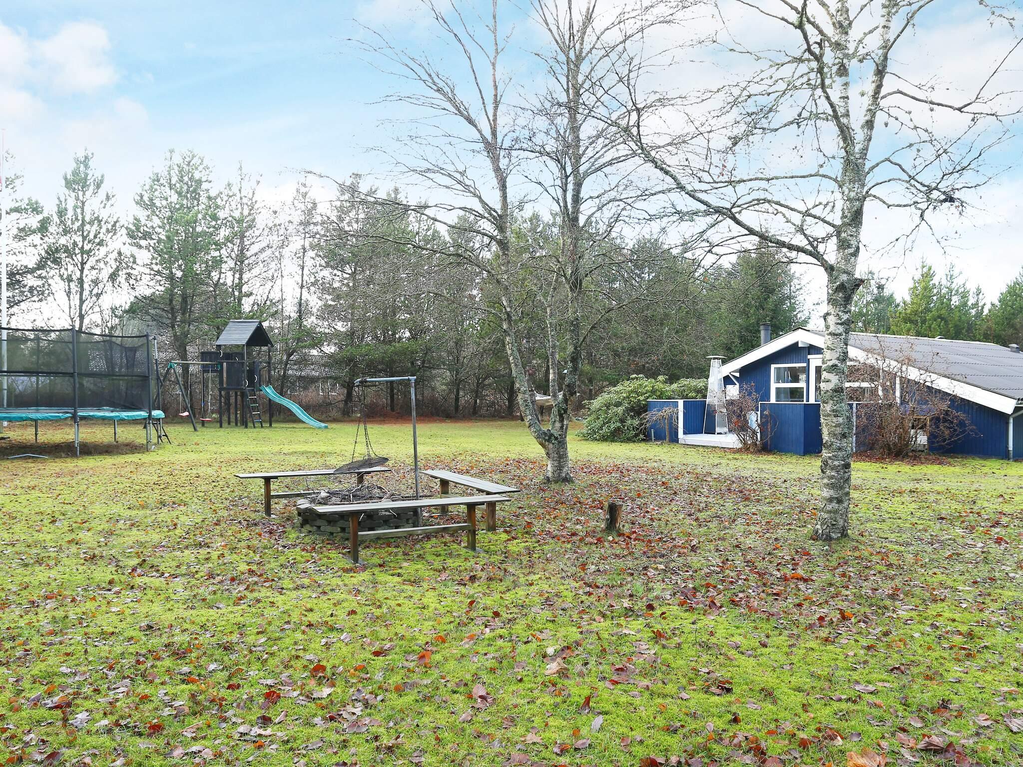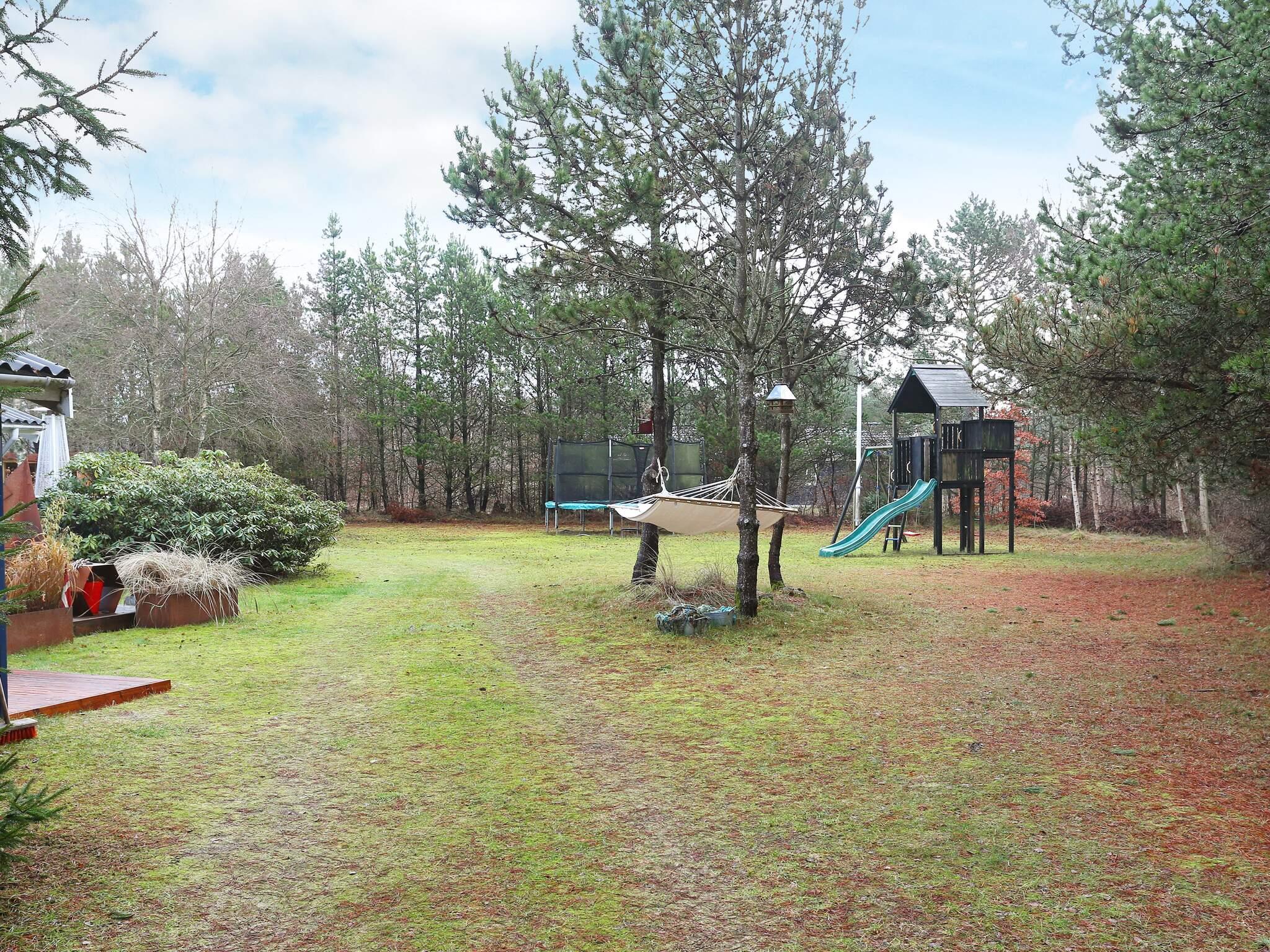Sommerhuset ligger på en smuk naturgrund omgivet af træer, hvilket sikrer privatlivets fred. Fra stuen er der udgang til en dejlig sydvendt terrasse med gasfyr. Der er desuden en overdækket terrasse mellem huset og skuret, som også har el-varme, så du har alle muligheder for at nyde den danske sommer med solbadning, leg på grunden, og lækker grill. Der er mulighed for at overnatte i shelteren og lave mad på bålpladsen. For de mindste er der legetårn med rutsjebane, gynger og trampolin (anvendes på eget ansvar/forsikring). Lounge område med sovemuligheder. Ejeren stiller 3 cykler til rådighed for voksne (Vi garanterer ikke for deres tilstand).