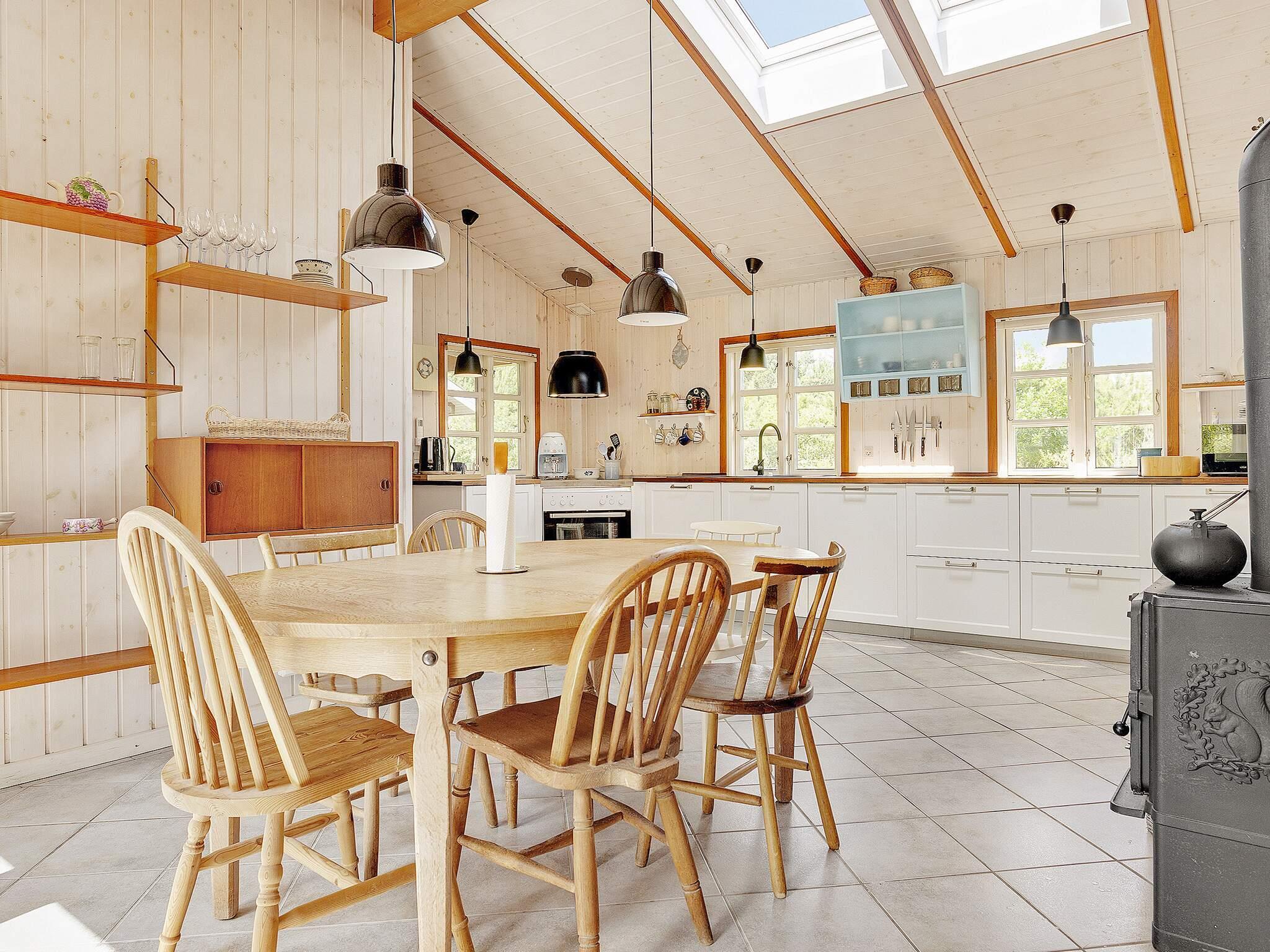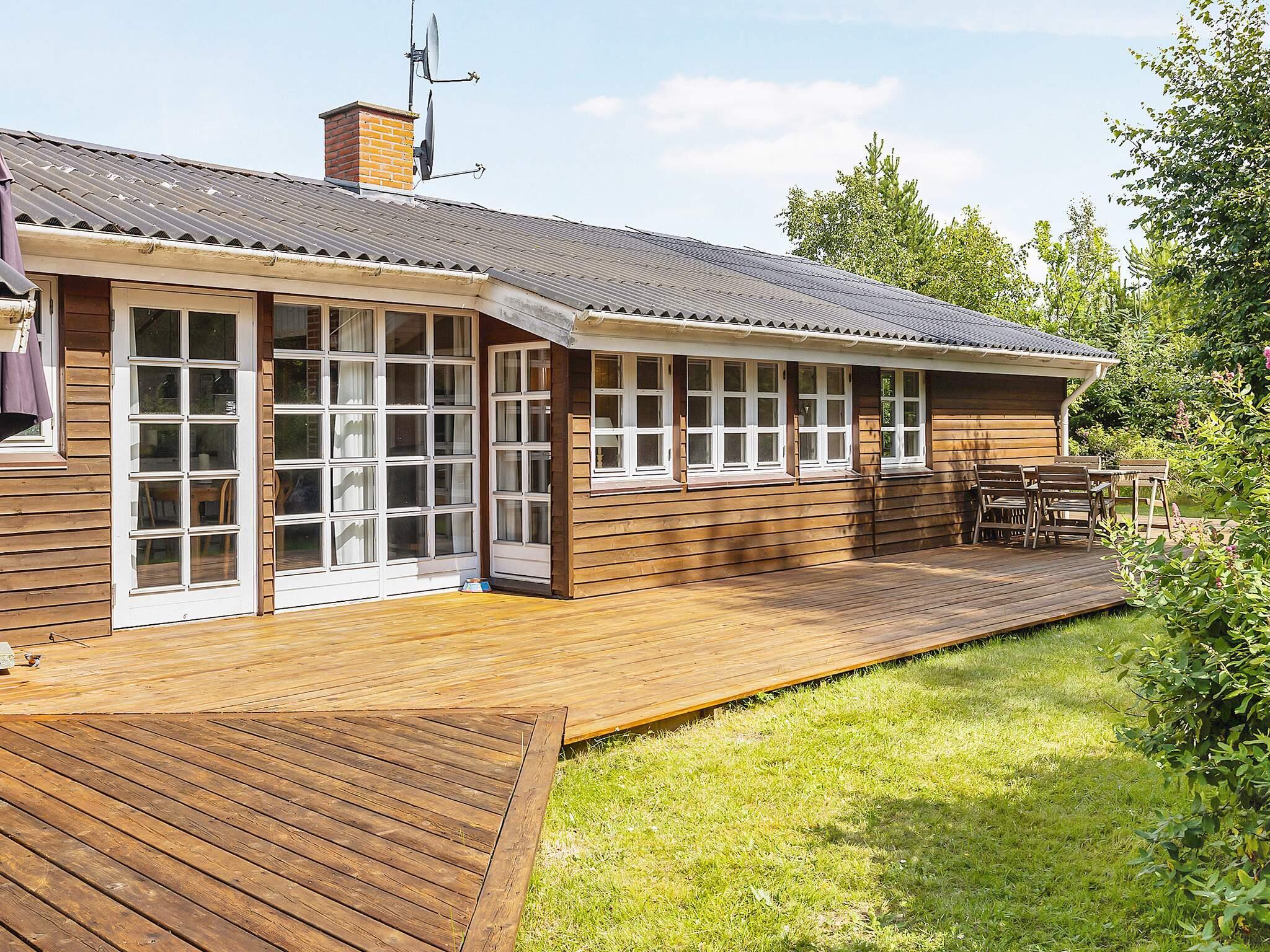 Det velholdte sommerhus med en stor træterrasse hele vejen rundt om huset indeholder fire værelser. Det er ideel indretning med både en voksen- og en børneafdeling og hjertet i sommerhuset er det store køkken/alrum og stue med udgang til den dejlige terrasse.