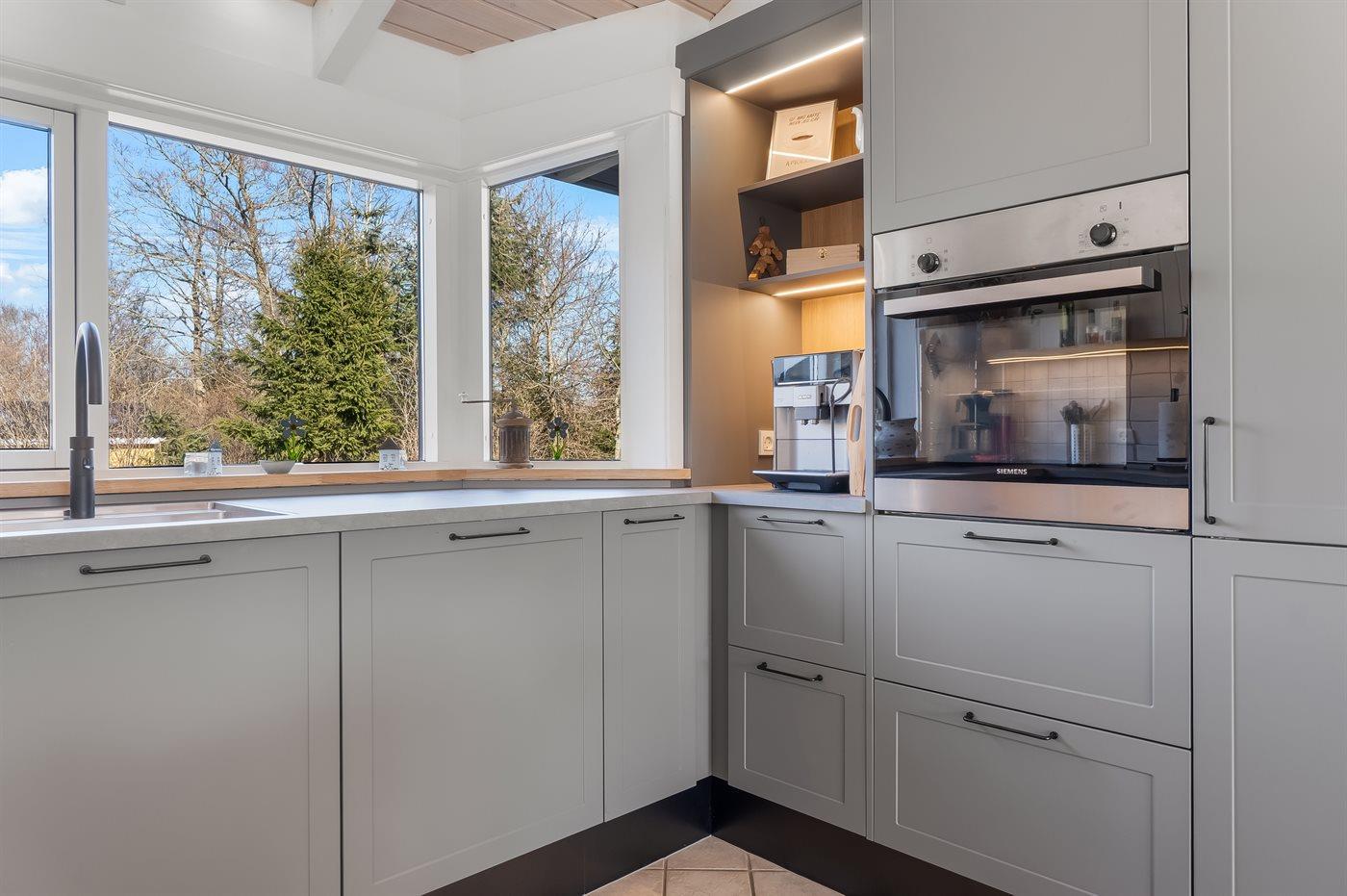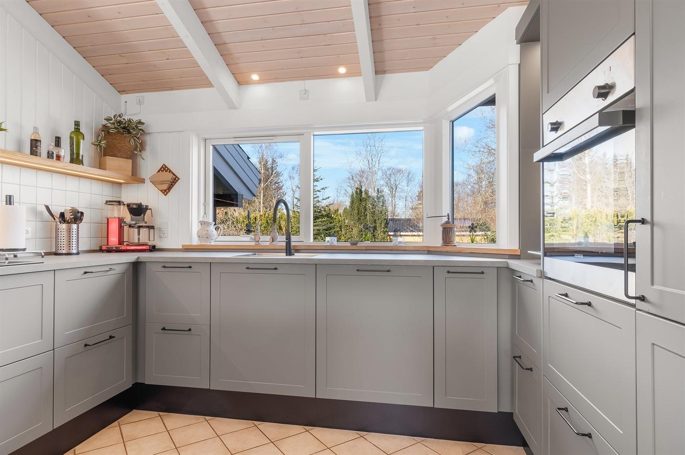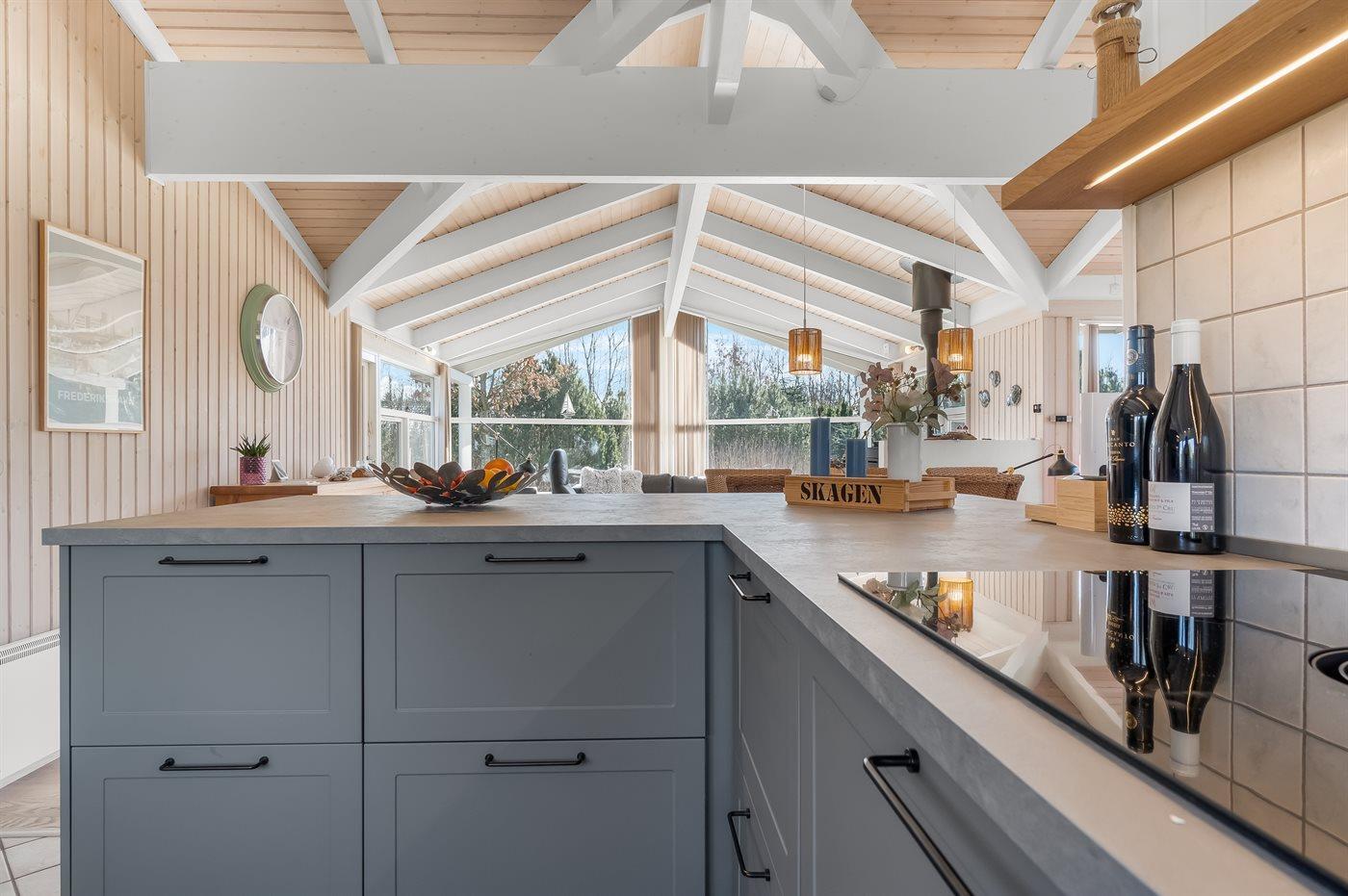 Køkkenet er udstyret med 1 køleskab. Der er 4 induktionskogeplader, varmluftovn, mikrobølgeovn samt opvaskemaskine.