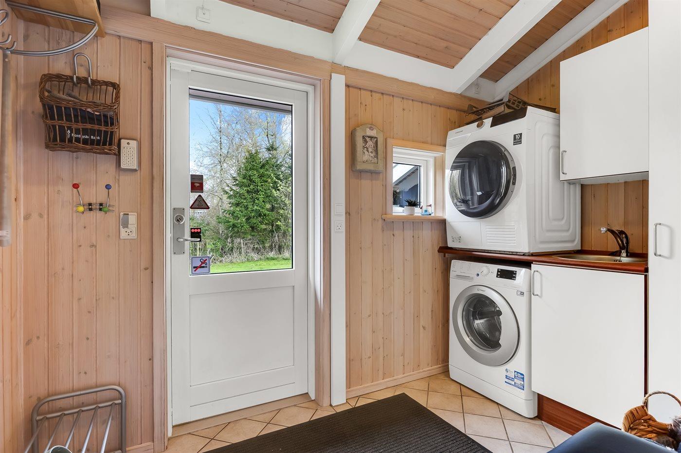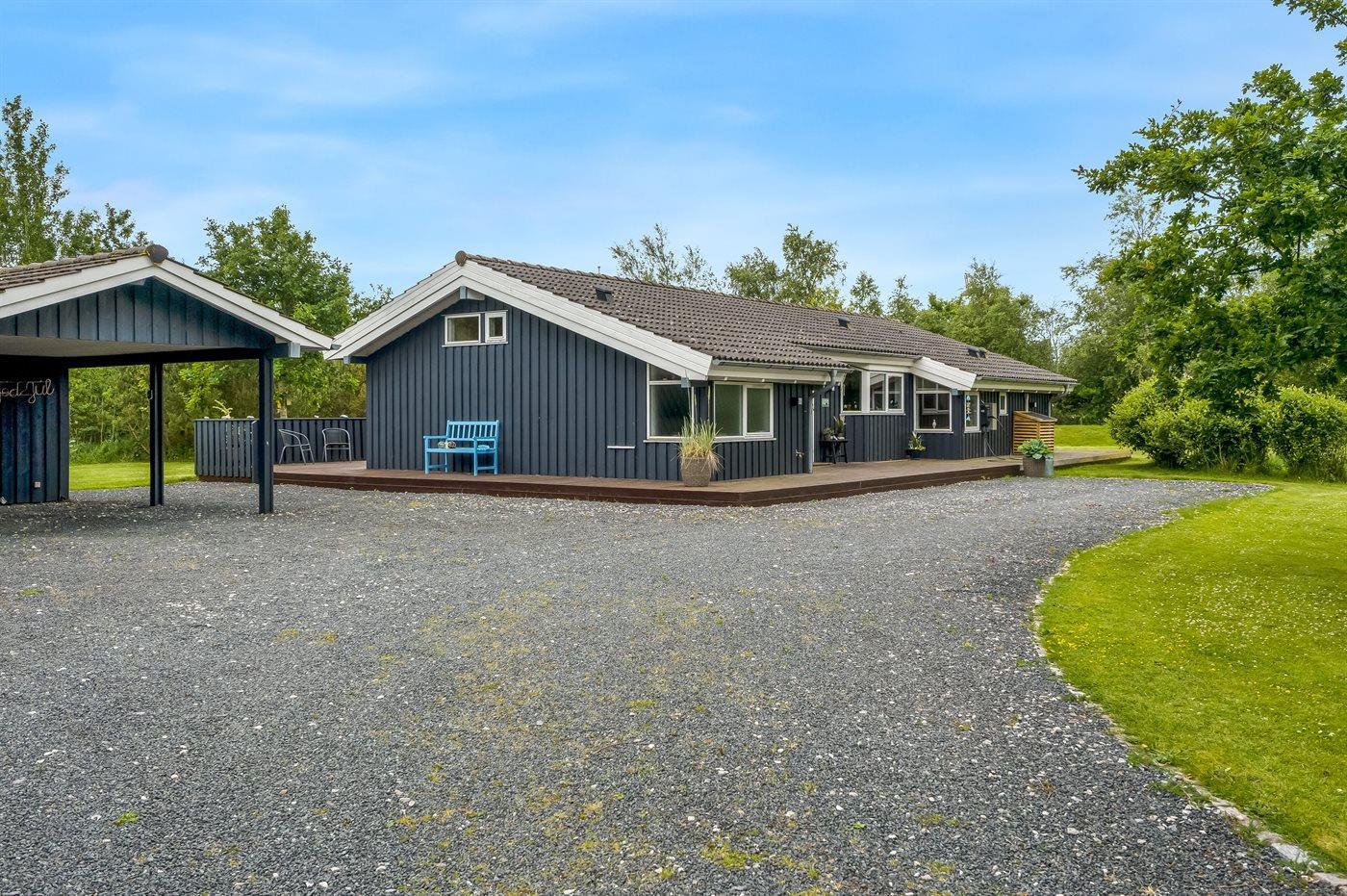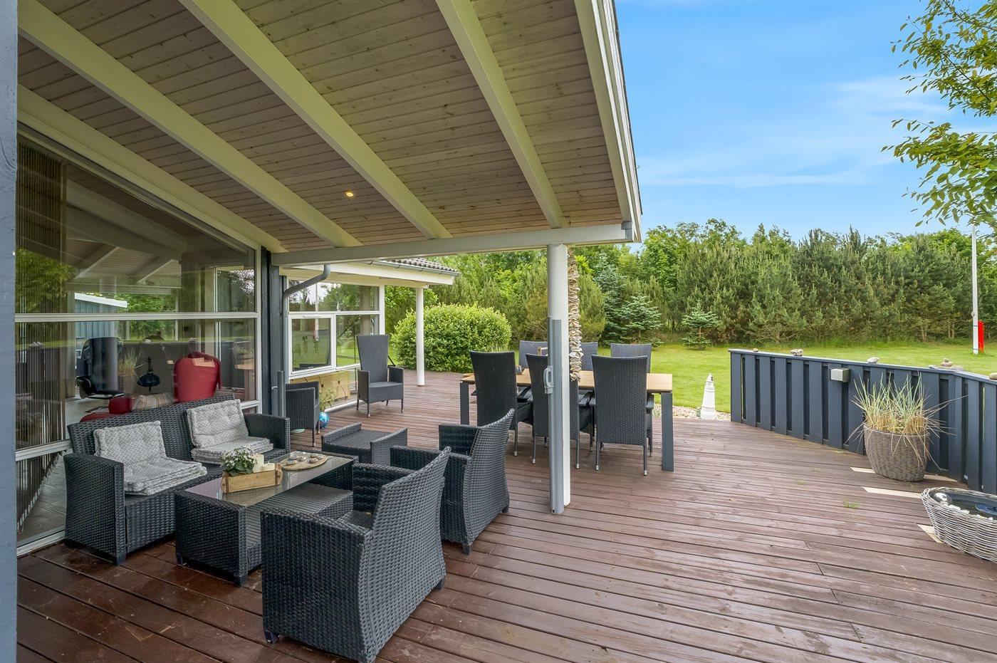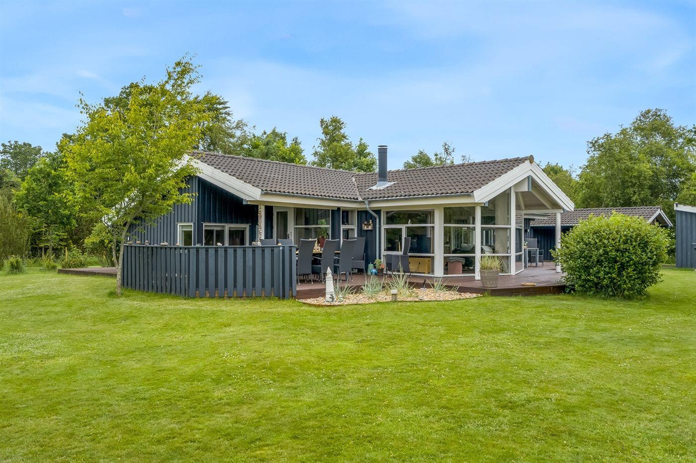 Ferieboligen er beliggende på en 2500 m² stor naturgrund. Grunden er indhegnet. Der er 550 m til havet. Der er en badebro i nærheden. Nærmeste forretning er beliggende i en afstand af 2000 m. Til ferieboligen hører åbent terrasseareal. Desuden er der overdækket terrasse. Der er redskabsrum. Der ligger en legeplads i en afstand af 2000 m. Der er carport til rådighed. Der er installeret stik til opladning af elbil. Type 2 stik. Parkering ved ferieboligen.