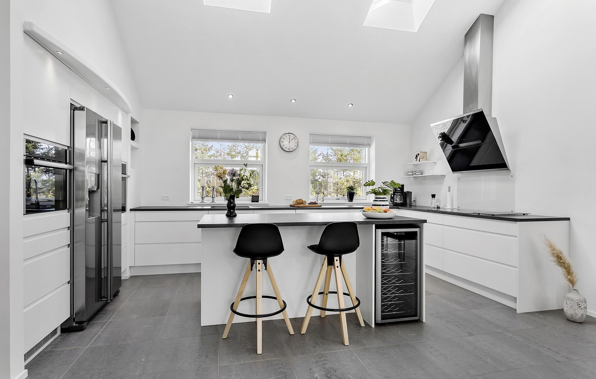 Når solen skinner, er det bare at trække udendørs, hvor I får de bedste muligheder for at nyde det gode vejr fra morgen til aften på den store grund. Mens de voksne kan nyde solen med en god bog i en liggestol, kan børnene brænde masser af energi af på deres helt egen legeplads, og måske I skal arrangere en fodbold- eller volleykamp? Senere kan I tilberede nogle saftige bøffer fra grillen og runde aftenen af med en tur i vildmarksbadet eller ved bålpladsen med snobrød og skumfiduser, mens I lægger planer for de kommende dage.